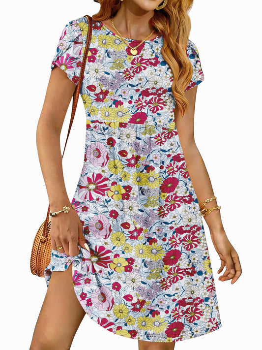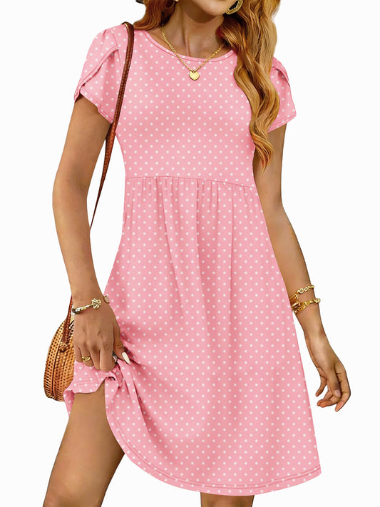 UVN Womens Summer Dresses Short Petal Sleeve Crew Neck Midi Sundress for Women A-Line Flowy Dress with Pocket