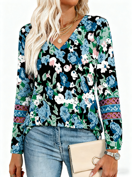UVN Fall Blouses for Women Long Sleeve V Neck Tunic Tops Casual Hollow Out Curved Hem Dressy Shirts