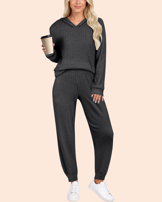 UVN Two Piece Outfits for Women Long Sleeve Hoodies Tops And Pants Pajamas Sets Casual Fall Winter Lounge Set with Pockets
