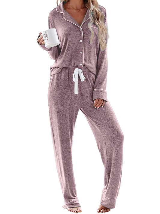 UVN Womens Pajama Sets Long Sleeve Top and Long Pants Soft Pjs Sleepwear Ladies Button Down Lounge Set