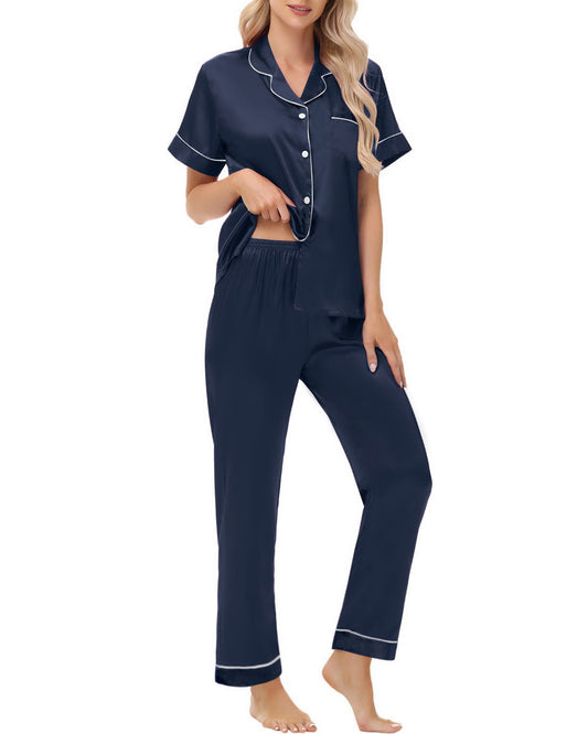 UVN Pajamas Sets for Women Short Sleeve Button Down Tops And Pants Sleepwear Soft Silk Satin Pjs Loungewear 2 Piece Outfit