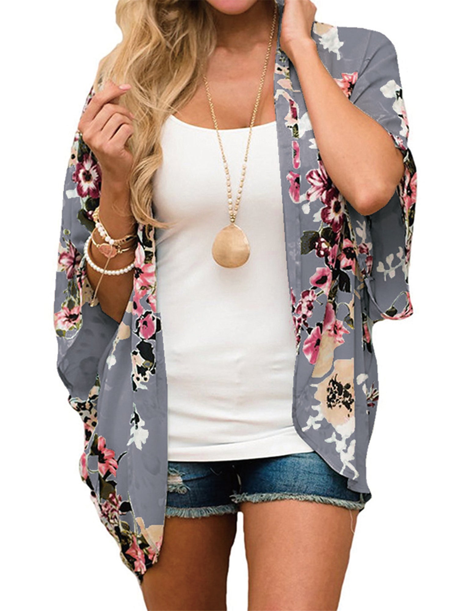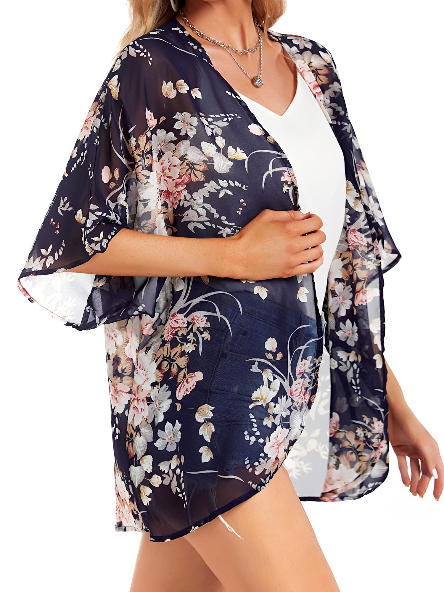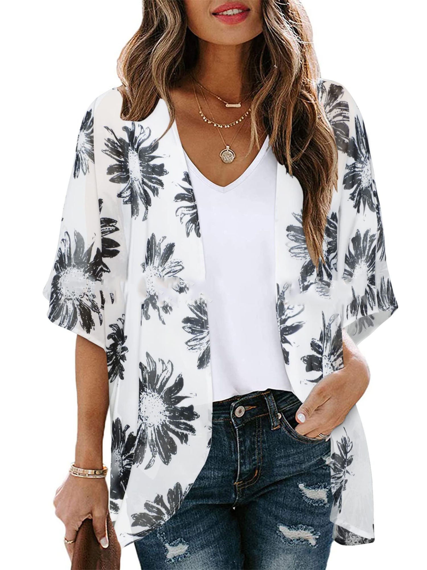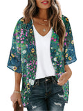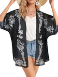 UVN Womens Summer Cover-Ups Plus Size Floral Print Kimono Cardigan Casual Short Sleeve Tops Female Loose Fit Coverups