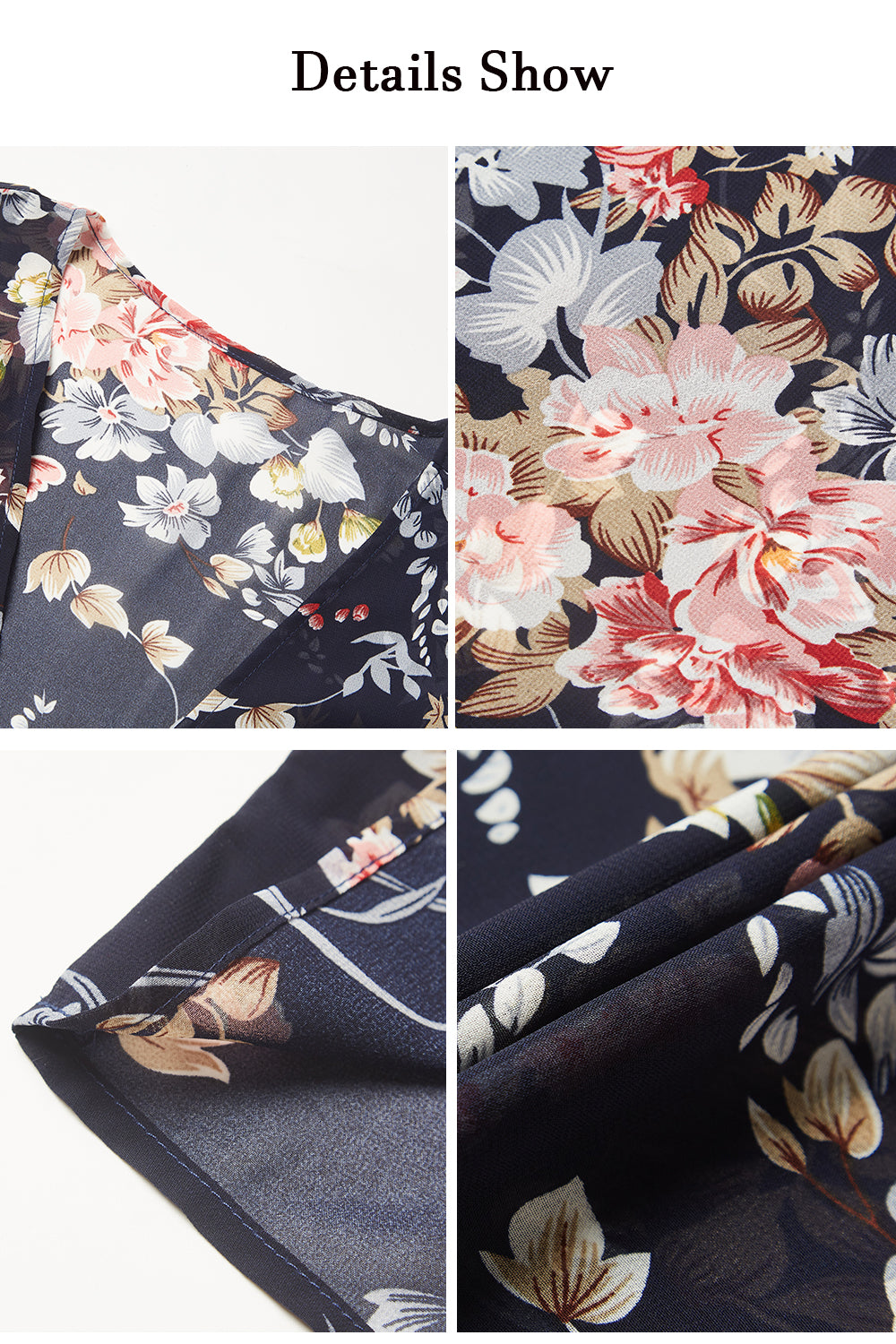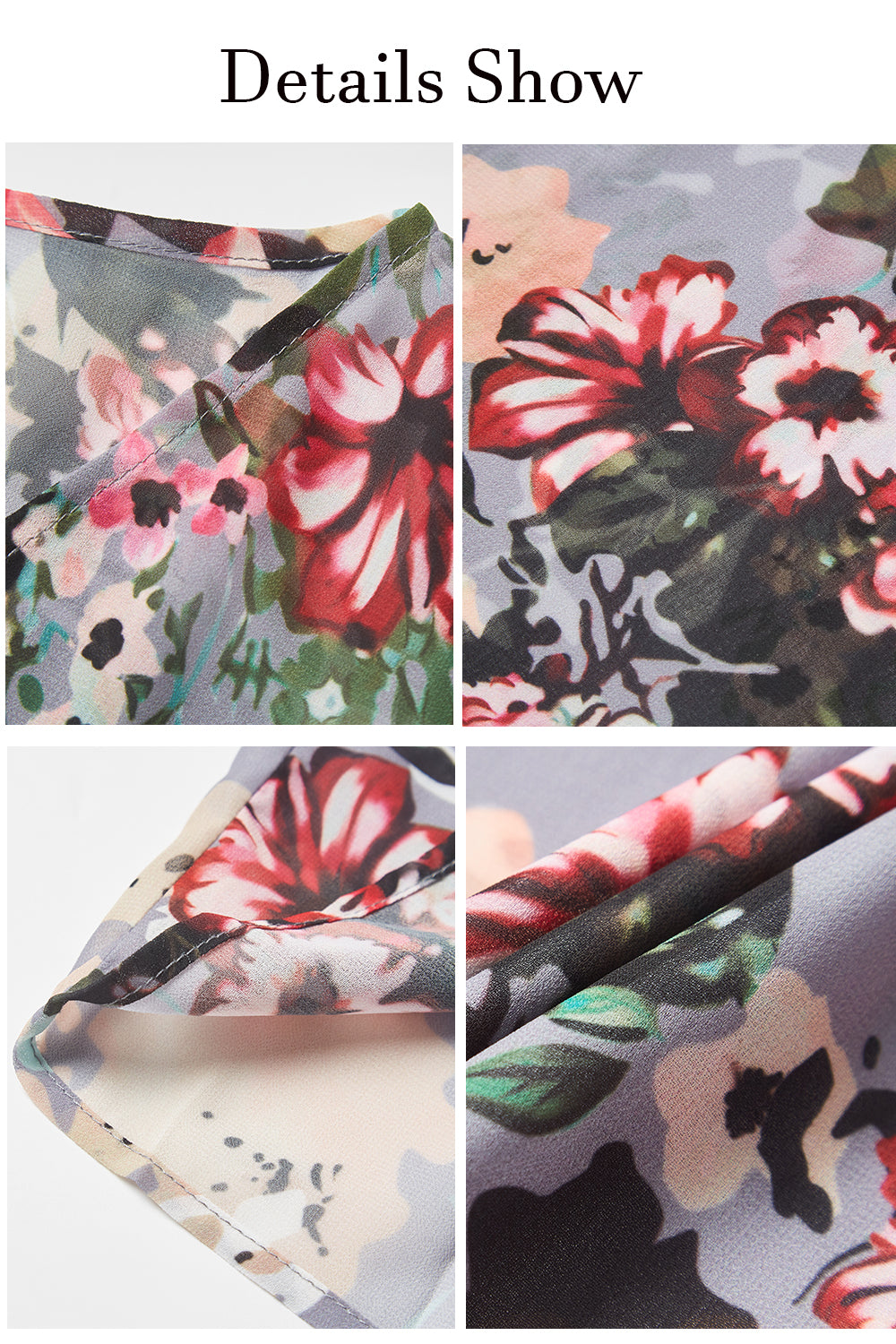 The summer floral print tops are also a good gift choice for holidays and festivals. What a gorgeous topper with a dress, skirt, or jeans. This can take your outfit to a whole other level. It's pretty, light, flowy, satiny that can be worn for several occasions, you will get complimented on it all the time.