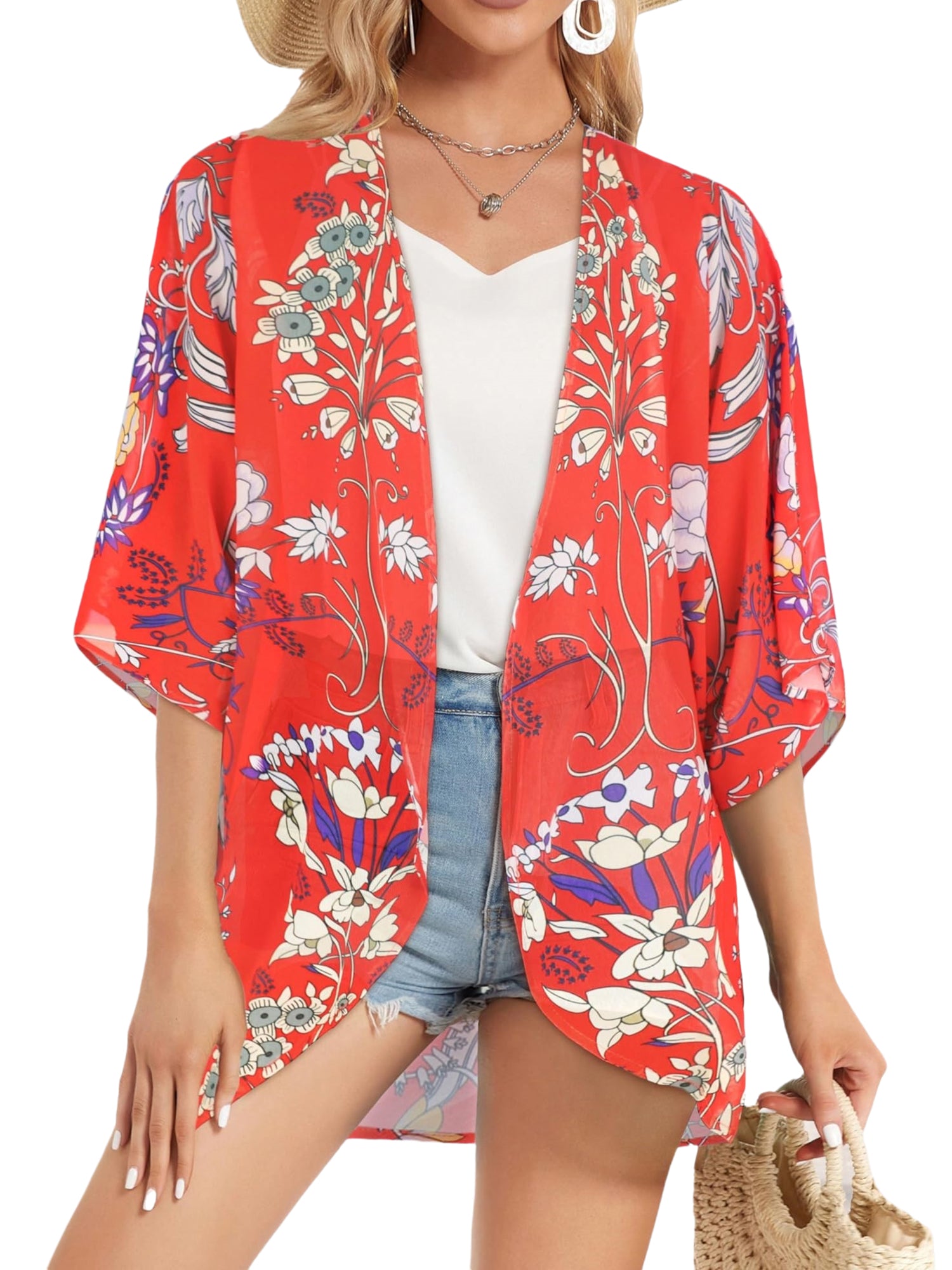 ❤【Gifts Idea】This kimono cardigan can be over your tank tops or cut off shorts, even a tunic and leggings, further more the sundress, the floral kimono is the most fashionable way to dress it up in the summer days. The swimsuit cover ups of high quality are perfect for mom, wife,girlfriends and loved ones, definitely a surprising gift,it's perfect fit to the size chart can solve your size problem and help you better choose the appropriate size.