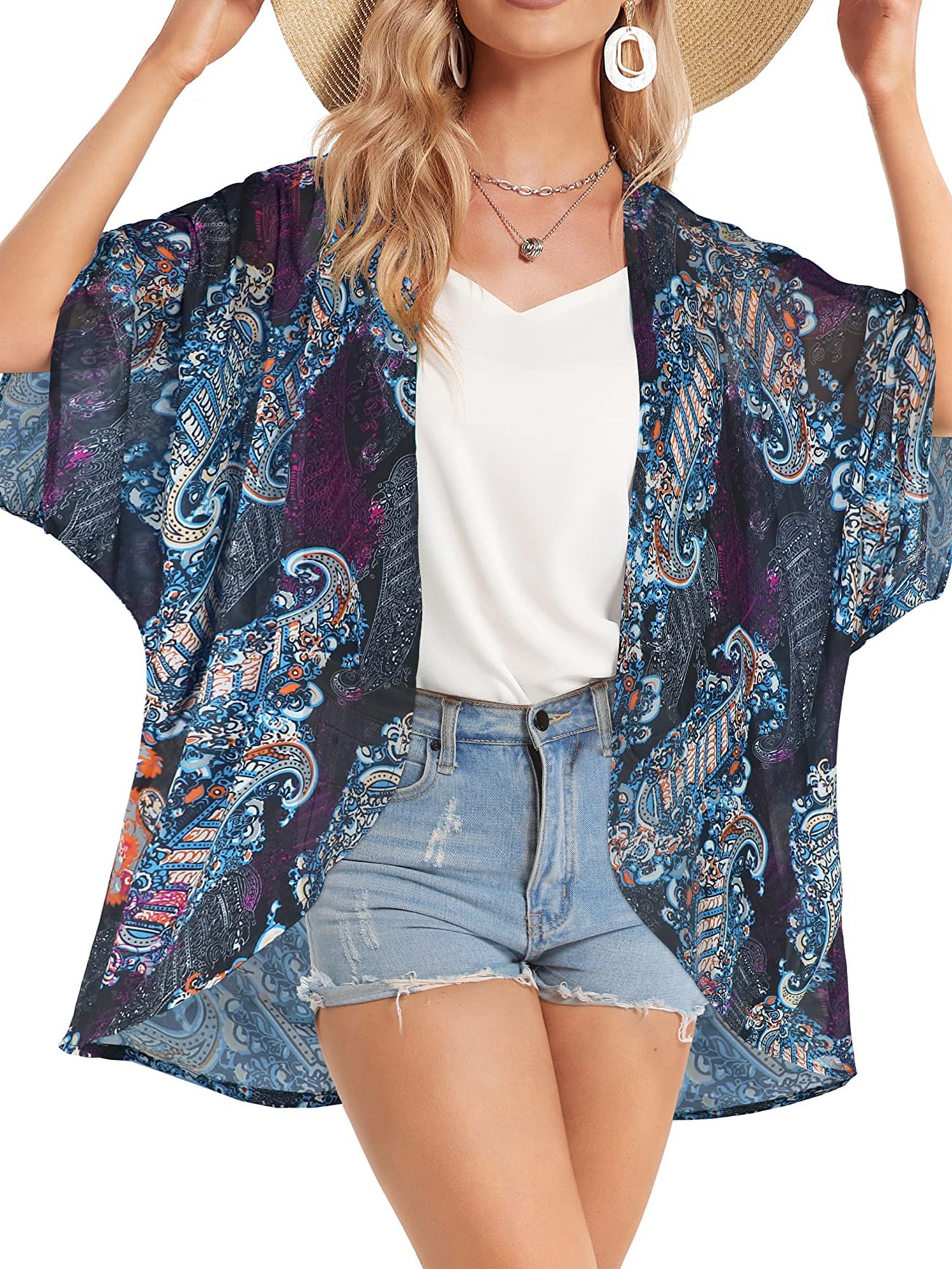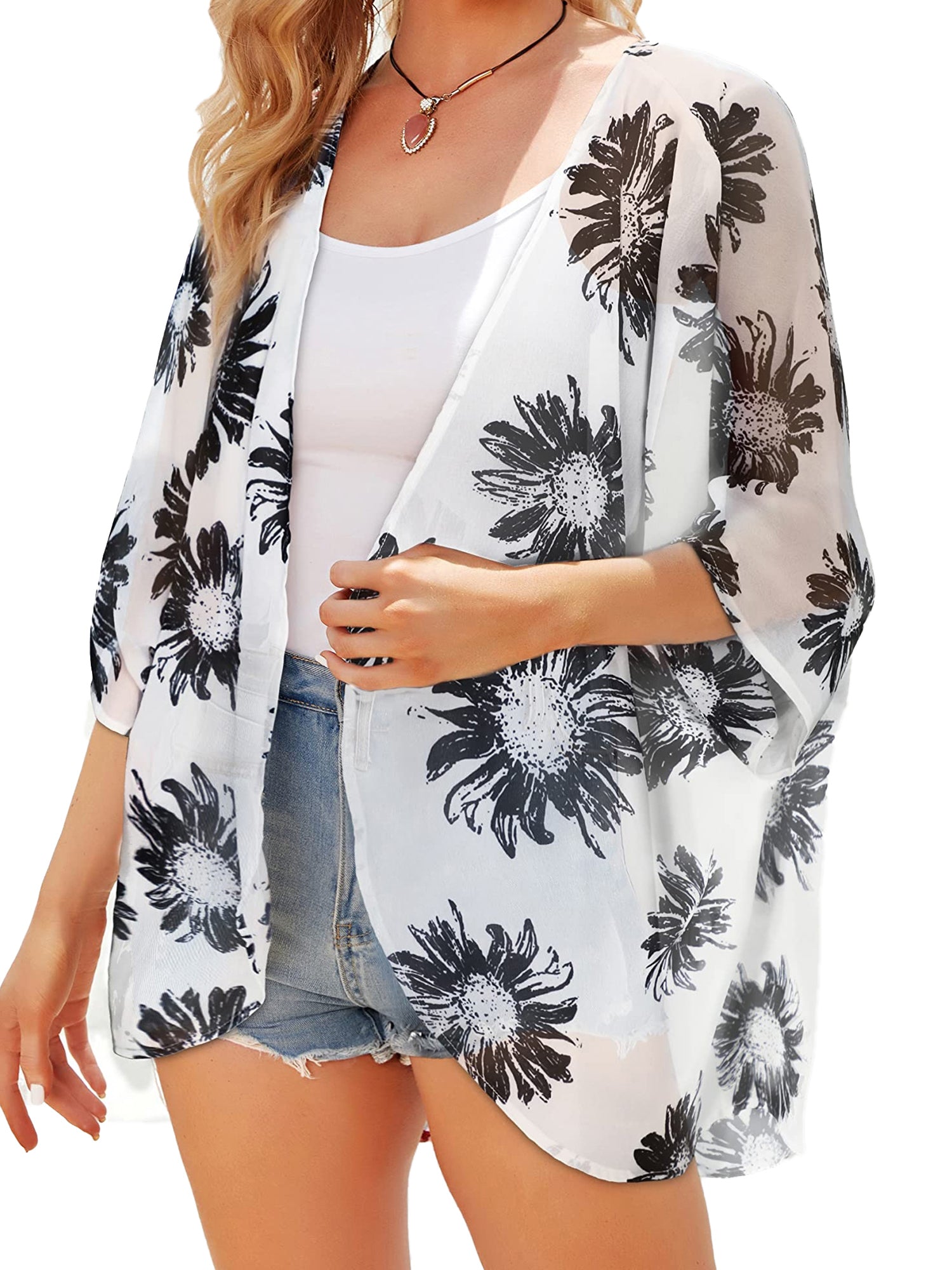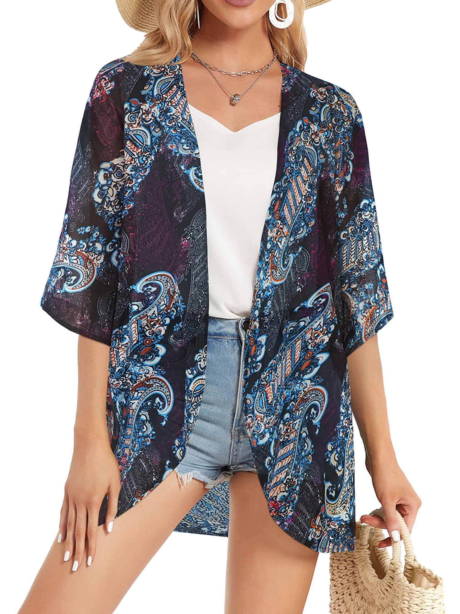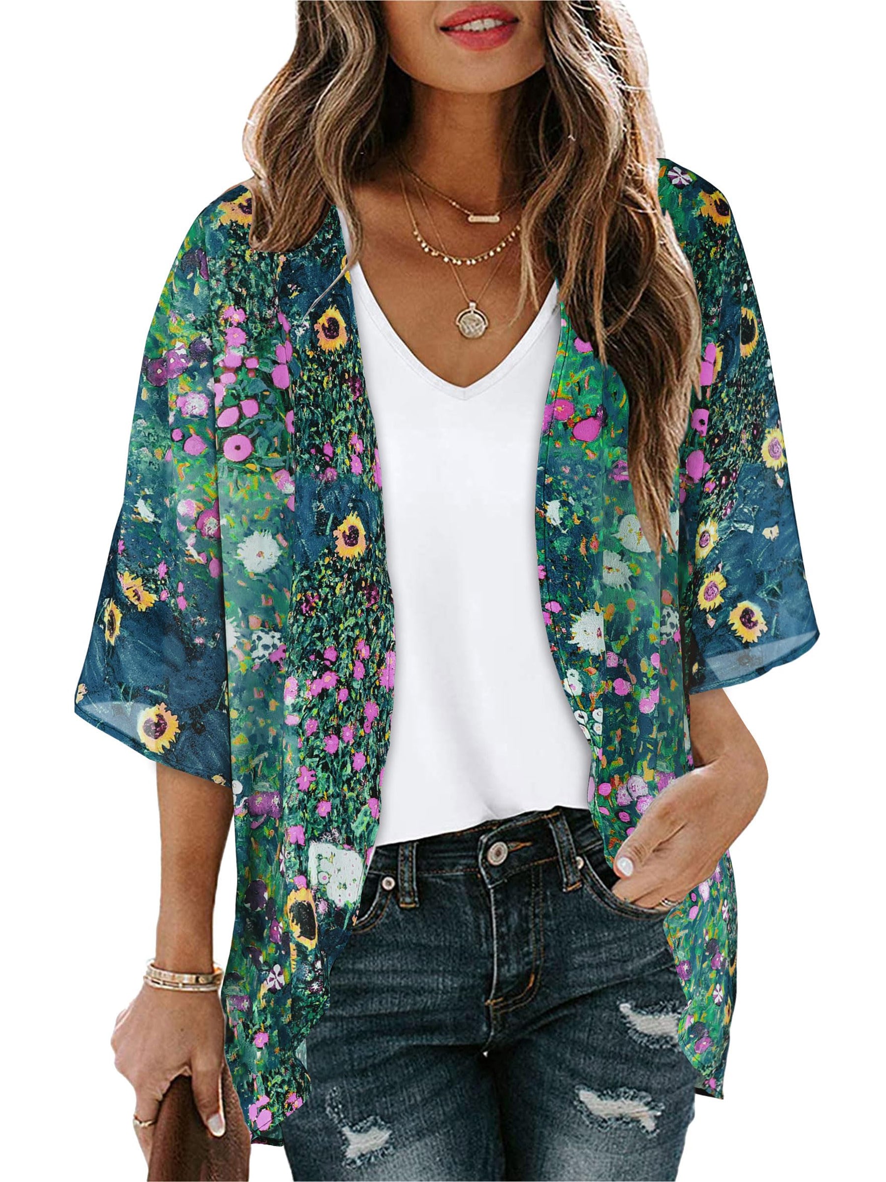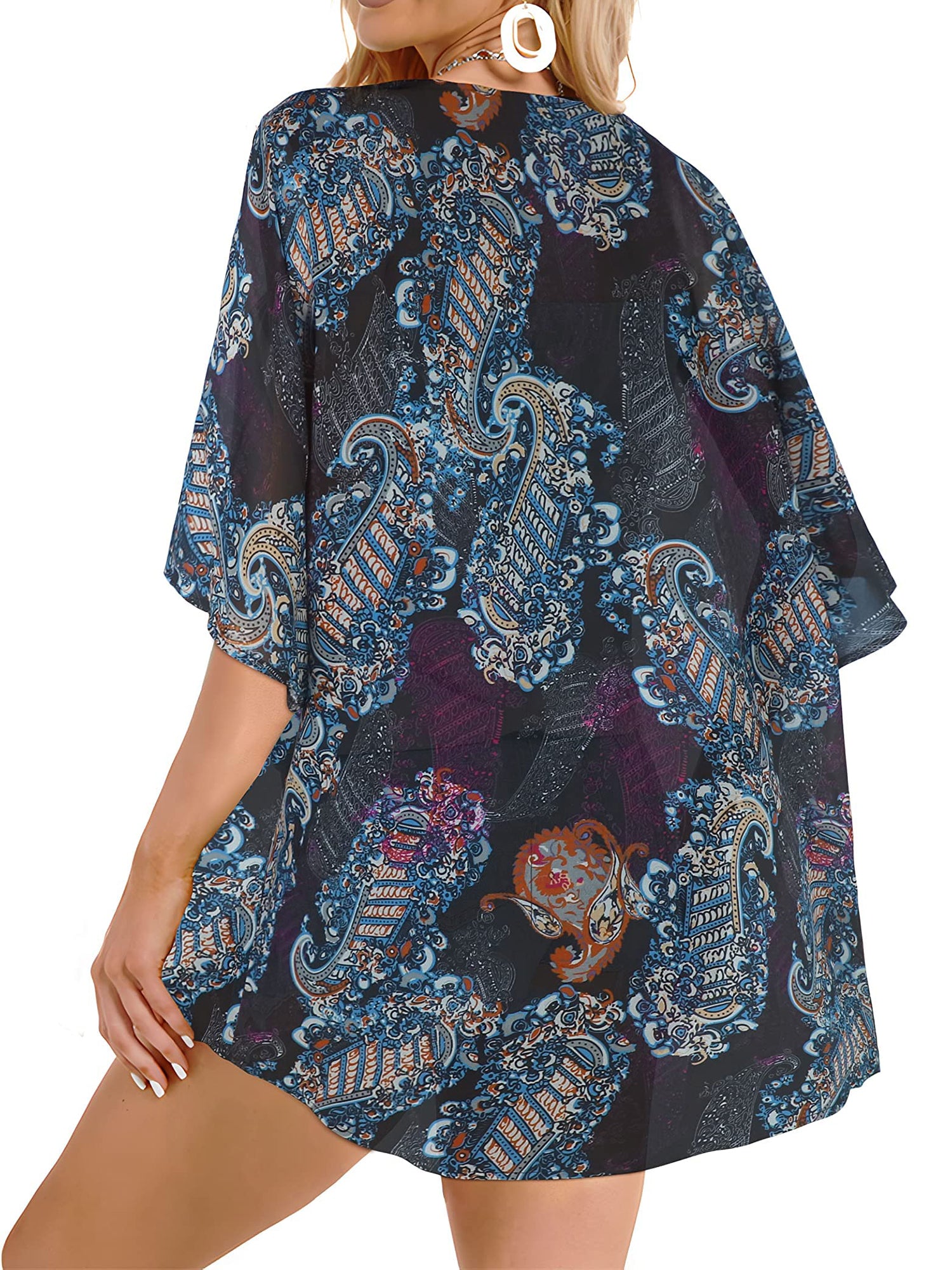 UVN Swimsuits Cover Ups for Women Print Kimono Plus Size Summer Tops Casual Blouse
