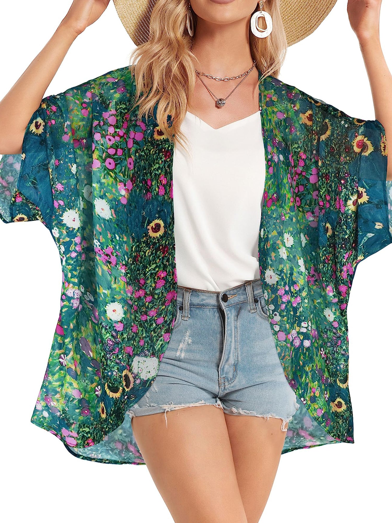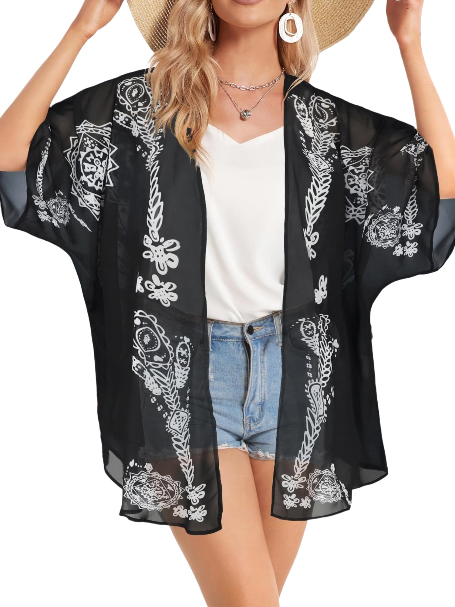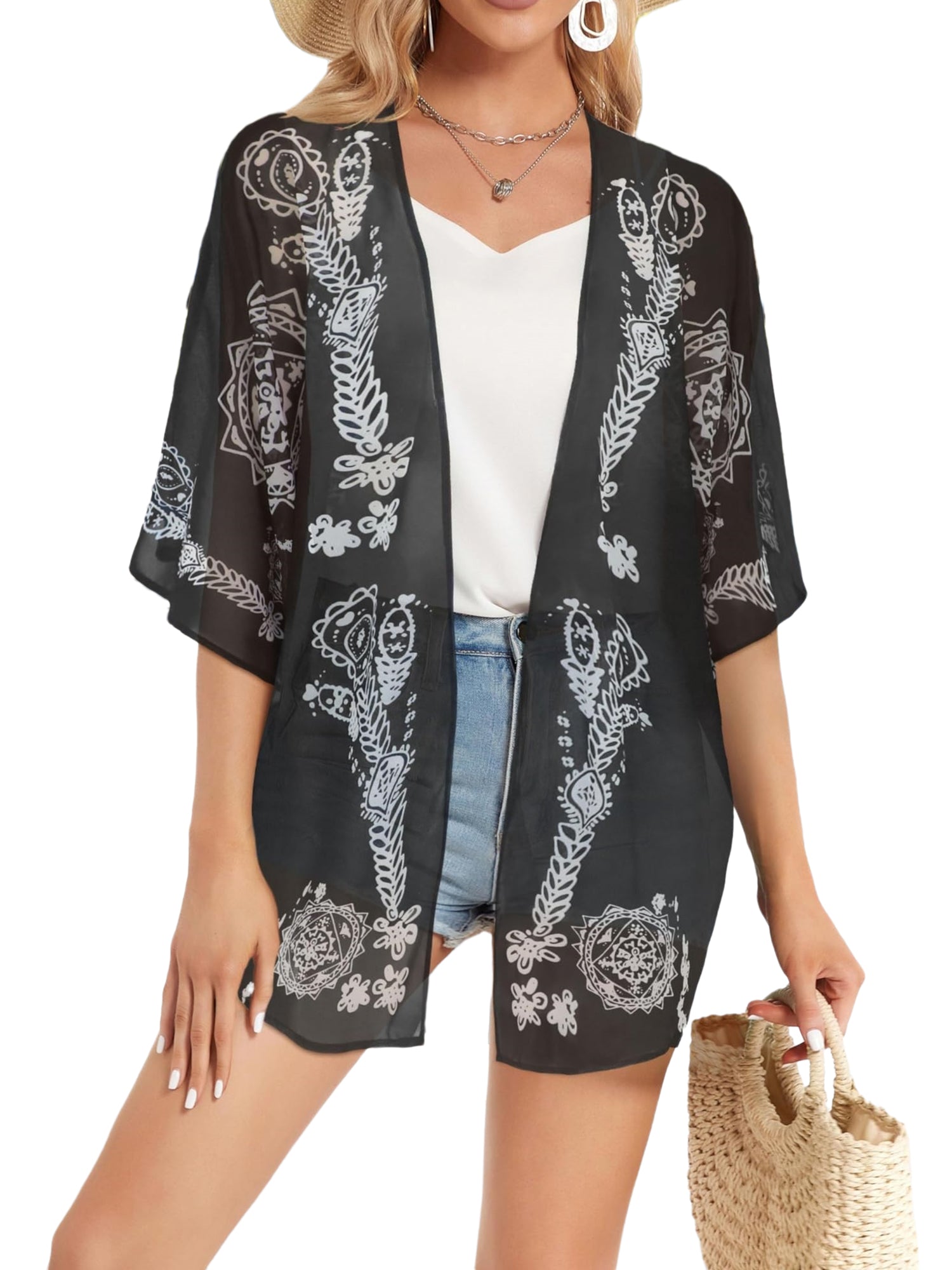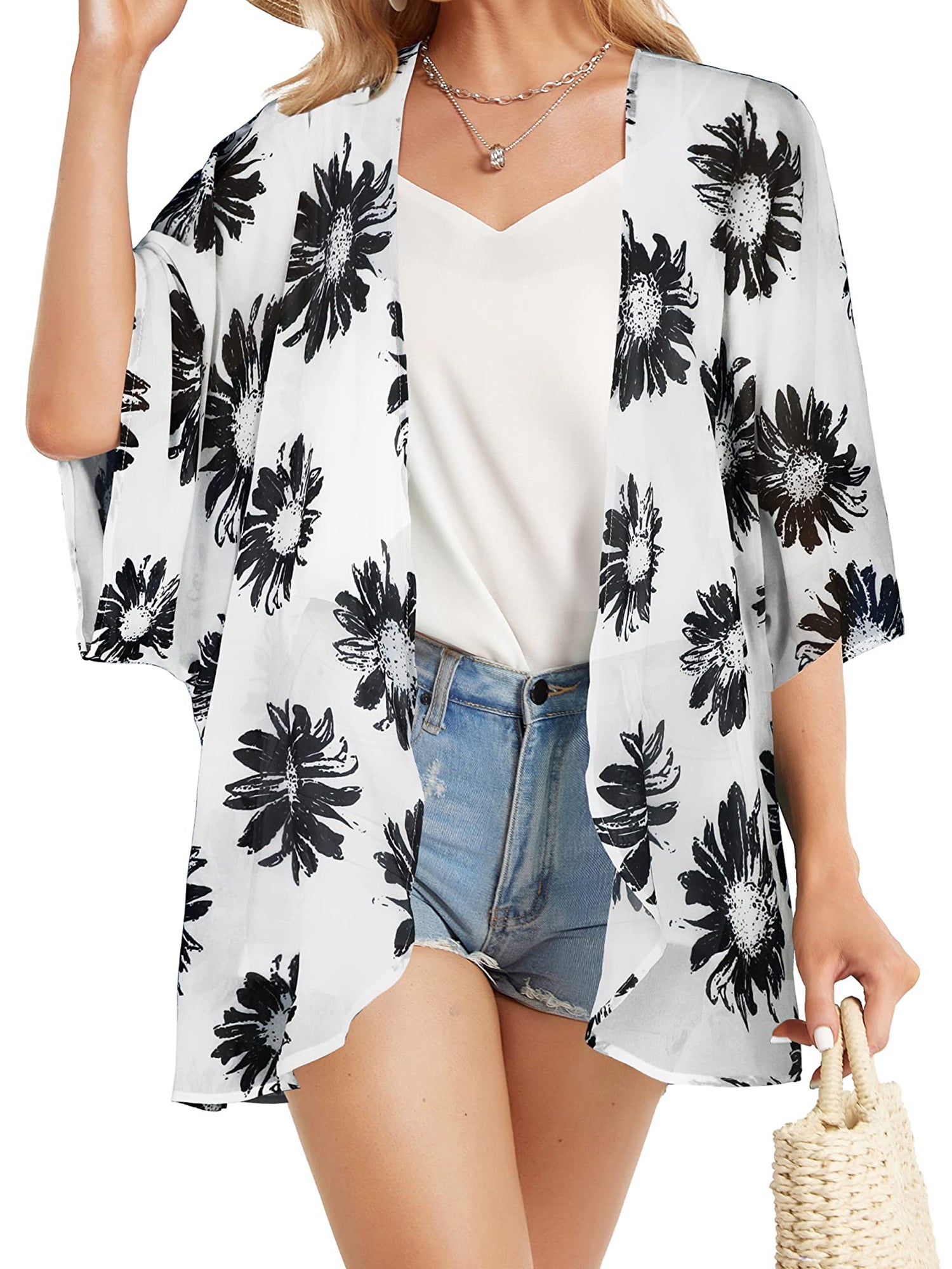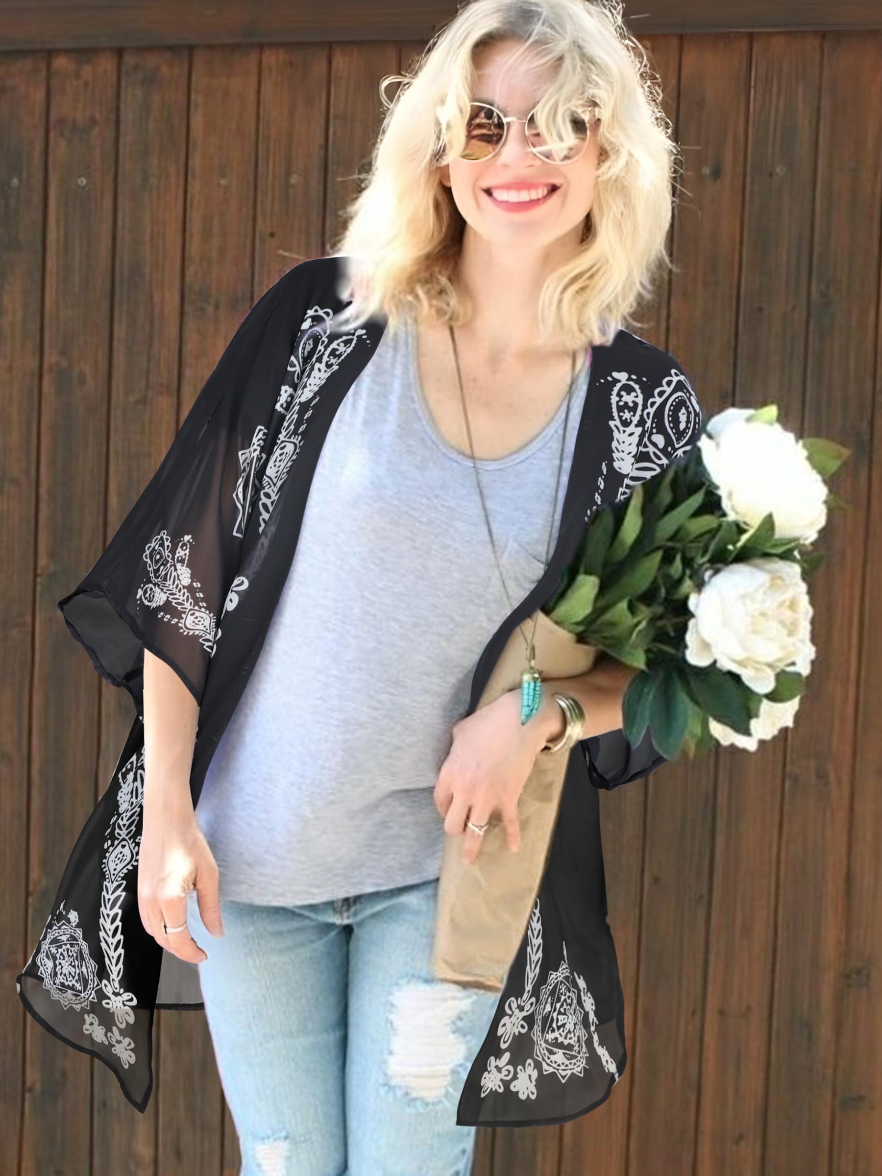 UVN Swimsuits Cover Ups for Women Print Kimono Plus Size Summer Tops Casual Blouse