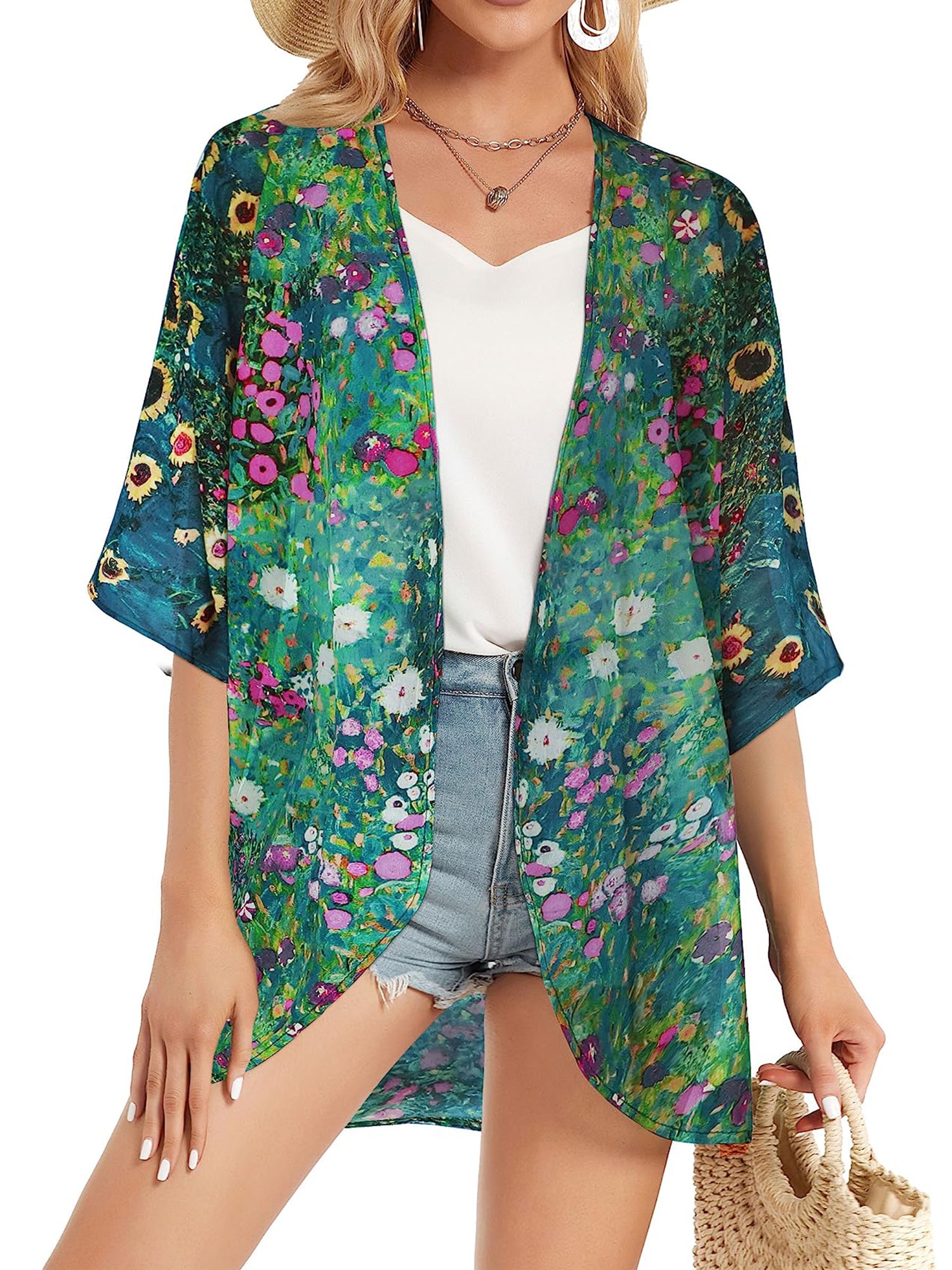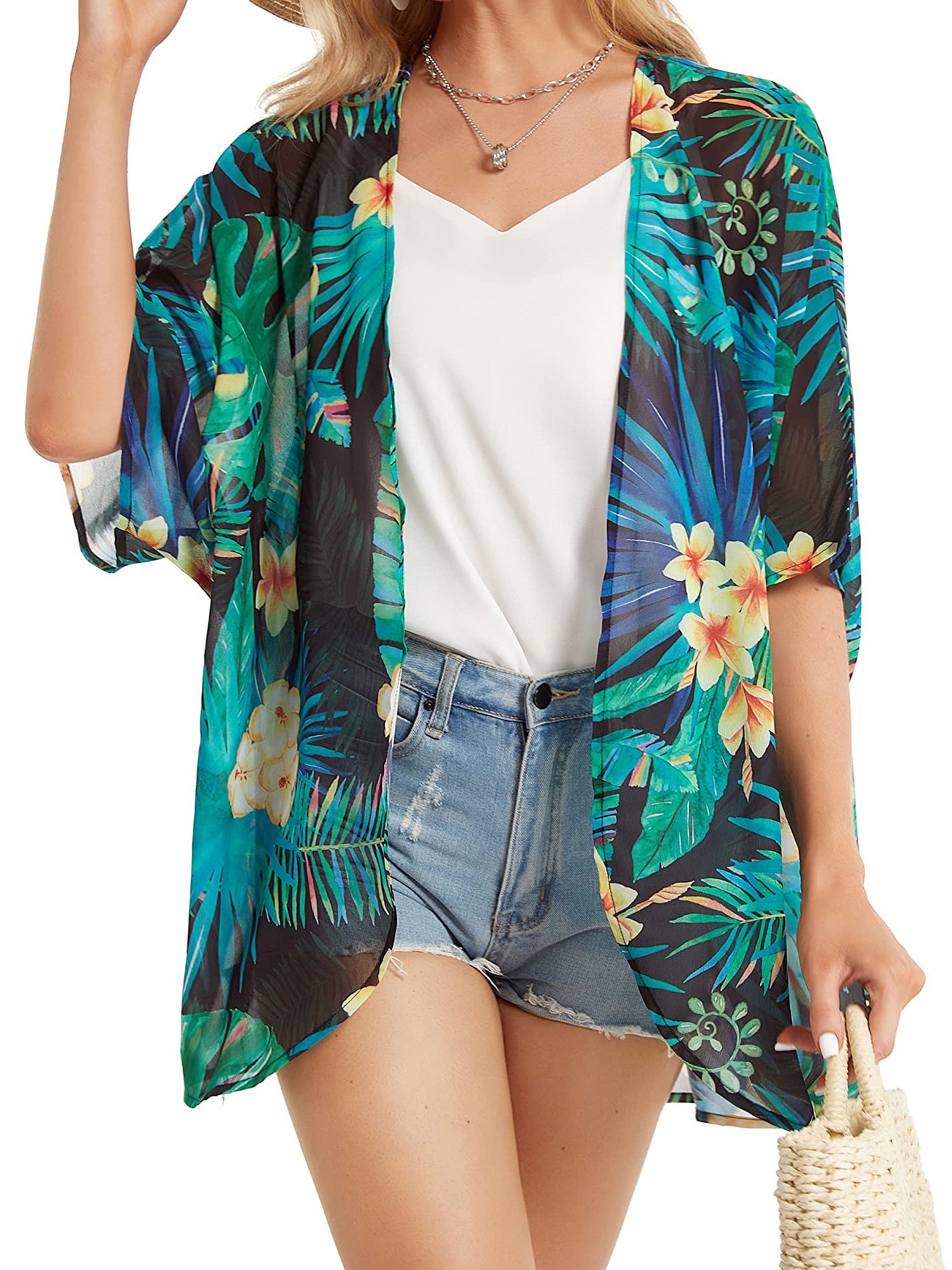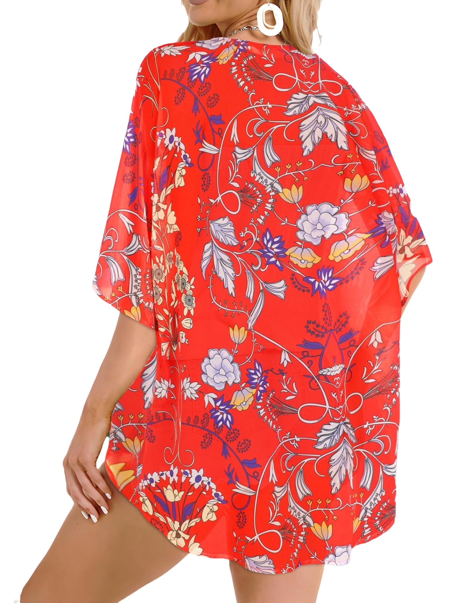 ❤【Feature】The swimsuit women cover up features the deep v-neck and short sleeve design, floral cover ups for swimwear can let you easily create a stylish and cute look with a sun hat and sunglasses. Womens swimsuits are made in light weight fabric is semi-sheer to provide light coverage with a surged finished edge. It's usually recommended that you choose a larger size to make the swimsuits cover-ups longer, look more flowing, and have a more perfect overall appearance. The flowy kimono cardigan for daily wear and will let you enjoy silky smoothness when you're walking.