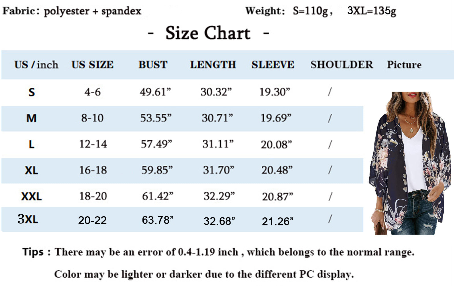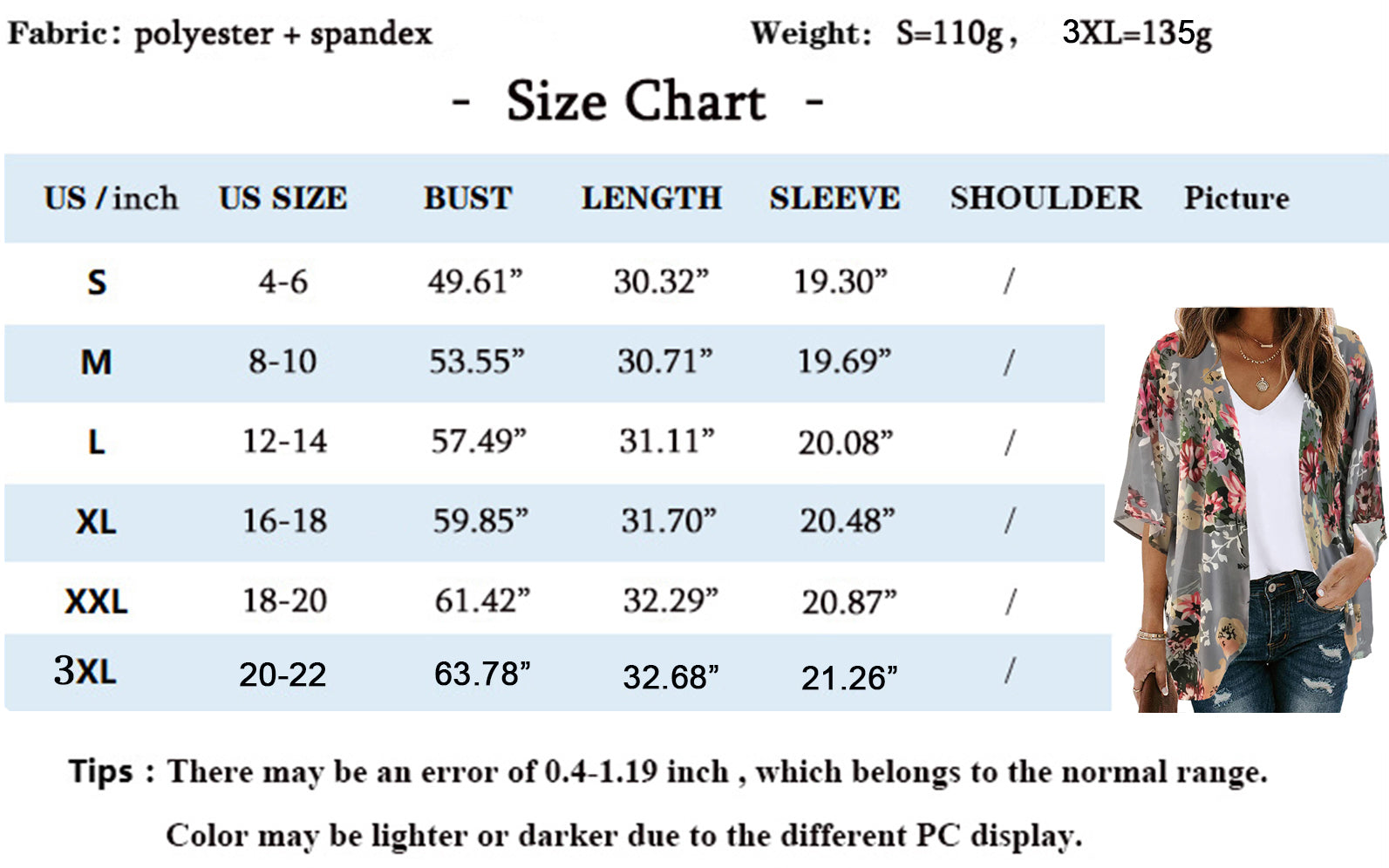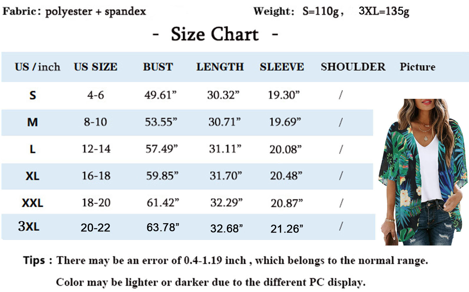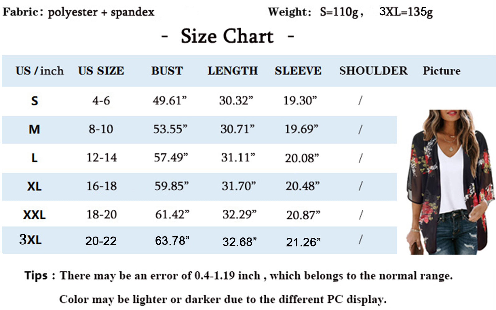3XL Bust 162cm/63.78"--Length 83cm/32.68"------Sleeve 54cm/21.26"