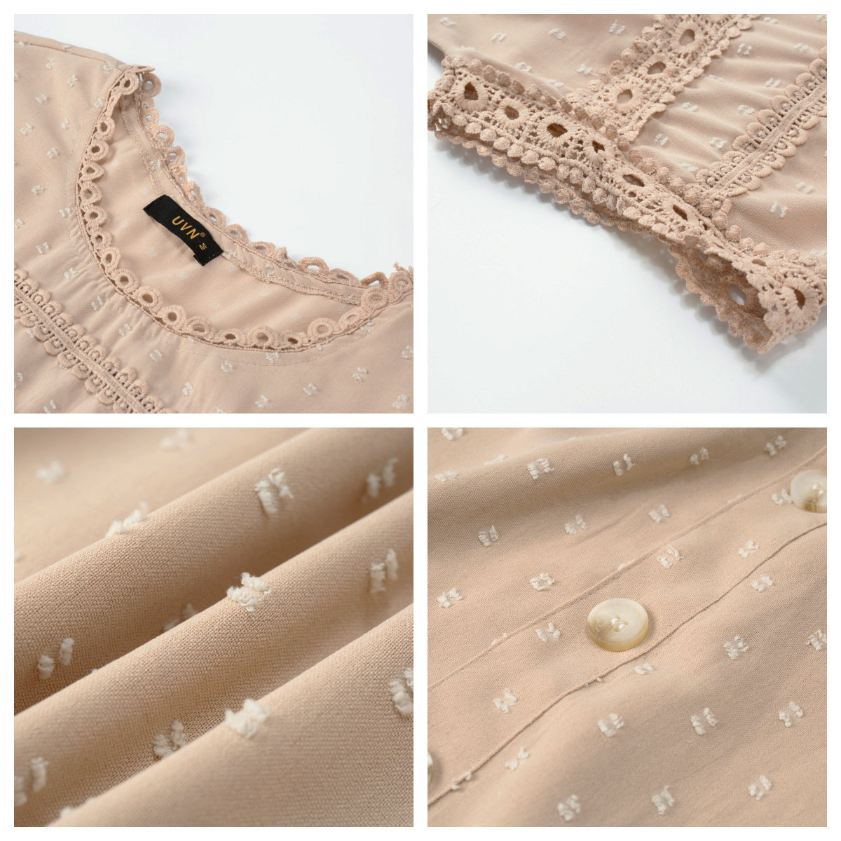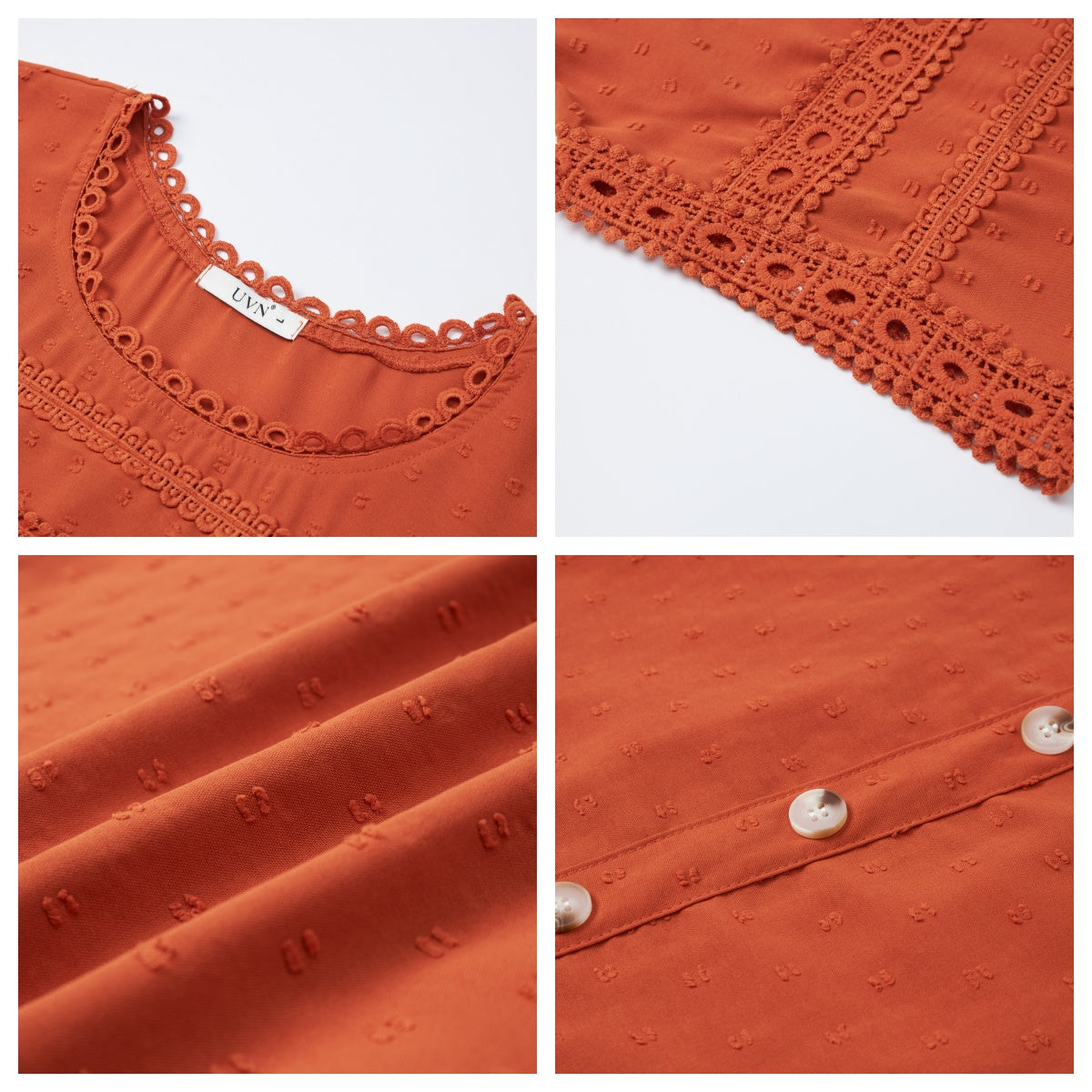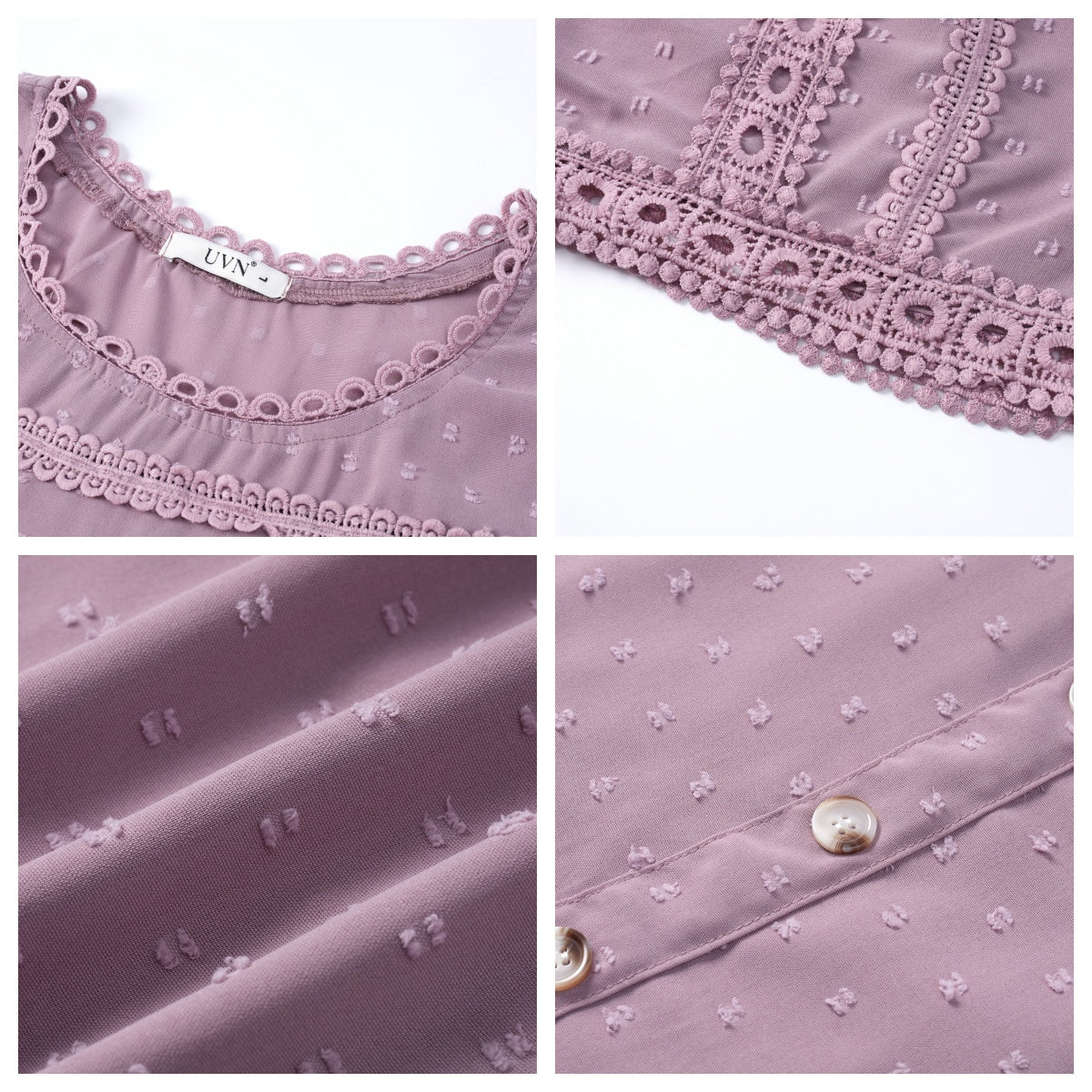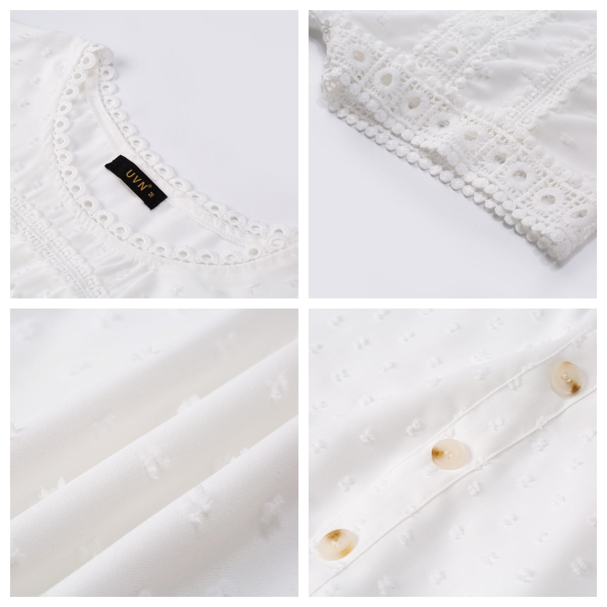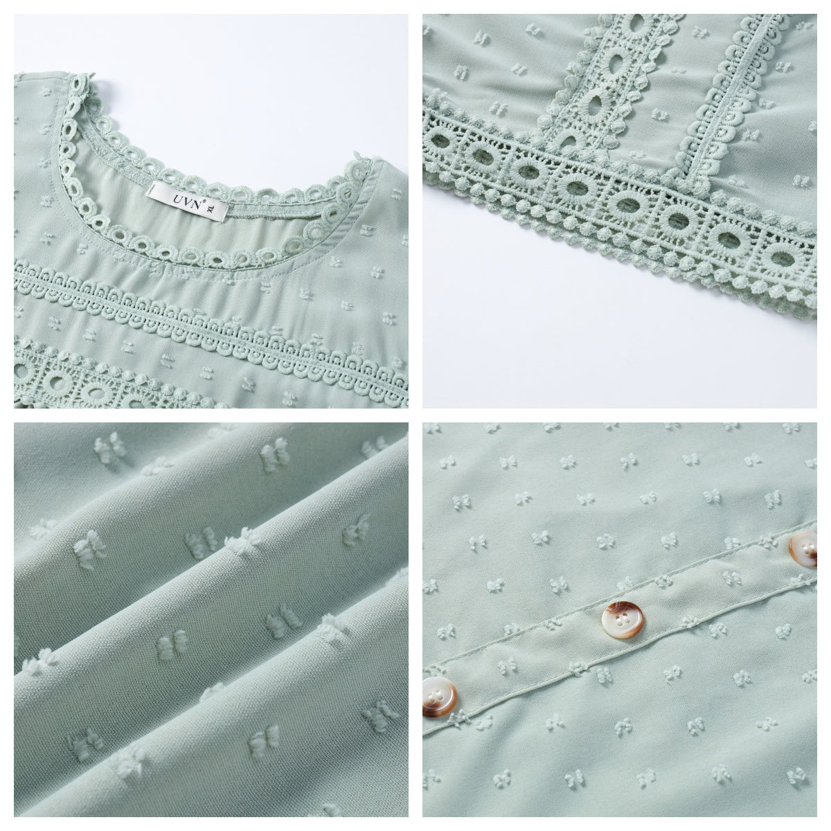 ✿【 Features 】:Delicate lace and crochet top for women details. Short sleeves for maximum comfort. Crewneck design for a casual look. Pom Swiss Dots Detailing shirt for a fancy style. Button Down Decoration womens blouse , the subtle yet stylish detail adds a touch of sophistication, making the ladies top a statement piece from every angle. Classic Round Neck Design, Elevate your everyday style with the timeless round neck silhouette.