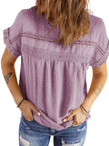 This women blouse top is designed with crew neck and crochet lace, and this women blouse shirt is made from high quality fabric, comfy, lightweight, skin-friendly, stretch fit. The cute shirts for women are light in weight and soft and comfortable to wear. This women summer lace shirt is perfect for those warm summer days and will quickly become a staple in your wardrobe. While still maintaining a comfortable and casual feel.