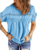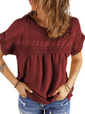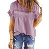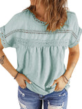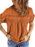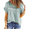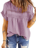 UVN Summer Womens Blouse Shirts Crewneck Lace Crochet Tops Short Sleeve Shirts Casual Chiffon Blouses