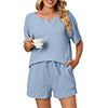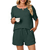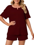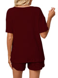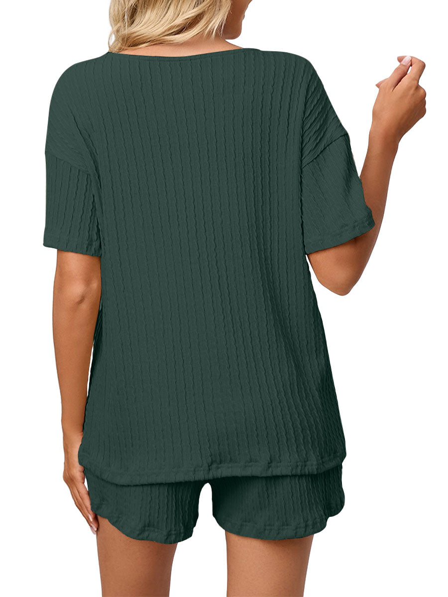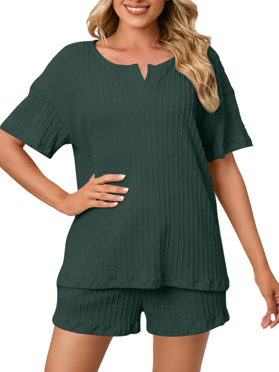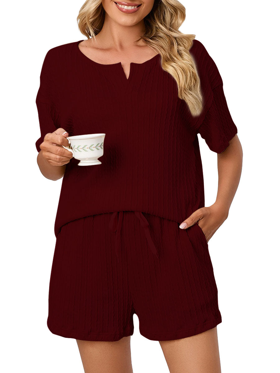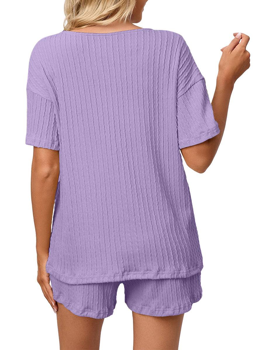 The lounge sets for women combines comfort and style with its thoughtful design and premium fabric. Made from soft, breathable materials, this ribbed sets for women features a relaxed short-sleeve drop-shoulder top paired with cozy shorts, offering ease of movement for restful sleep or casual lounging. With functional details like a drawstring waist and convenient pockets, it’s a practical yet chic addition to any wardrobe. Whether you're relaxing at home or enjoying a leisurely day, this versatile lounge set doubles as fashionable athleisure, making it perfect for staying stylishly comfortable throughout the day.