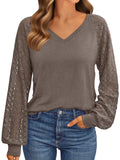 The blouses for women are designed to effortlessly combine style and comfort, and they are a series of exquisite lace long sleeve shirts designed for modern women. These elegant lace long sleeve shirts, paired with the delicate transparent lace on the v neck tops, create an eternal feminine charm. These fall tunic tops for women, with their meticulously crafted ultimate comfort and style, are the perfect choice for any occasion. Whether you are going to the office for work, attending a holiday party, or enjoying a comfortable brunch with friends, our womens blouses offer both versatility and elegance. The long sleeves of the ladies' shirts make them an ideal choice for seasonal changes.