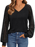 👜【Feature】Womens trendy tops, suitable for spring, summer and fall. The lace long sleeve and see through design elevate these womens tops beyond the basics, simple casual style chic and never out of date. These casual tunic tops for women feature elegant lace sleeves, adding a touch of refinement to your outfit. The unique design combines modern fashion elements with timeless style, making them a multi-functional addition to your wardrobe. The blouses for women features an elegant v neck cut, which can enhance the neck line, highlight the collarbone, and add feminine charm. These raglan long sleeve shirts are perfect for autumn wear, both warm and fashionable, making them an ideal choice for layering or wearing alone.