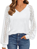 UVN Blouses for Women Dressy Lace Long Sleeve Shirts Fall Casual V Neck Tunic Tops