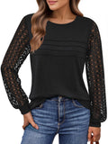 UVN Blouses for Women Dressy Lace Pleated Tunic Tops Casual Long Sleeve Fall Shirts