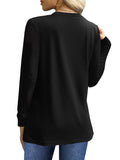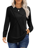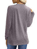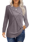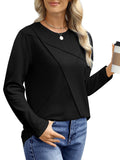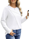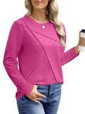 UVN Blouses for Women Pleated Long Sleeve Shirts Casual Crew Neck Tunic Tops