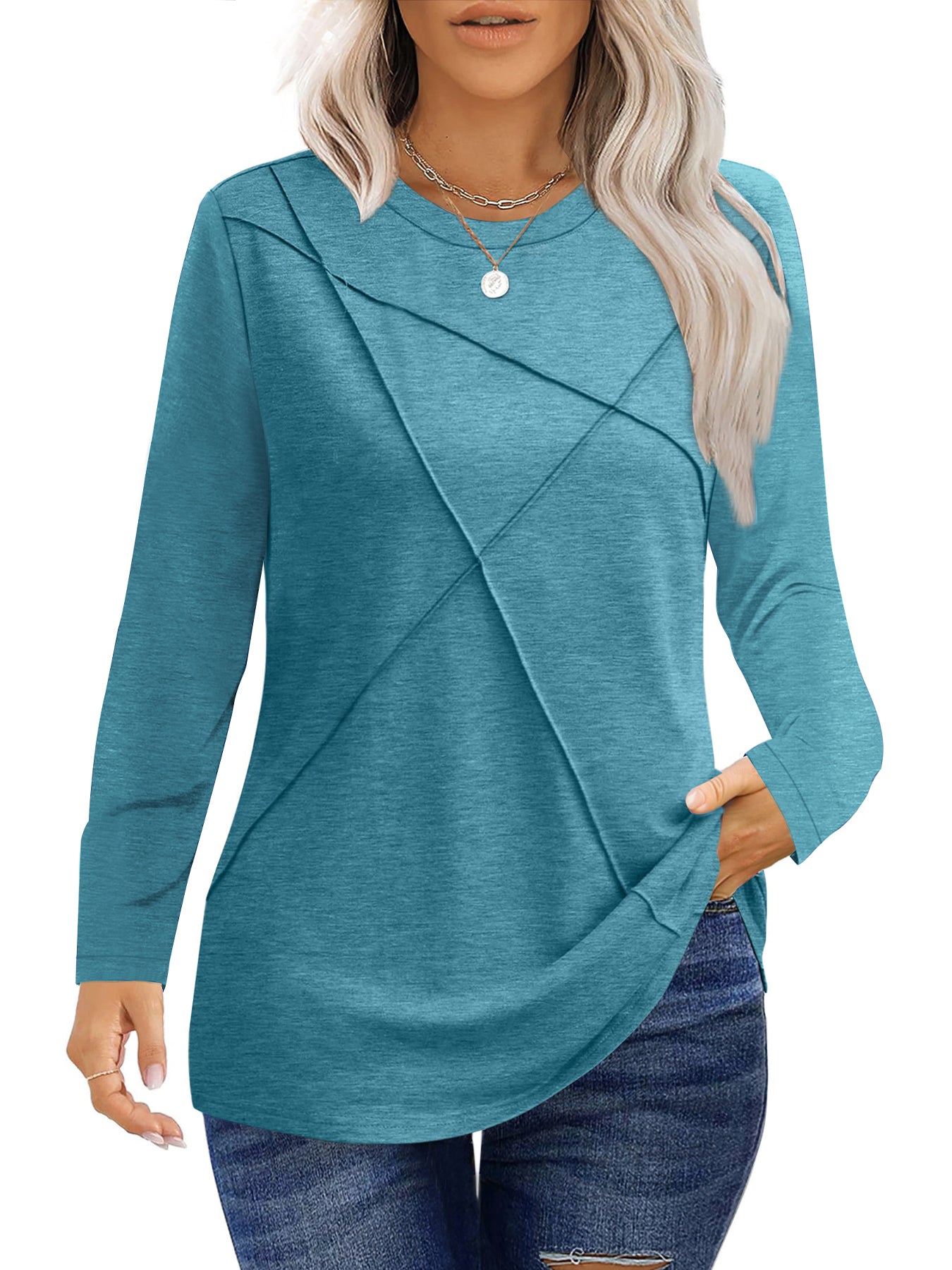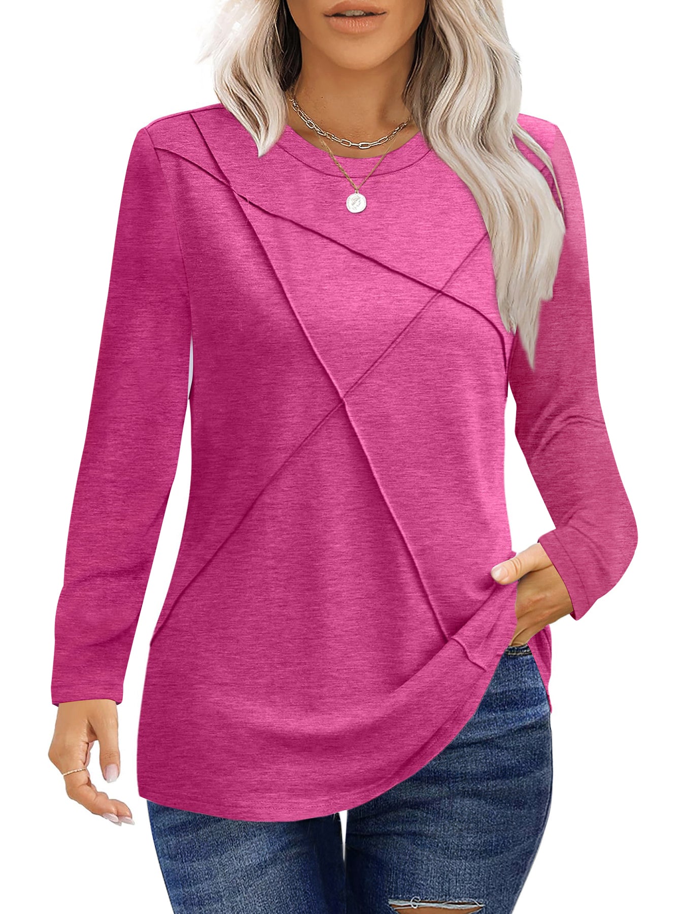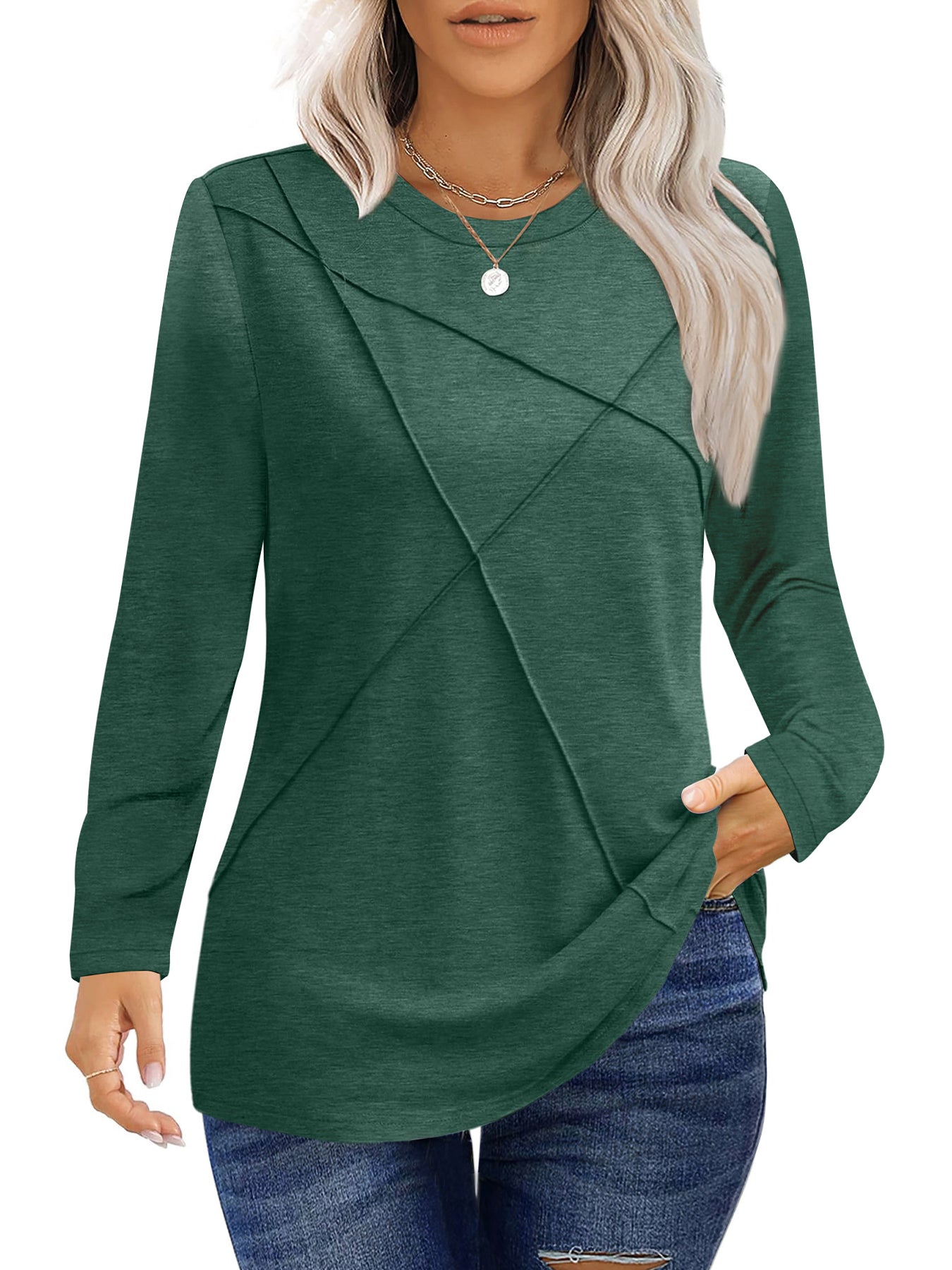 ❣️【Occasion】The tunic tops for women are suitable for various occasions - this effortless and fashionable shirt can be worn for office meetings, weekend brunches, travel adventures or date nights. The elaborately designed pleated details add elegance to the long sleeve shirt, making them suitable for semi-formal occasions such as offices and dates, highlighting feminine charm. Whether it's a formal meeting in the office, a weekend gathering with friends, or a romantic date dinner, these women pleated long sleeve shirts can make you full of confidence. UVN women's tops are dedicated to providing modern women with fashionable and practical clothing options. Add these casual crew neck tunic tops to your shopping cart to immediately upgrade your everyday outfits and experience the perfect blend of comfort and fashion.