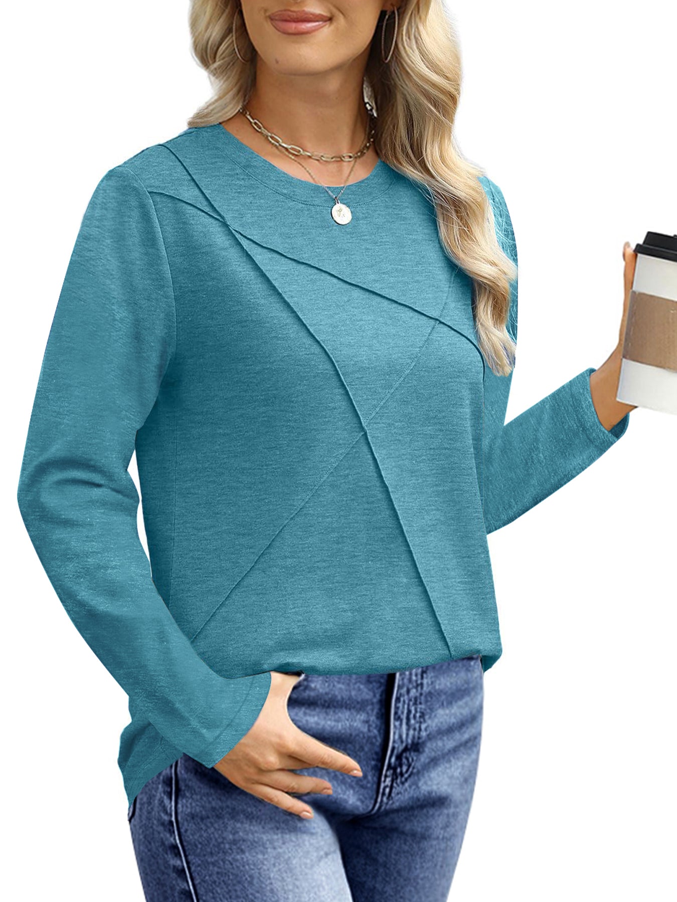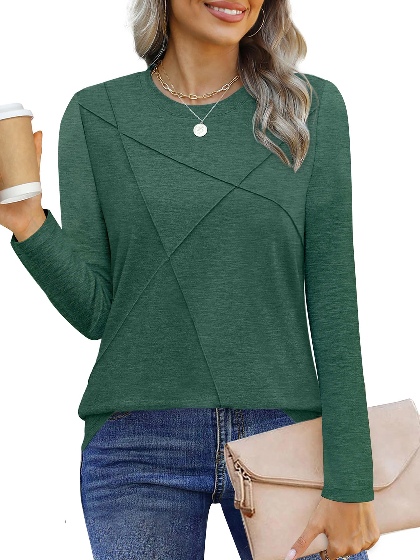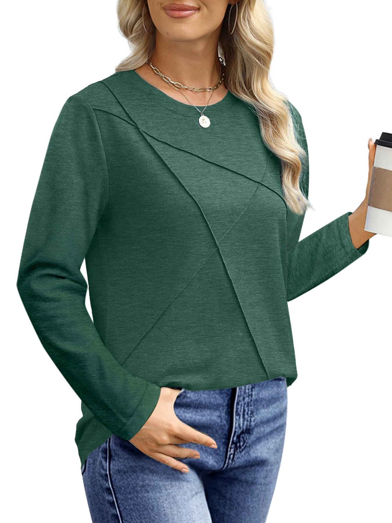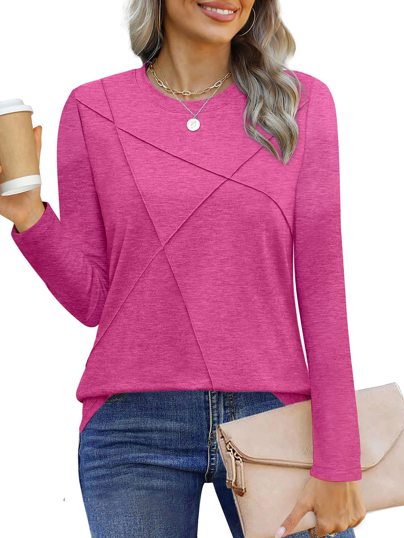 ❣️【Occasion】The tunic tops for women are suitable for various occasions - this effortless and fashionable shirt can be worn for office meetings, weekend brunches, travel adventures or date nights. The elaborately designed pleated details add elegance to the long sleeve shirt, making them suitable for semi-formal occasions such as offices and dates, highlighting feminine charm. Whether it's a formal meeting in the office, a weekend gathering with friends, or a romantic date dinner, these women pleated long sleeve shirts can make you full of confidence. UVN women's tops are dedicated to providing modern women with fashionable and practical clothing options. Add these casual crew neck tunic tops to your shopping cart to immediately upgrade your everyday outfits and experience the perfect blend of comfort and fashion.