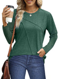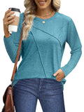 ❣️【Feature】The long sleeve shirts can transition easily between seasons and are multi-purpose womens shirts in your wardrobe. The exquisite pleated womens top adds texture and complexity, enhancing the casual and professional look. The flowing cut of the women's corset top can make the body look slender and is suitable for all body types and ages. The crew neck of womens tops never goes out of style.
