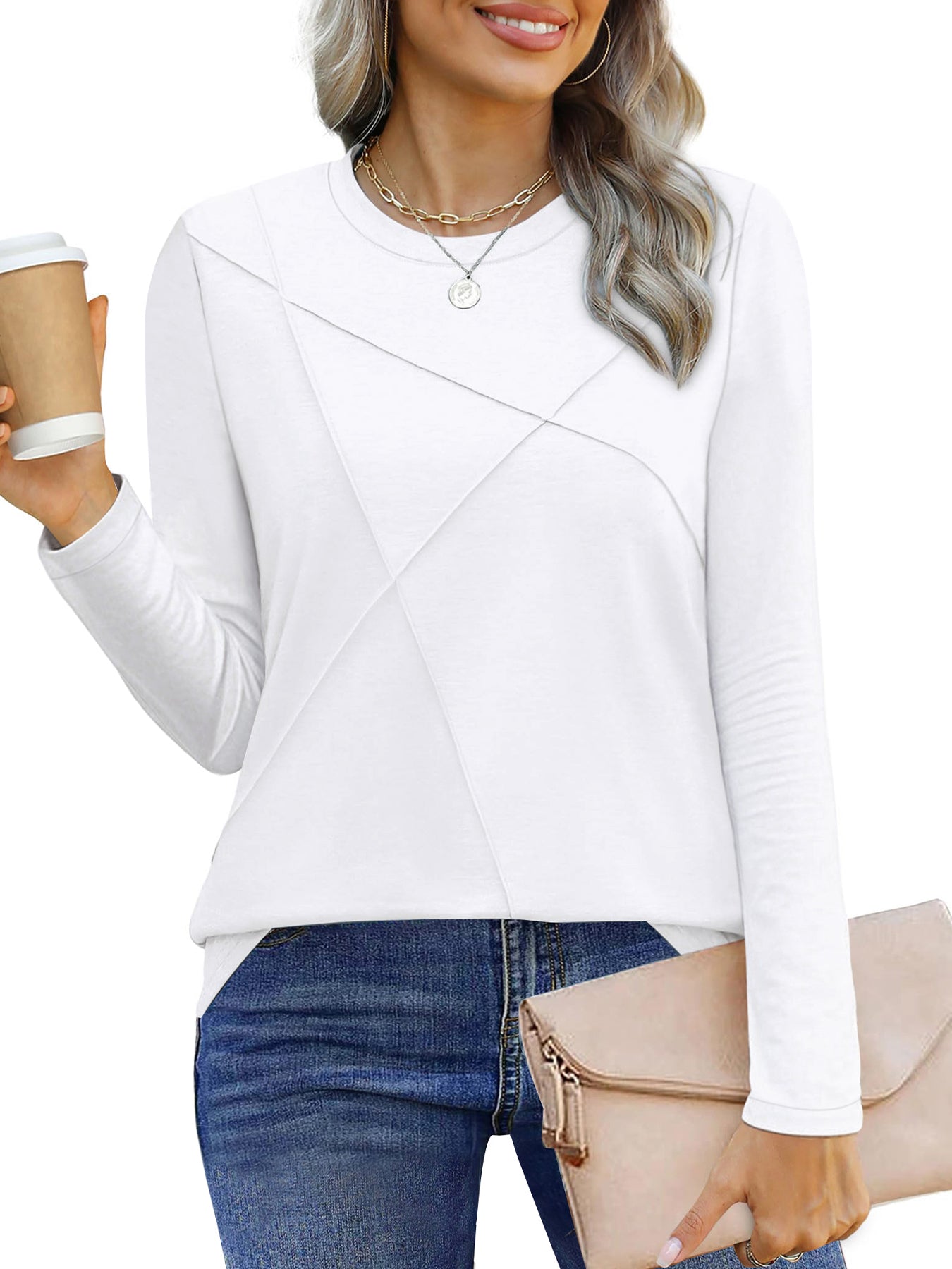 ❣️【Match】The blouses for women are versatile items for all occasions. The womens blouses can be paired with casual suits in the workplace, comfortable and casual jeans in daily life, and elegant skirts on special occasions. One single item can meet all your needs. The simple and elegant crew neck design of the long sleeve shirts pairs perfectly with various accessories. Whether it's a necklace or a scarf, it's the perfect choice for a daily start and a casual gathering.