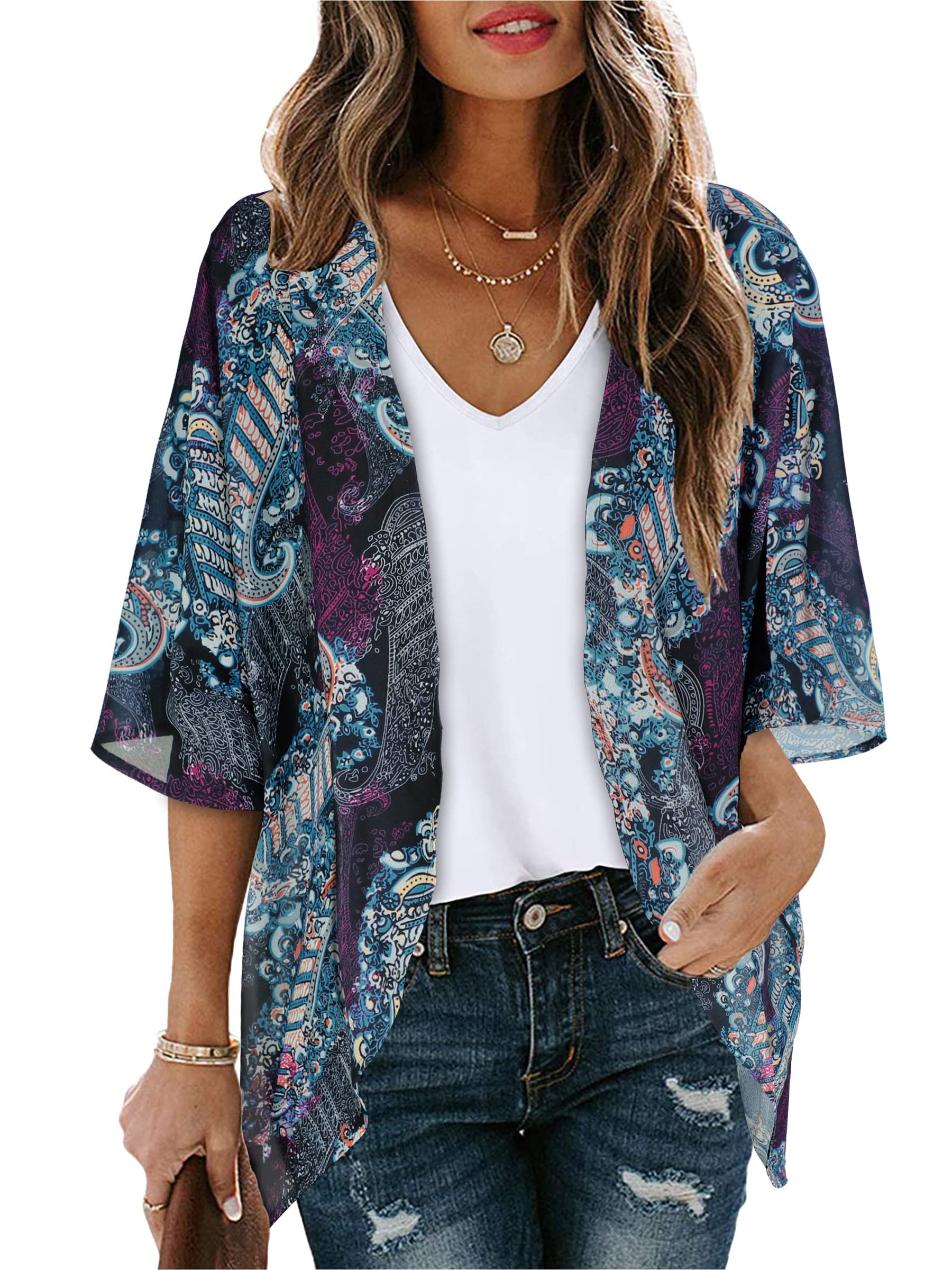 UVN Blouses for Women Print Kimono Plus Size Clothes Summer Casual Swimsuits Coverup Tops