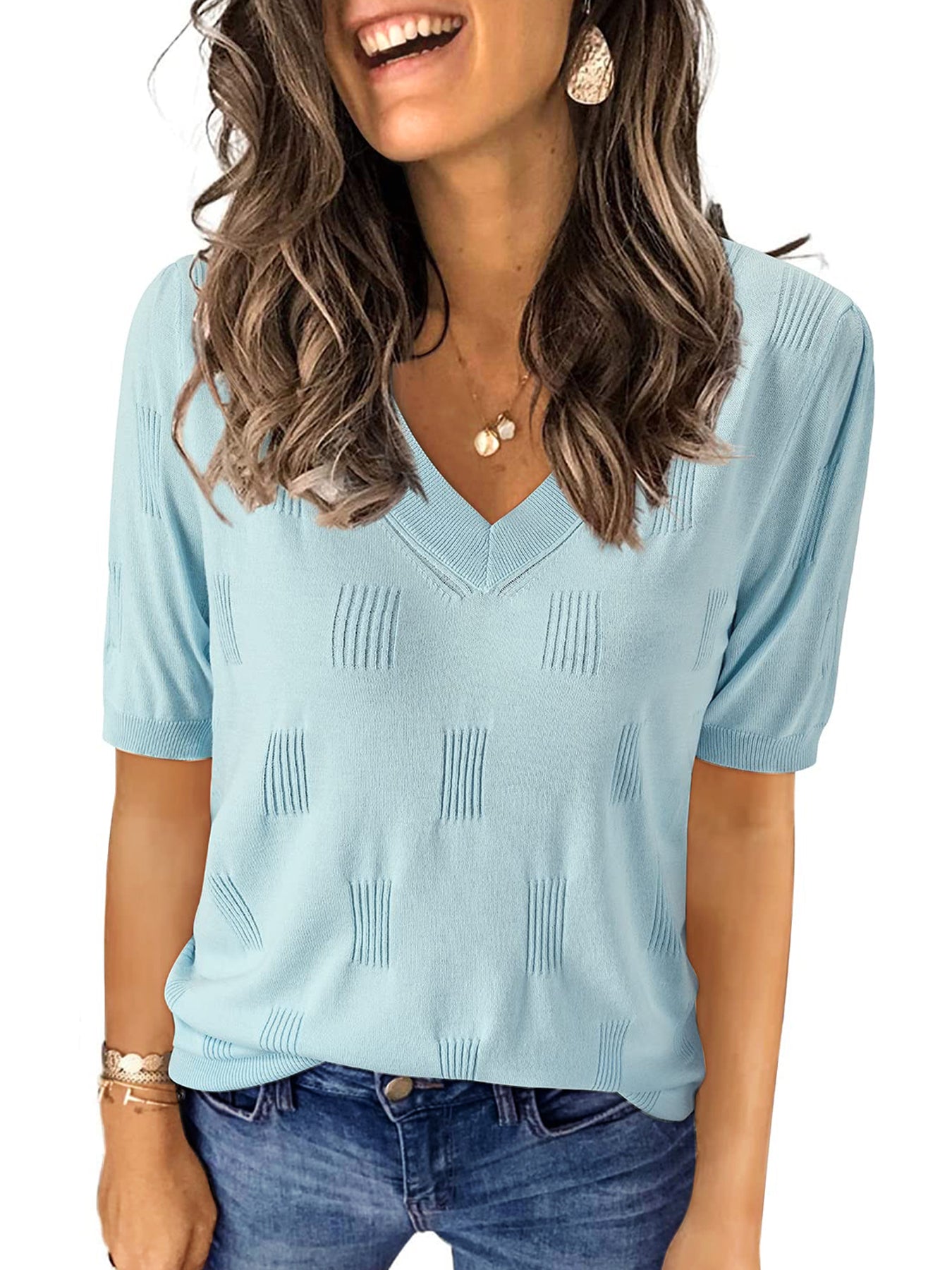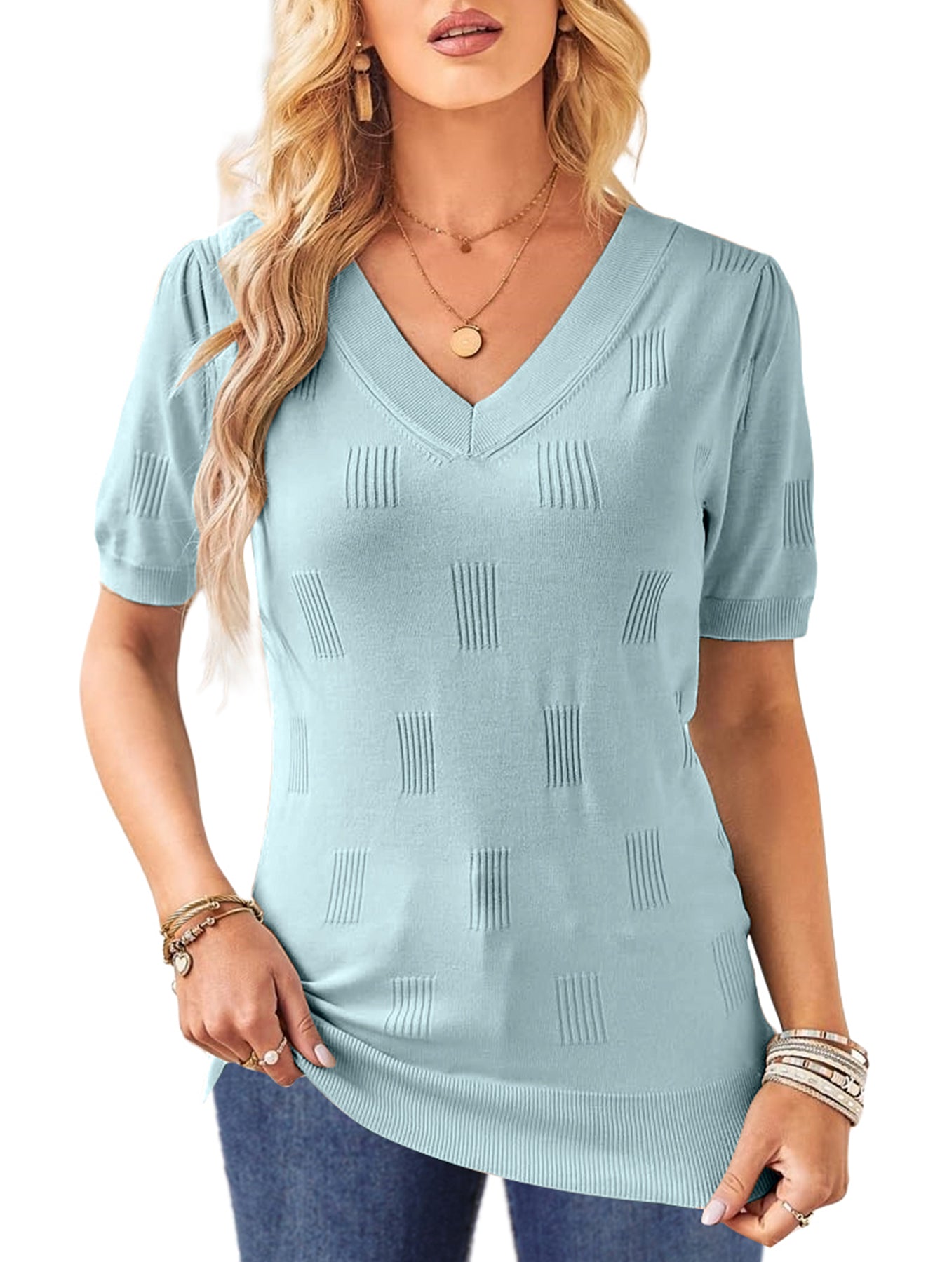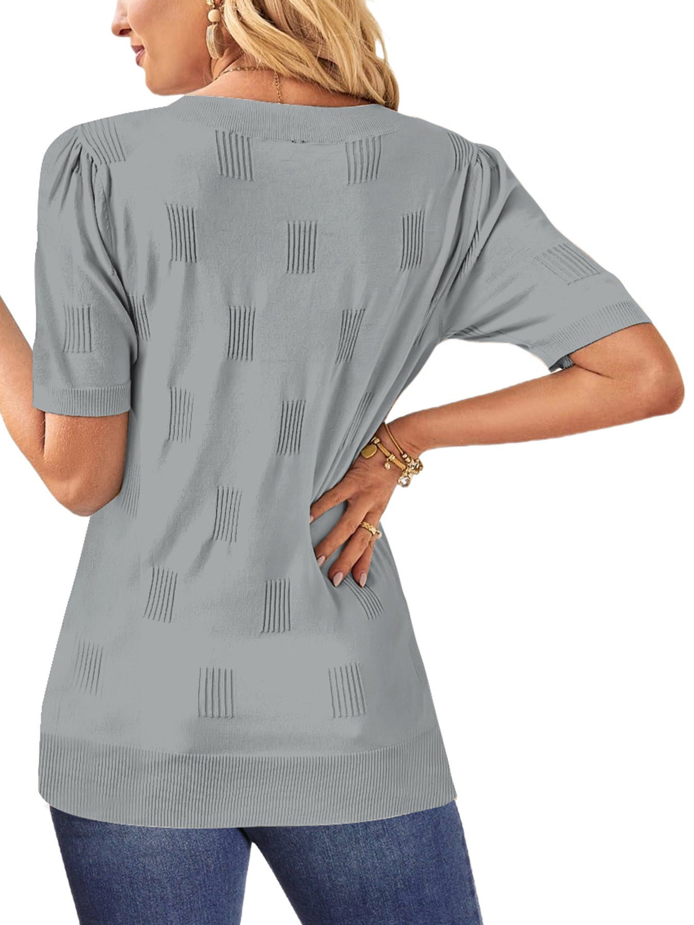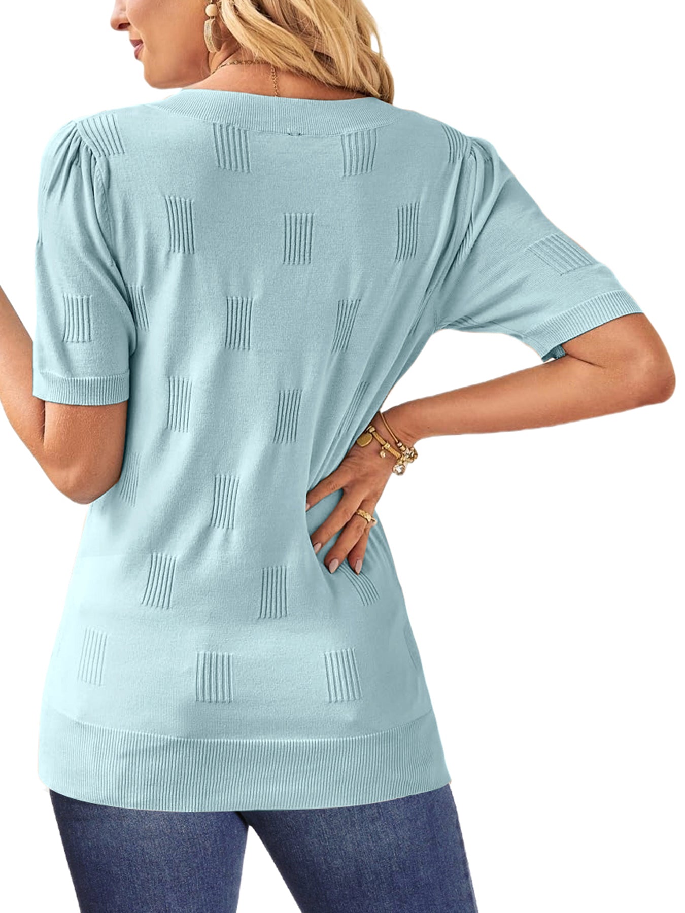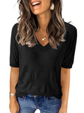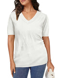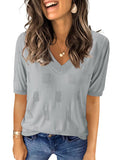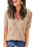 📥【Occasion】Whether it's a beach vacation, outdoor picnic, friend gathering, or daily travel, these blouse for women can be your ideal choice. This knitted top is versatile and fashionable, making it perfect for various occasions. Whether you're going for a casual lunch, a relaxing evening outing, or a leisurely date, this top effortlessly enhances your style. It is also suitable for office attire, outdoor gatherings, and weekend gatherings, making it a must-have item for this summer's wardrobe. These casual v neck short sleeve shirts are perfect as a birthday, graduation, or holiday gift, conveying warmth and care.