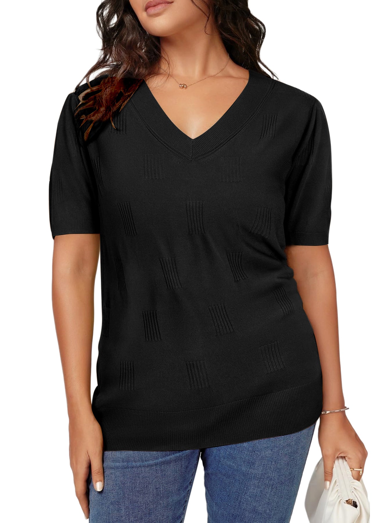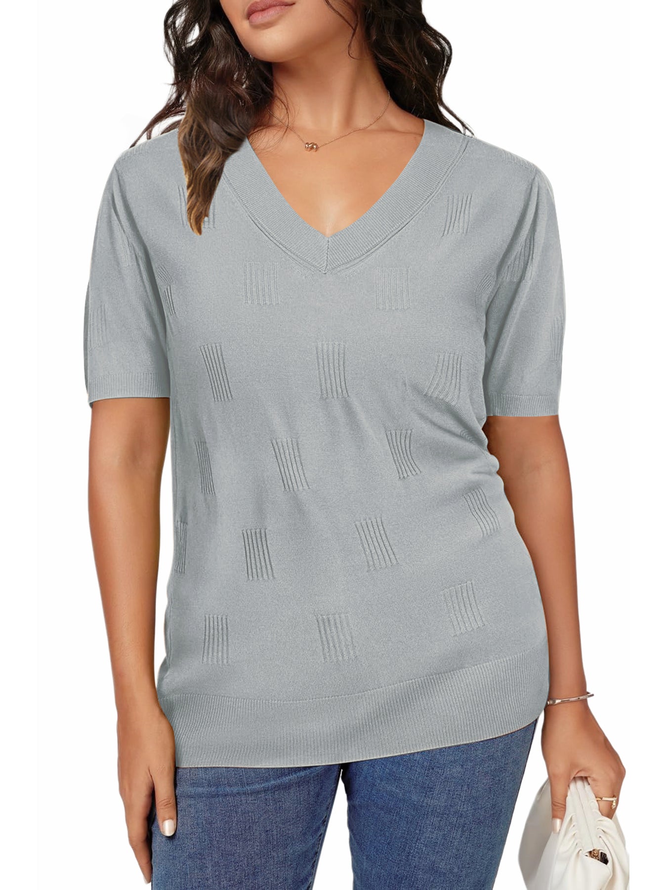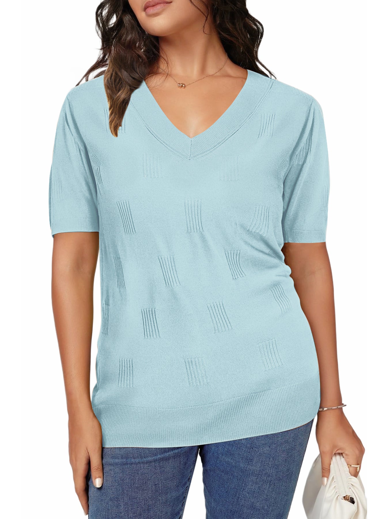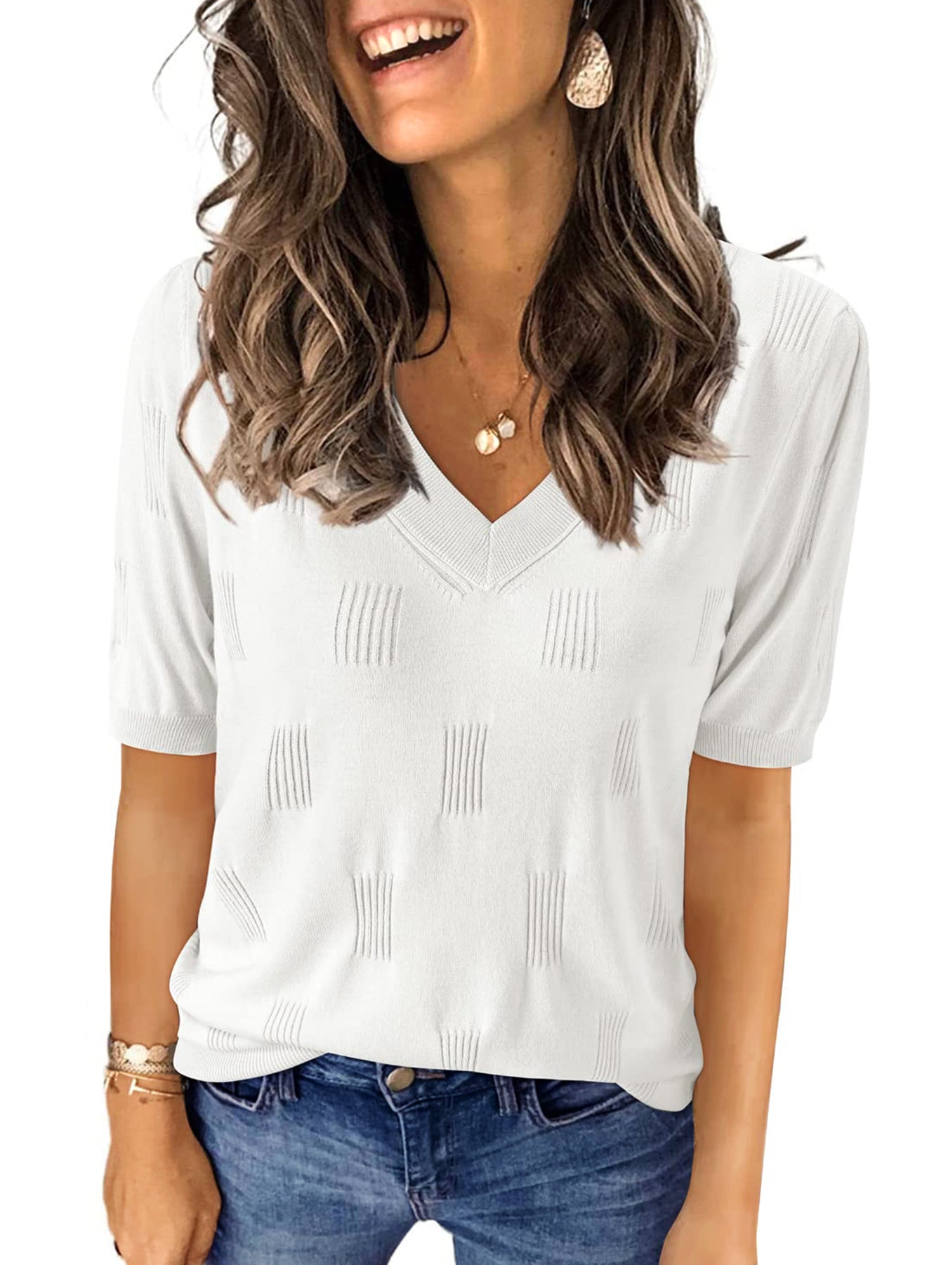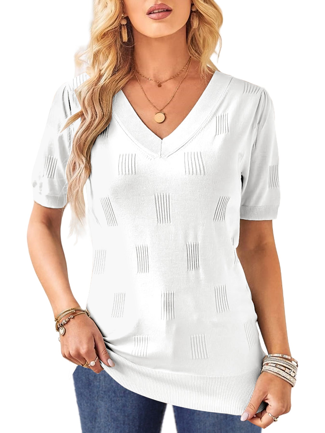 📥【Occasion】Whether it's a beach vacation, outdoor picnic, friend gathering, or daily travel, these blouse for women can be your ideal choice. This knitted top is versatile and fashionable, making it perfect for various occasions. Whether you're going for a casual lunch, a relaxing evening outing, or a leisurely date, this top effortlessly enhances your style. It is also suitable for office attire, outdoor gatherings, and weekend gatherings, making it a must-have item for this summer's wardrobe. These casual v neck short sleeve shirts are perfect as a birthday, graduation, or holiday gift, conveying warmth and care.