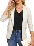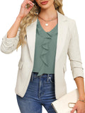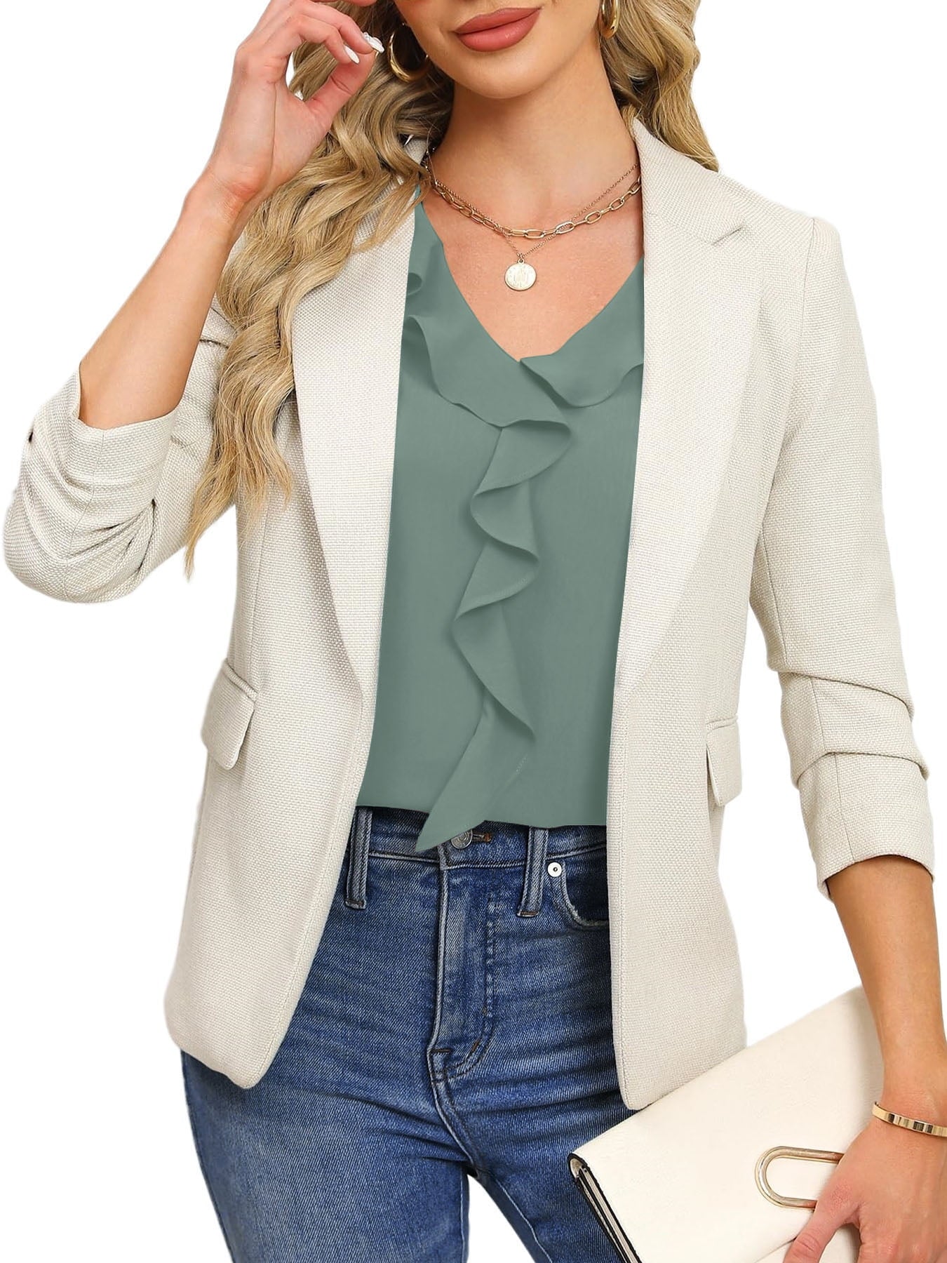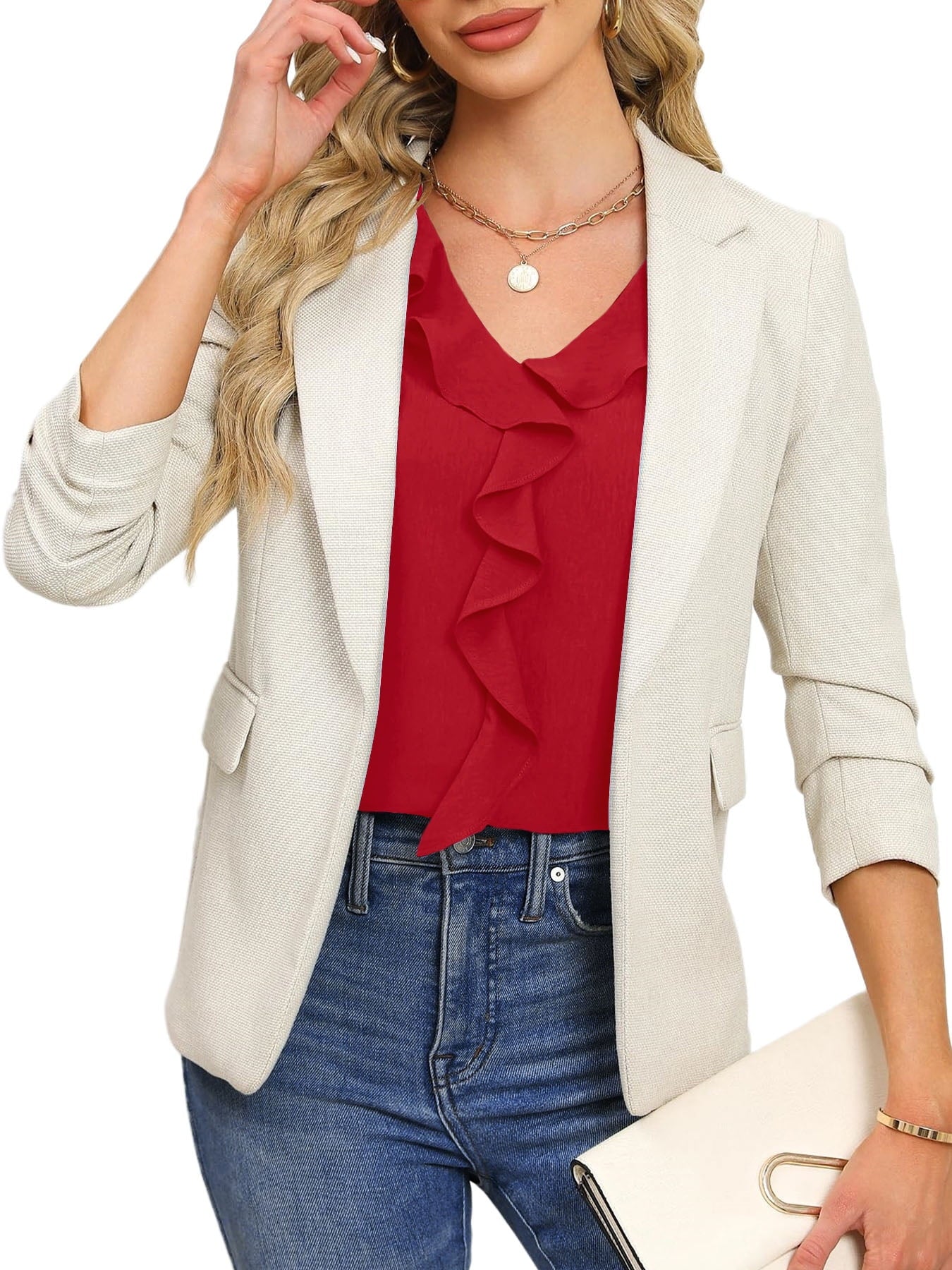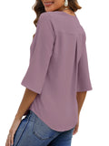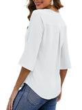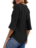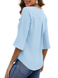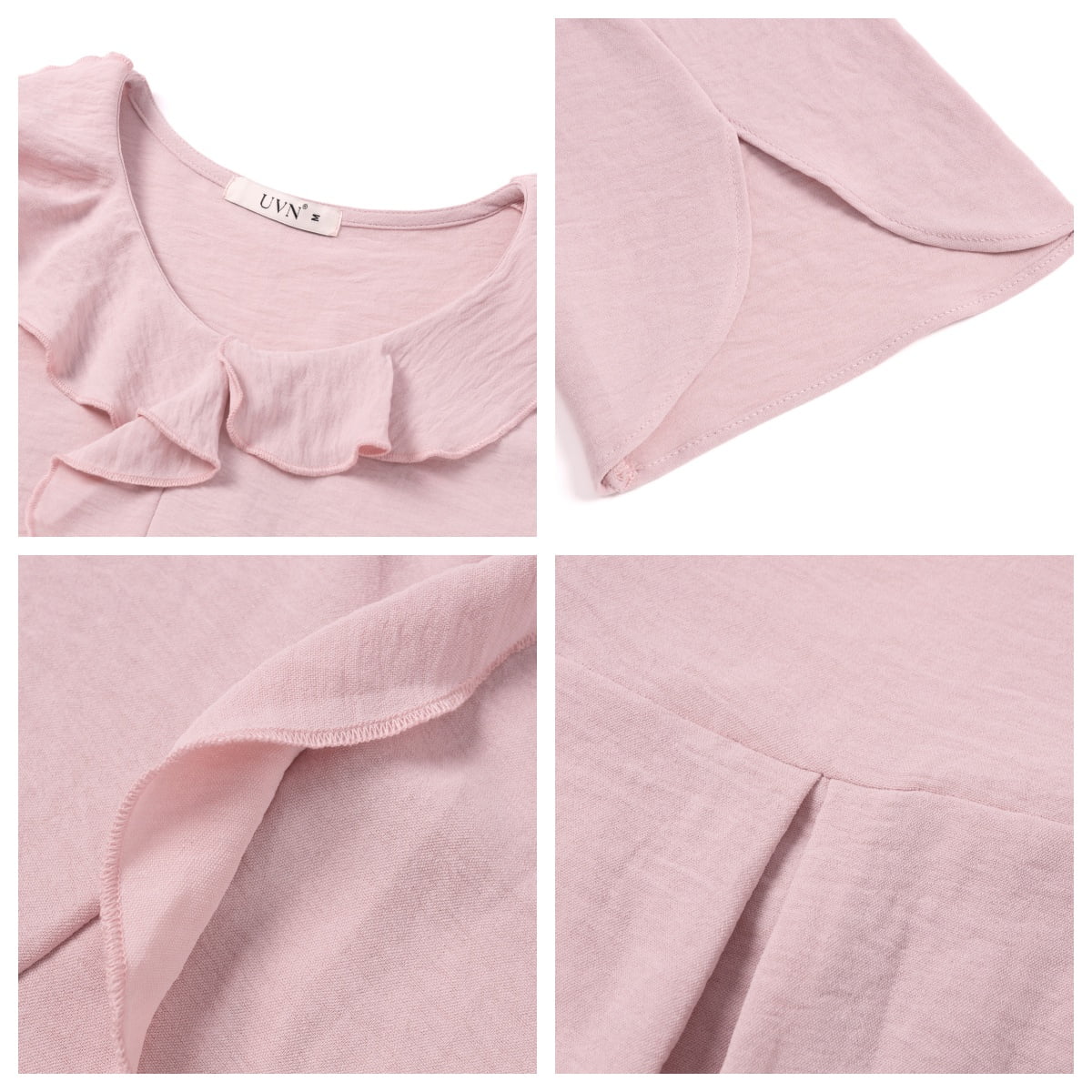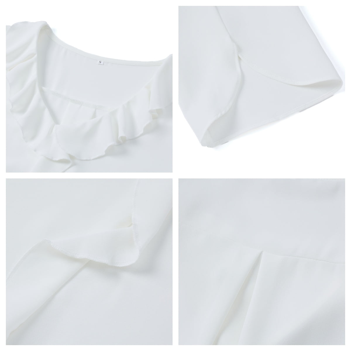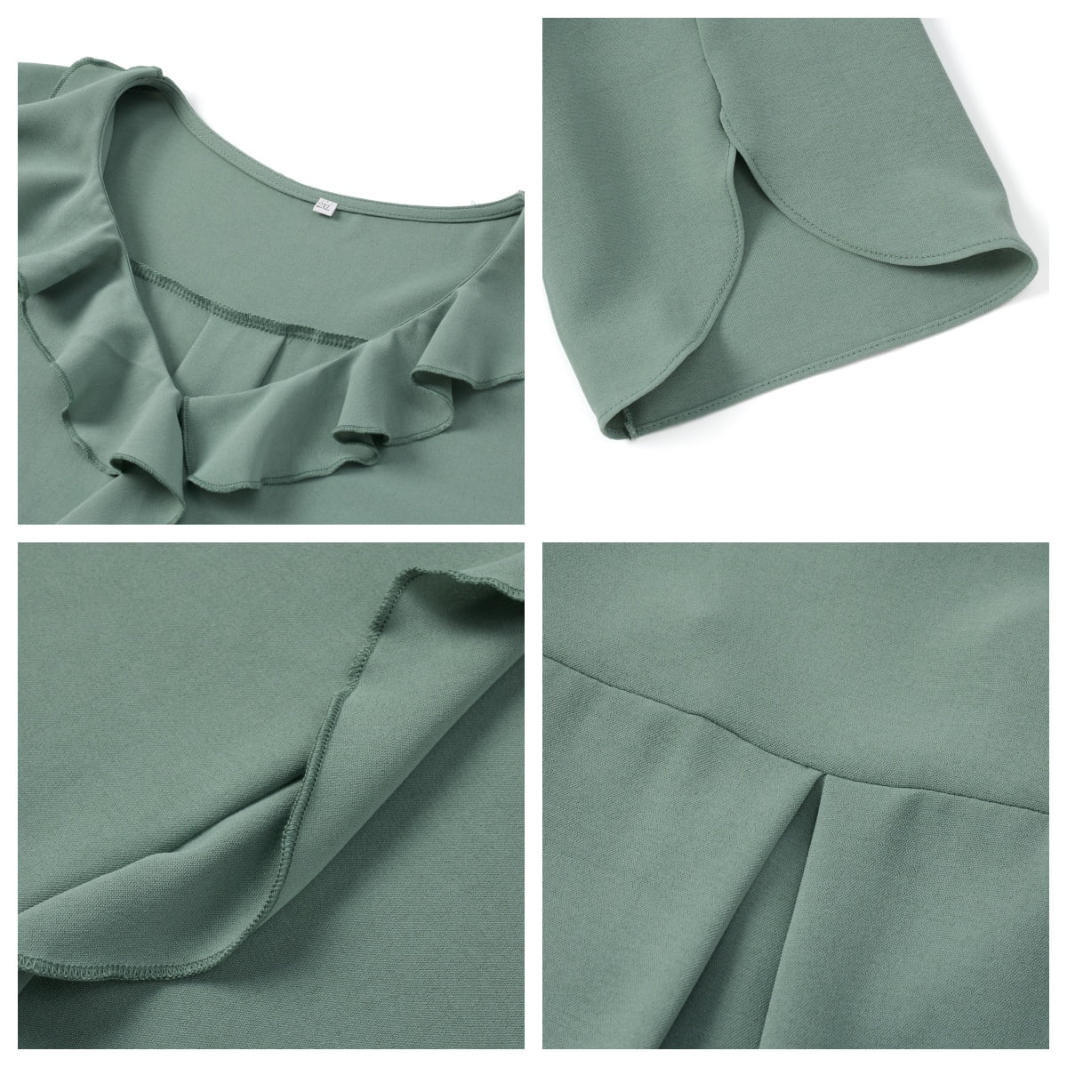 UVN Chiffon Blouses for Women Dressy Ruffle V Neck Tops Summer Casual 3/4 Sleeve Shirts