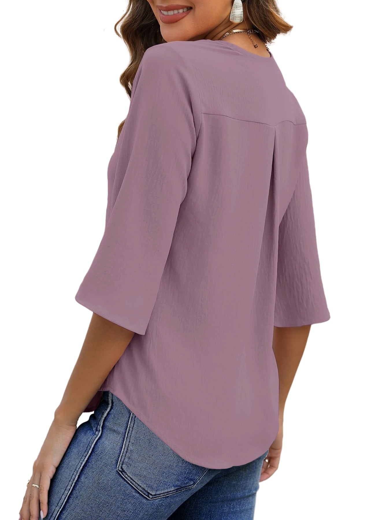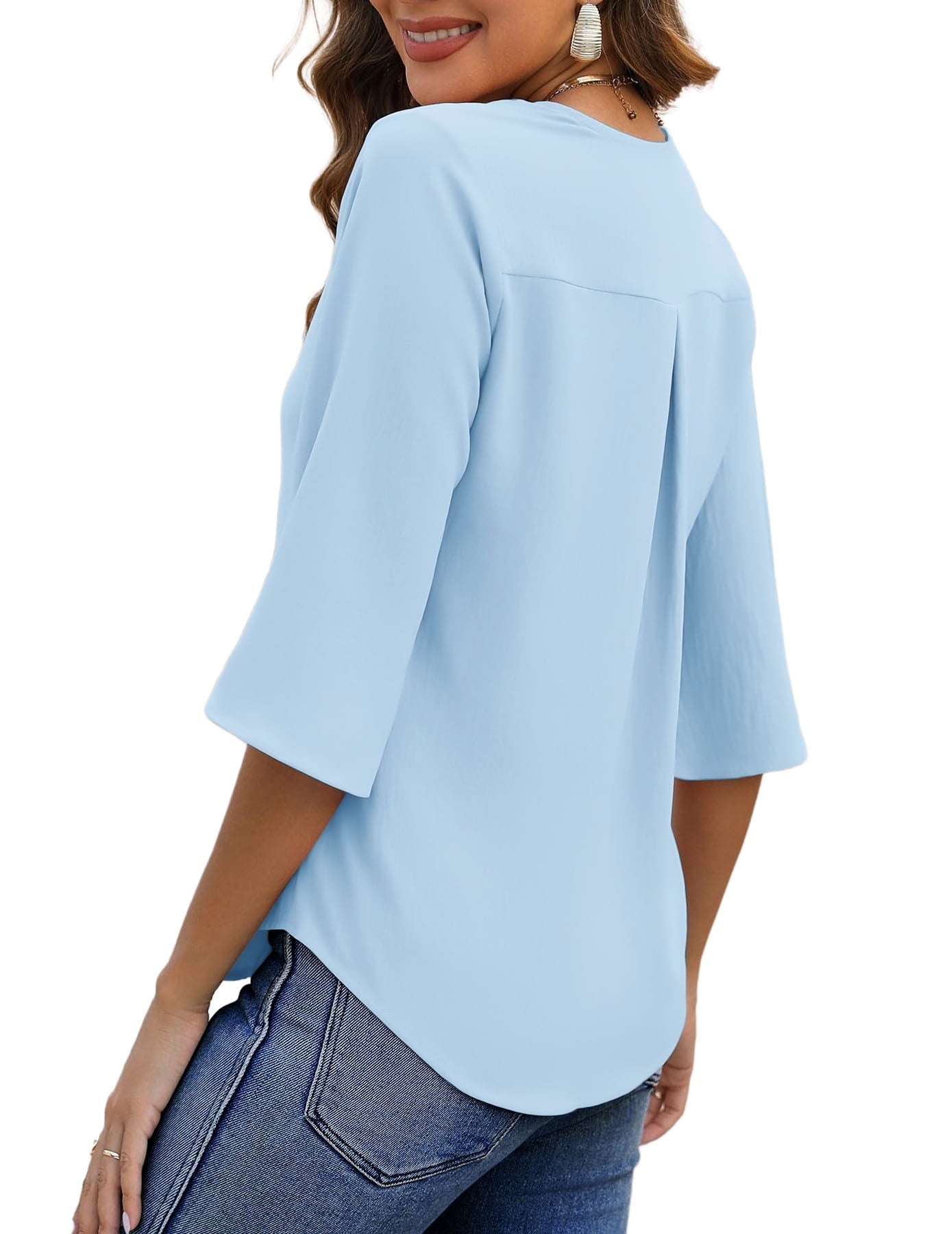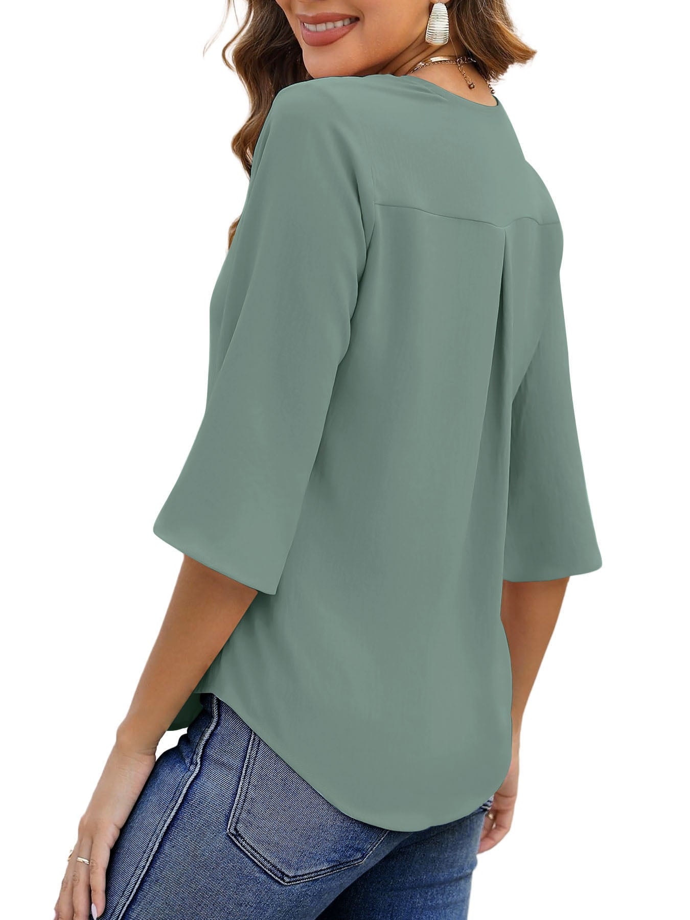 👜【Match】These womens shirts are perfect for pairing with jeans, leggings, skirts, or shorts, and womens shirts can create the look of a work office. The 3/4 sleeve shirts for women very suitable for business and leisure style, showcasing experience and confidence. You can also dress up according to your mood and activities. Its versatility makes it suitable for both leisure activities and semi formal activities.
