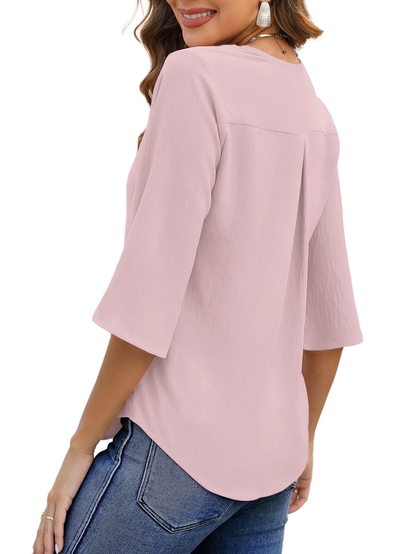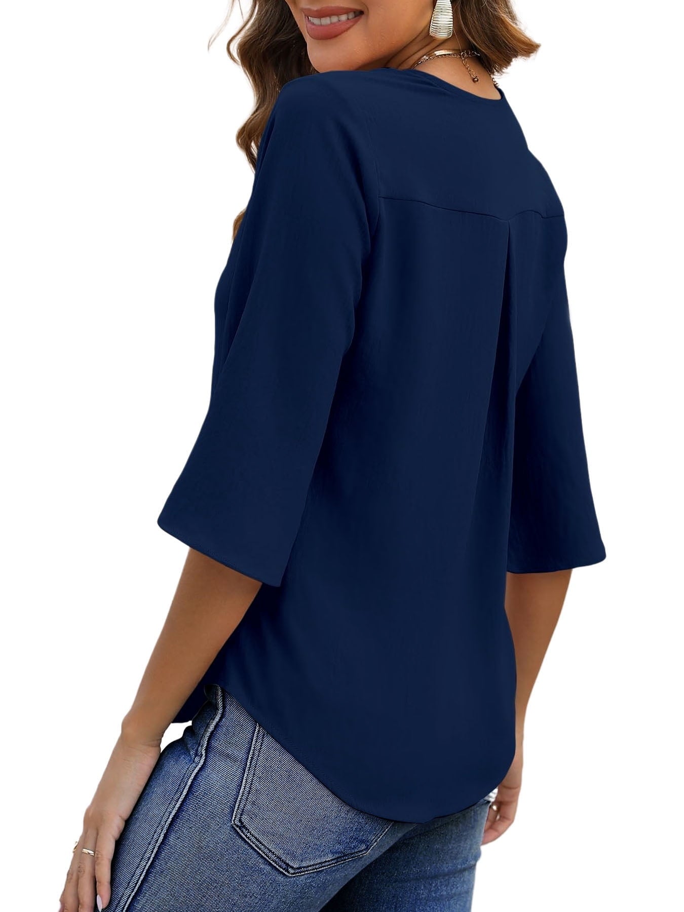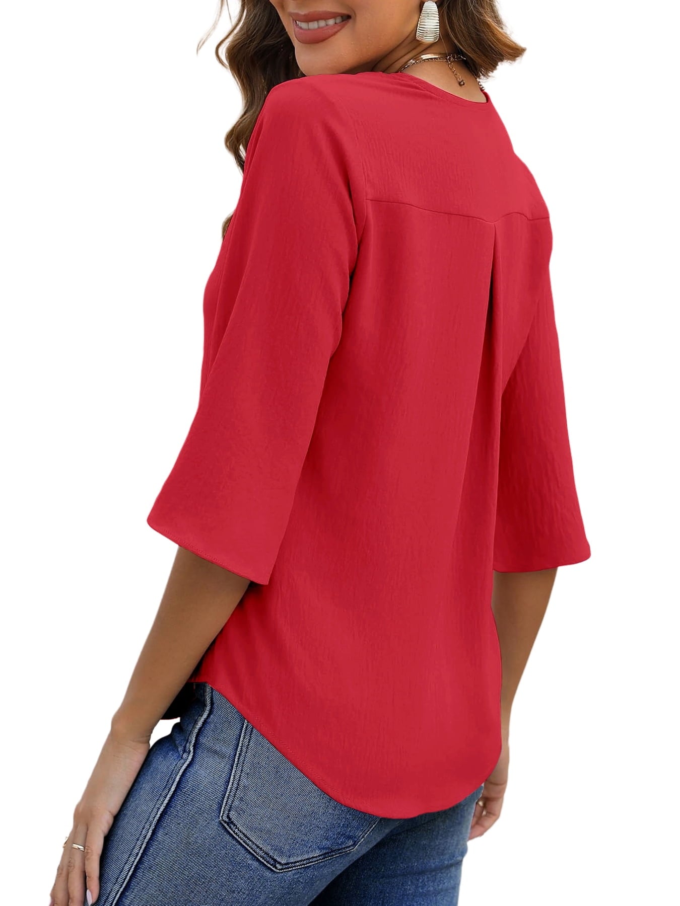 👜【Match】These womens shirts are perfect for pairing with jeans, leggings, skirts, or shorts, and womens shirts can create the look of a work office. The 3/4 sleeve shirts for women very suitable for business and leisure style, showcasing experience and confidence. You can also dress up according to your mood and activities. Its versatility makes it suitable for both leisure activities and semi formal activities.