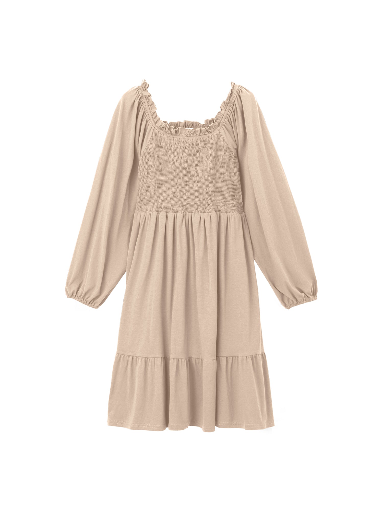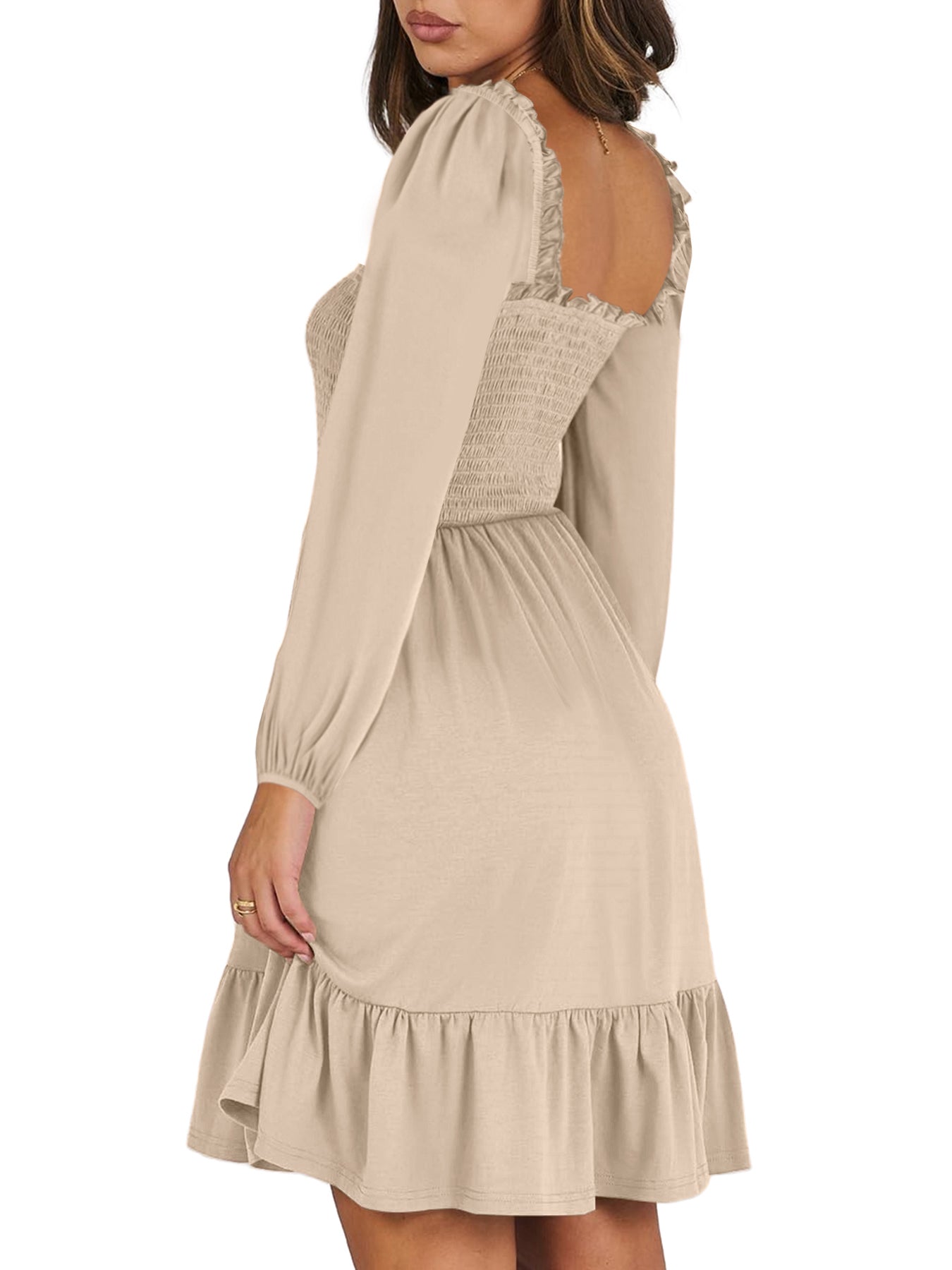 The pleated dresses for women are specially designed for real women and are indispensable fashion items in the autumn and winter wardrobes. The pleated design and fitted silhouette of the womens dresses gently glide over your figure, while the square neck adds a touch of delicate playfulness and freshness, making them an ideal choice for women who wish to enrich their wardrobes with versatile items. The casual long sleeve dress offers women just the right amount of coverage. Whether on casual days or in more formal occasions, it is an ideal choice for casual dresses.