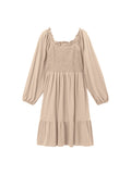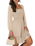 UVN Dresses for Women Casual Long Sleeve Square Neck Dress Ruffle Pleated Flowy Midi Dress