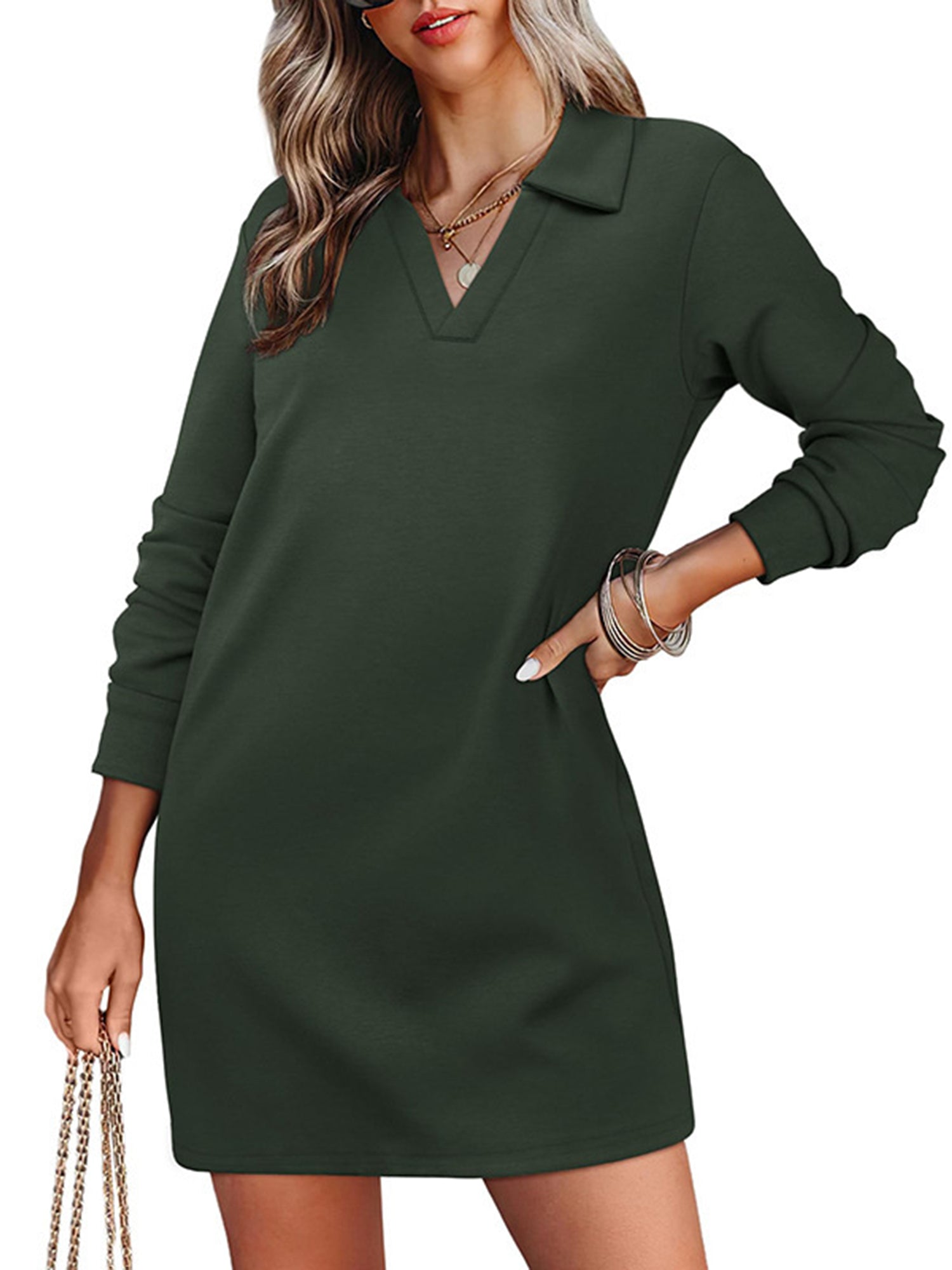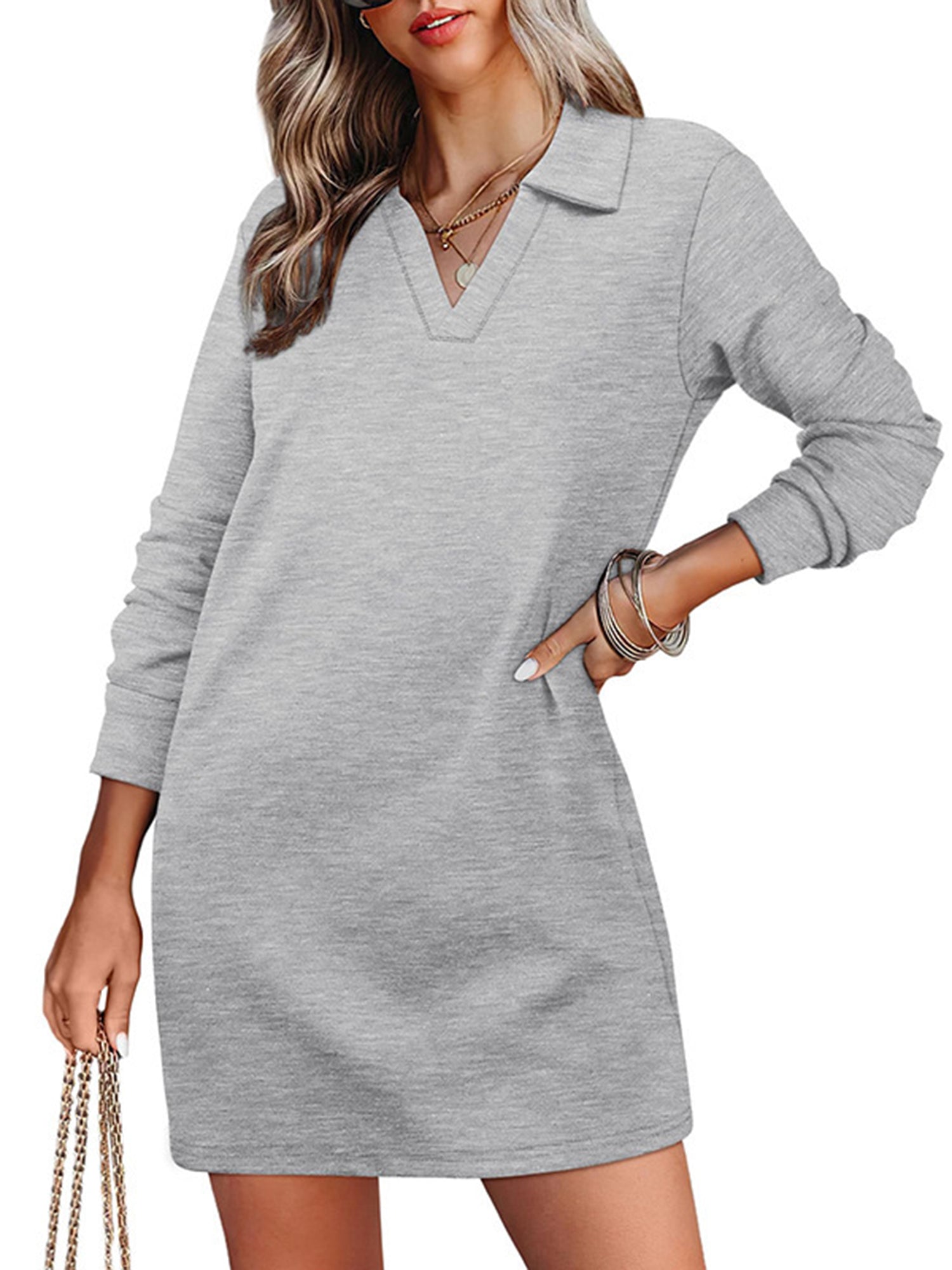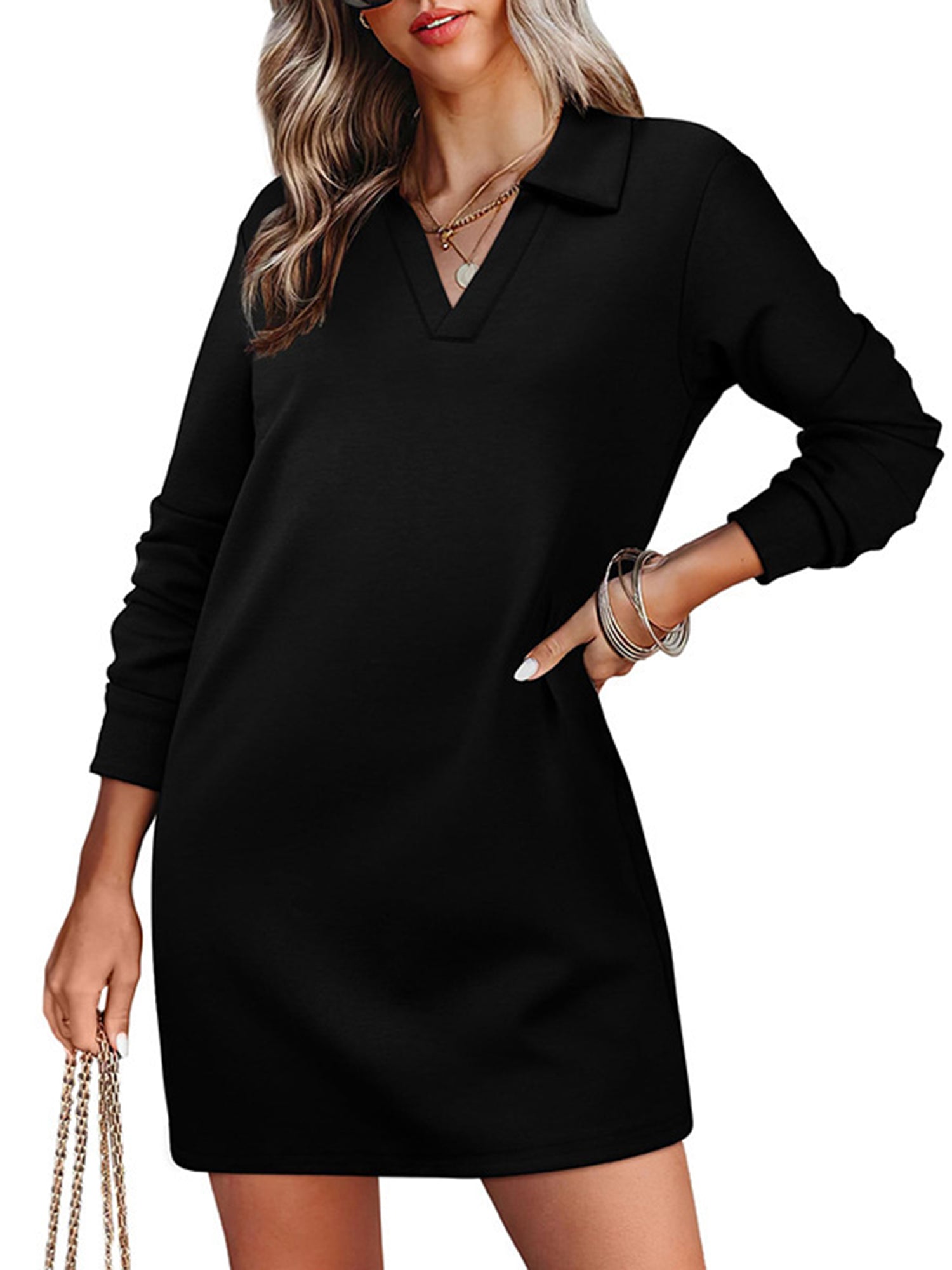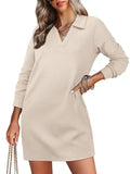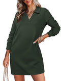 UVN Dresses for Women Long Sleeve Lapel Neck Dress Fall Casual Sweatshirt Dresses