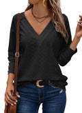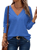 Enrich your wardrobe with this elegant V-neck ladies top. This women blouse combines design and comfort. The V-neck design of this womens shirt is modern and visually extends the neckline, adding an elegant temperament. The design of the buttons at the cuffs makes this womens long sleeve top look refined. Lace-like fabric makes this tops for women, womens long sleeve tops, shirts for women dressy casual, womens long sleeve blouse, v neck blouses for women, womens lace top, long sleeve shirts for women comfortable and breathable, while enhancing femininity. Pair high-waisted jeans for casual use, and suit jackets for office use, this womens V neck shirt is designed to suit a variety of occasions. Soft, stretchy, and designed for all-day wear, this piece is a wardrobe staple for seasonless style.