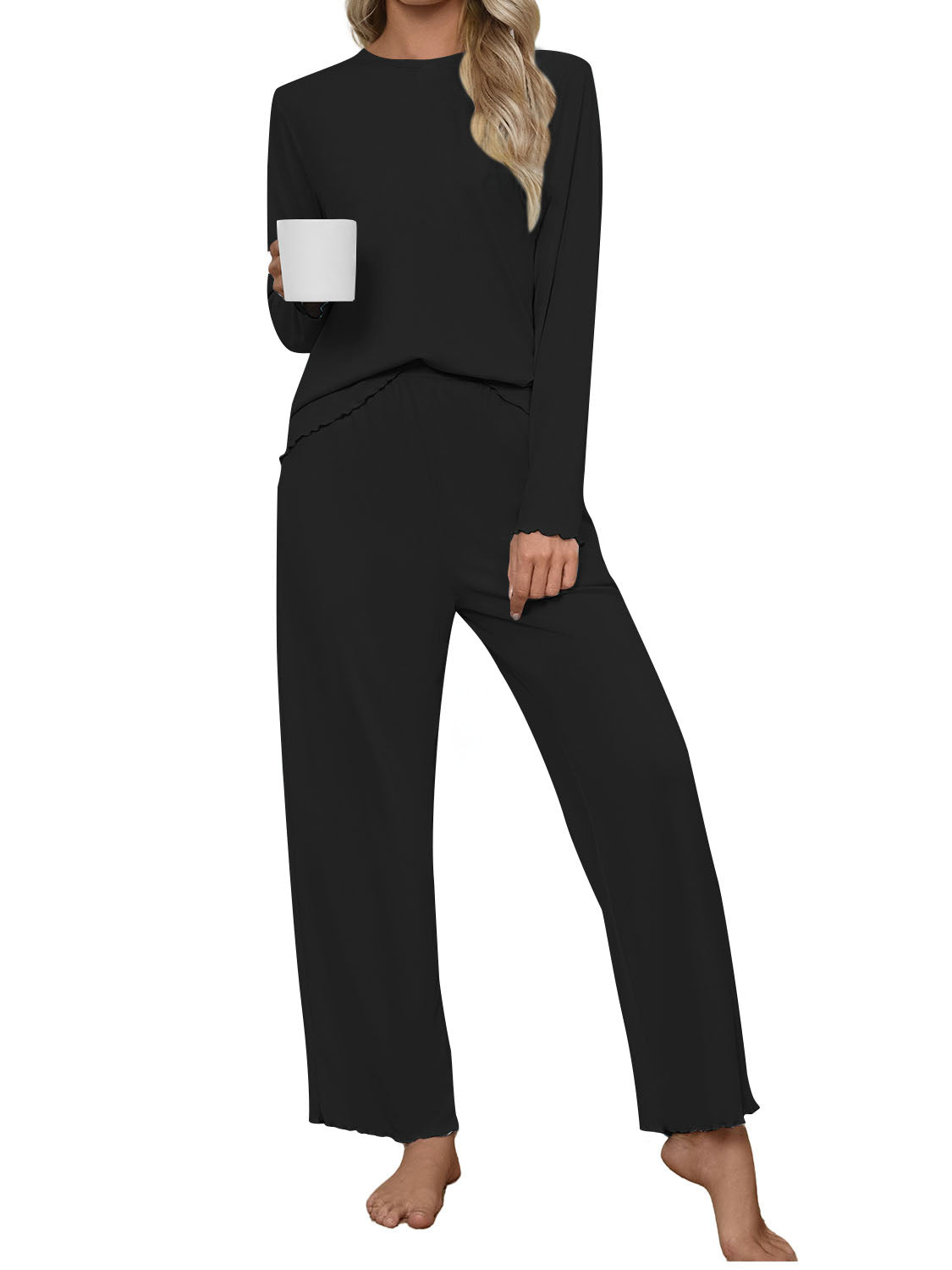 The lounge sets for women is the ultimate combination of comfort and style for relaxing at home. Made from soft, warm, ribbed knit fabric, this blue pajamas feels gentle on the skin and ensures a cozy yet lightweight fit, perfect for autumn nights. The two-piece design features a long-sleeve top and matching pants, offering a relaxed and flattering silhouette that’s ideal for sleeping or lounging. The casual yet chic style of this pajama set makes comfortable pajamas for women versatile enough to double as loungewear, keeping you effortlessly stylish and comfortable throughout your downtime.
