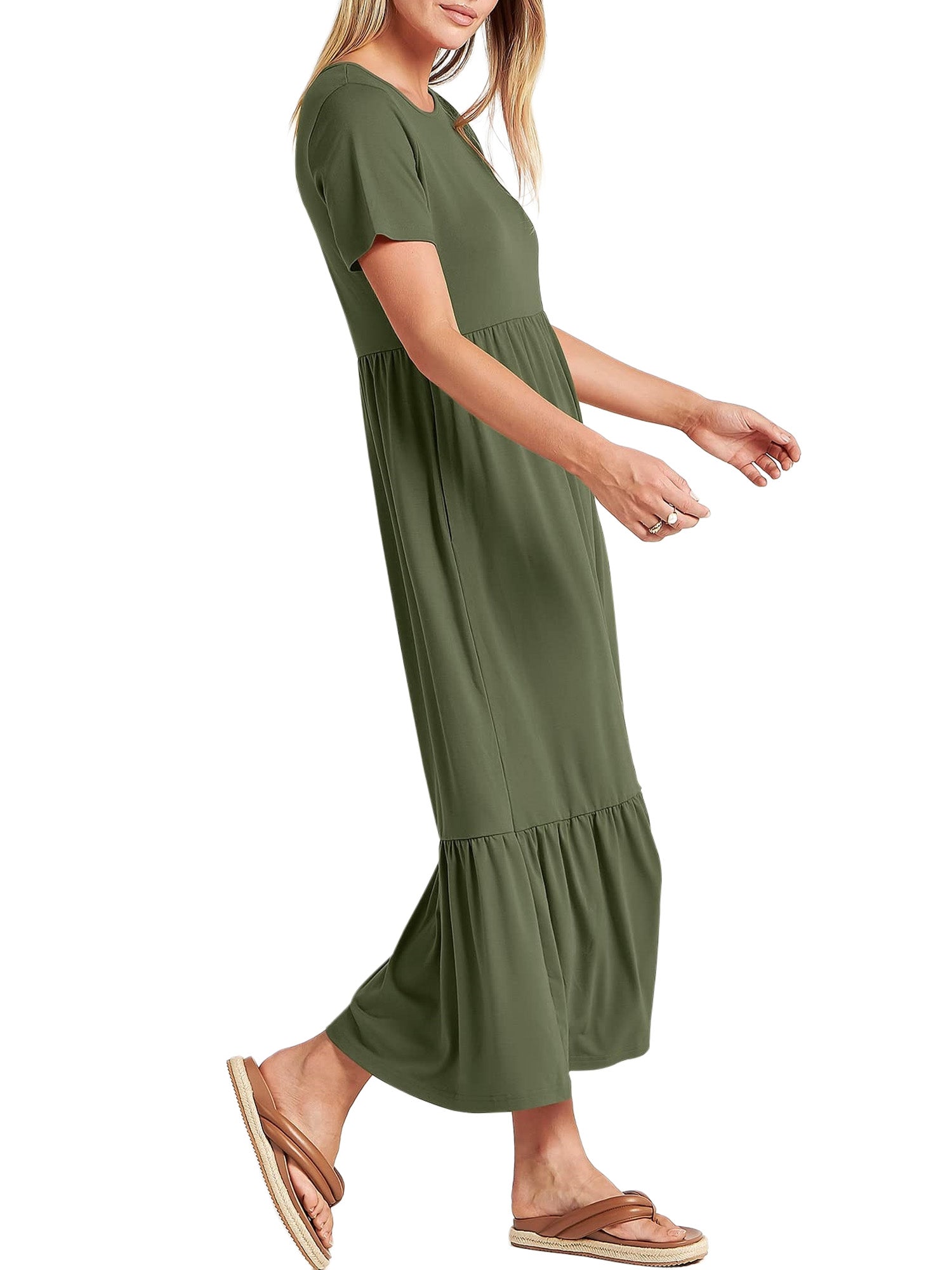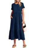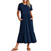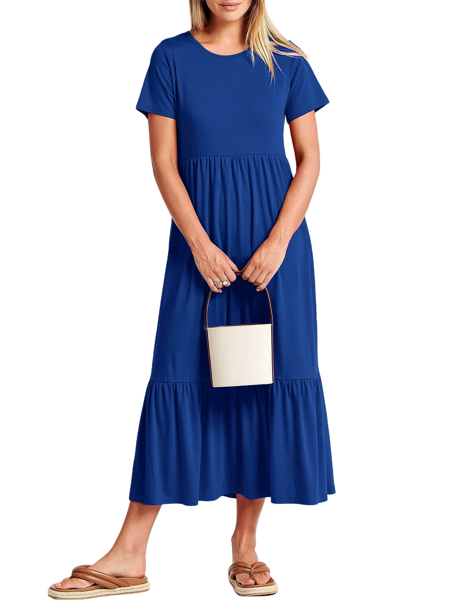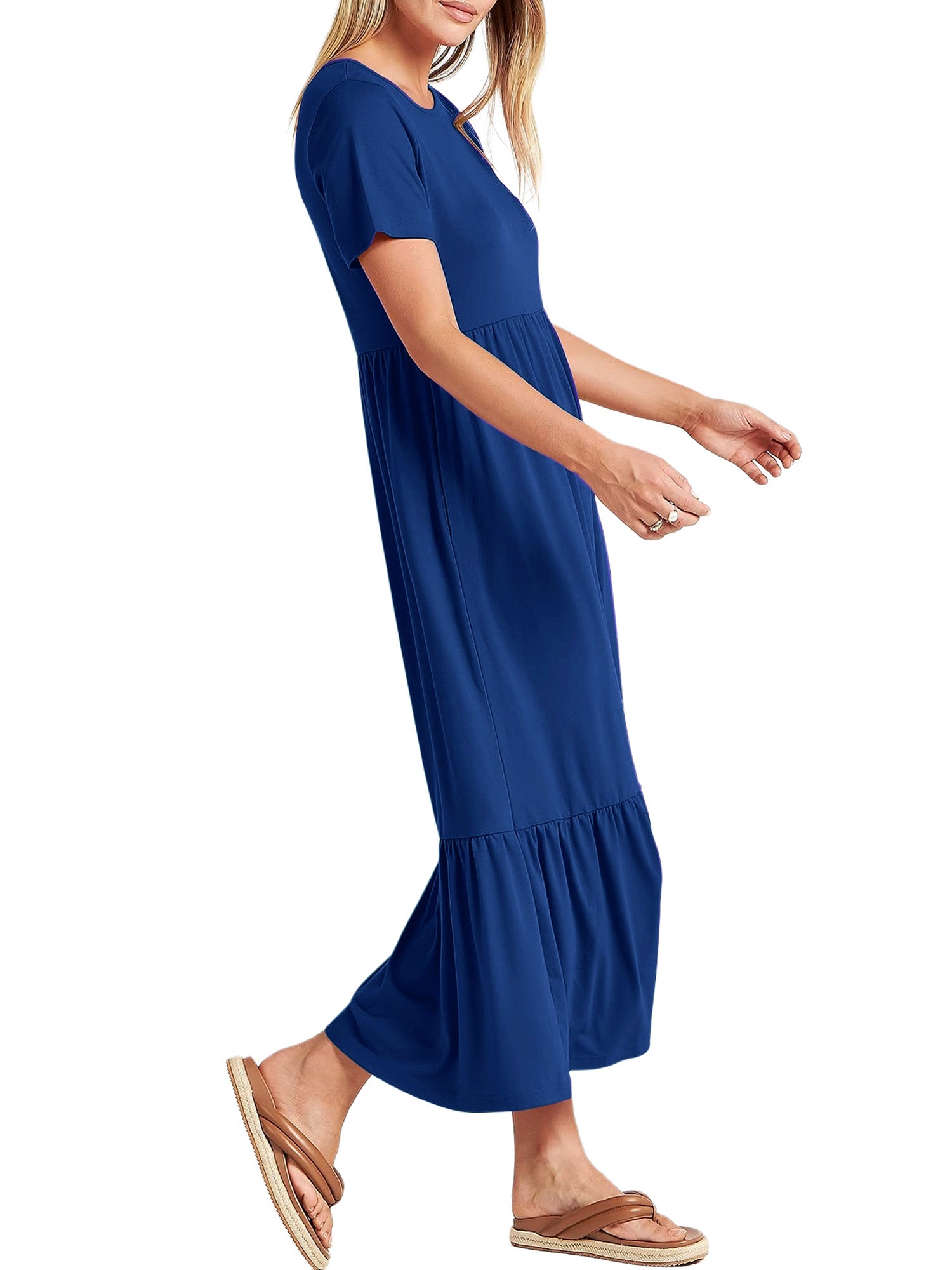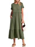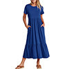 UVN Long Dresses for Women Summer Short Sleeve Casual Crewneck Maxi Dress with Pockets