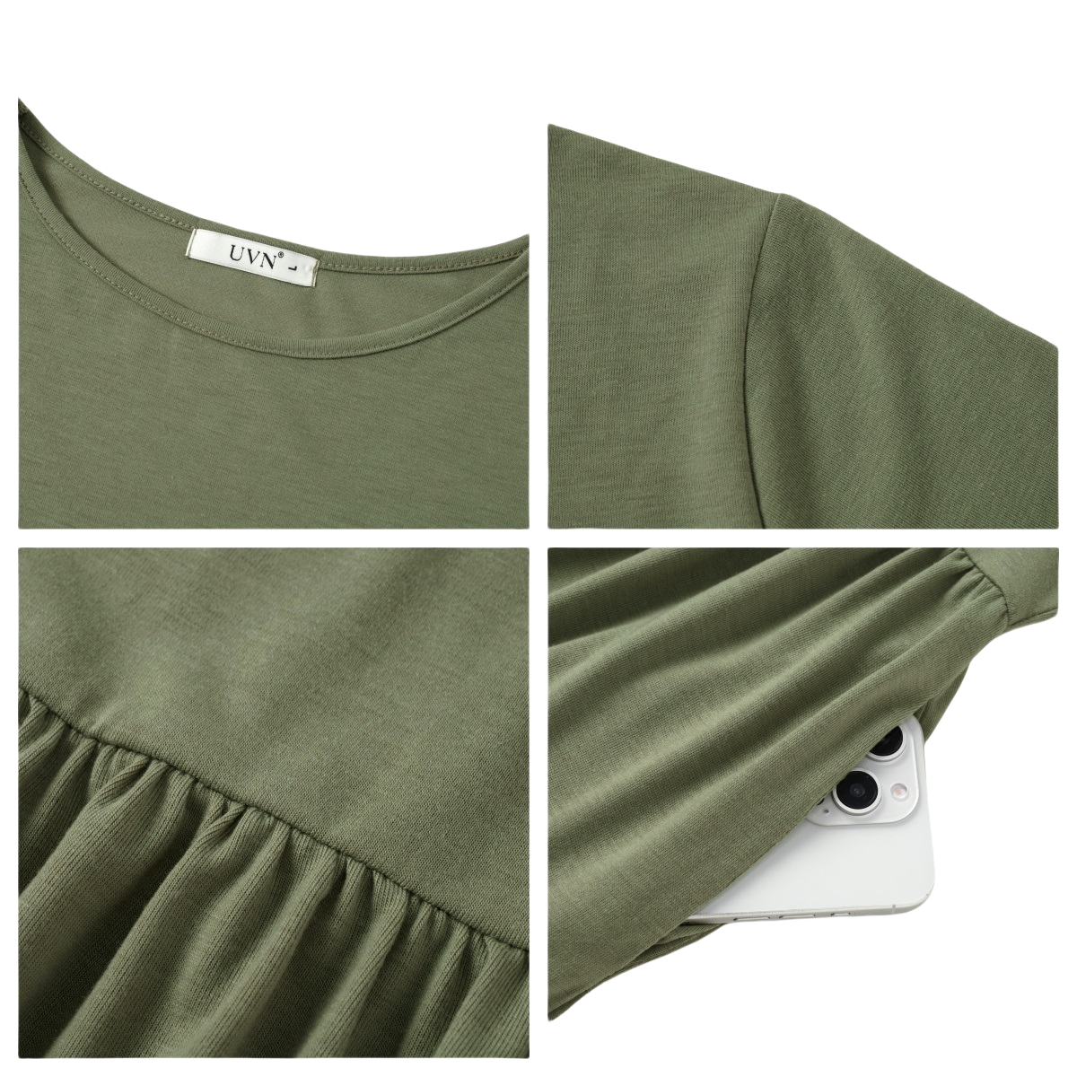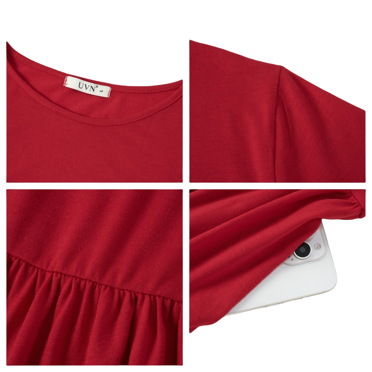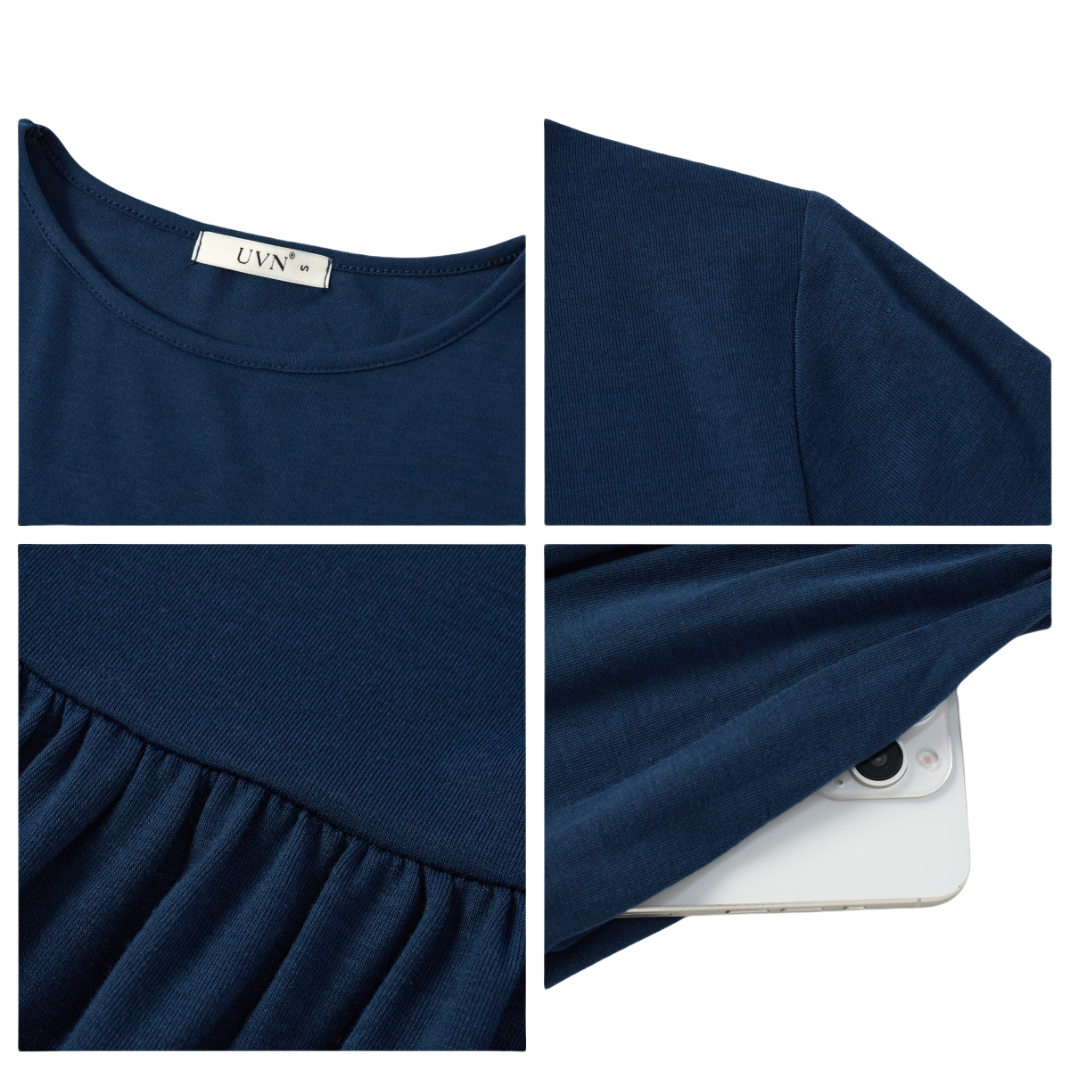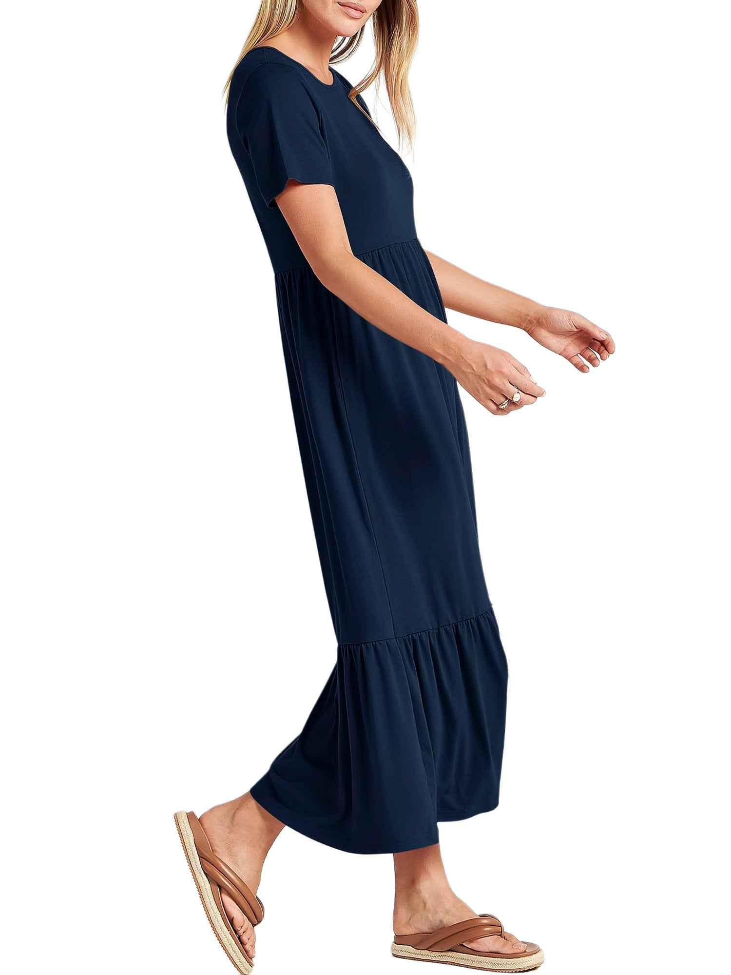 UVN Long Dresses for Women Summer Short Sleeve Casual Crewneck Maxi Dress with Pockets