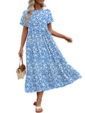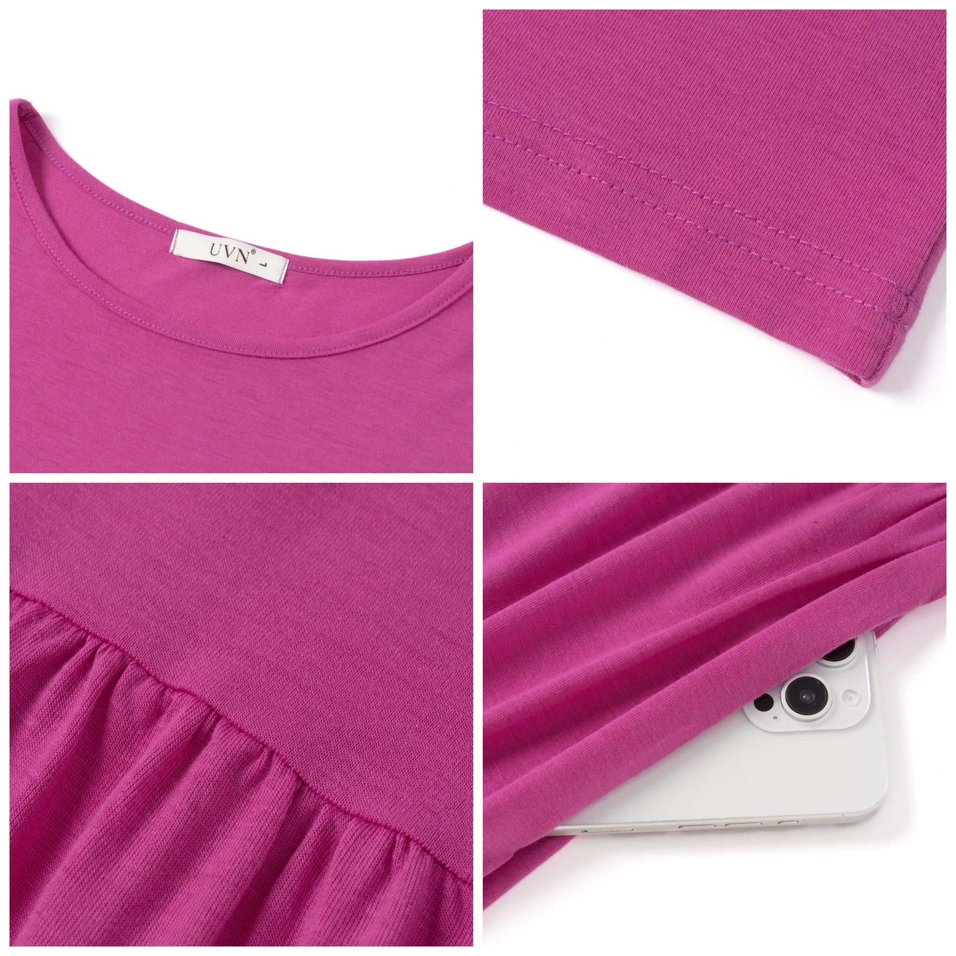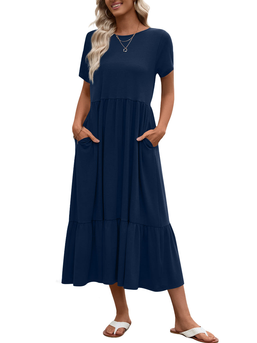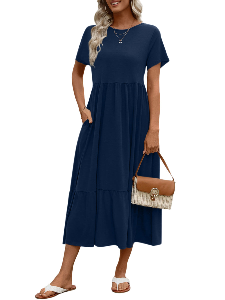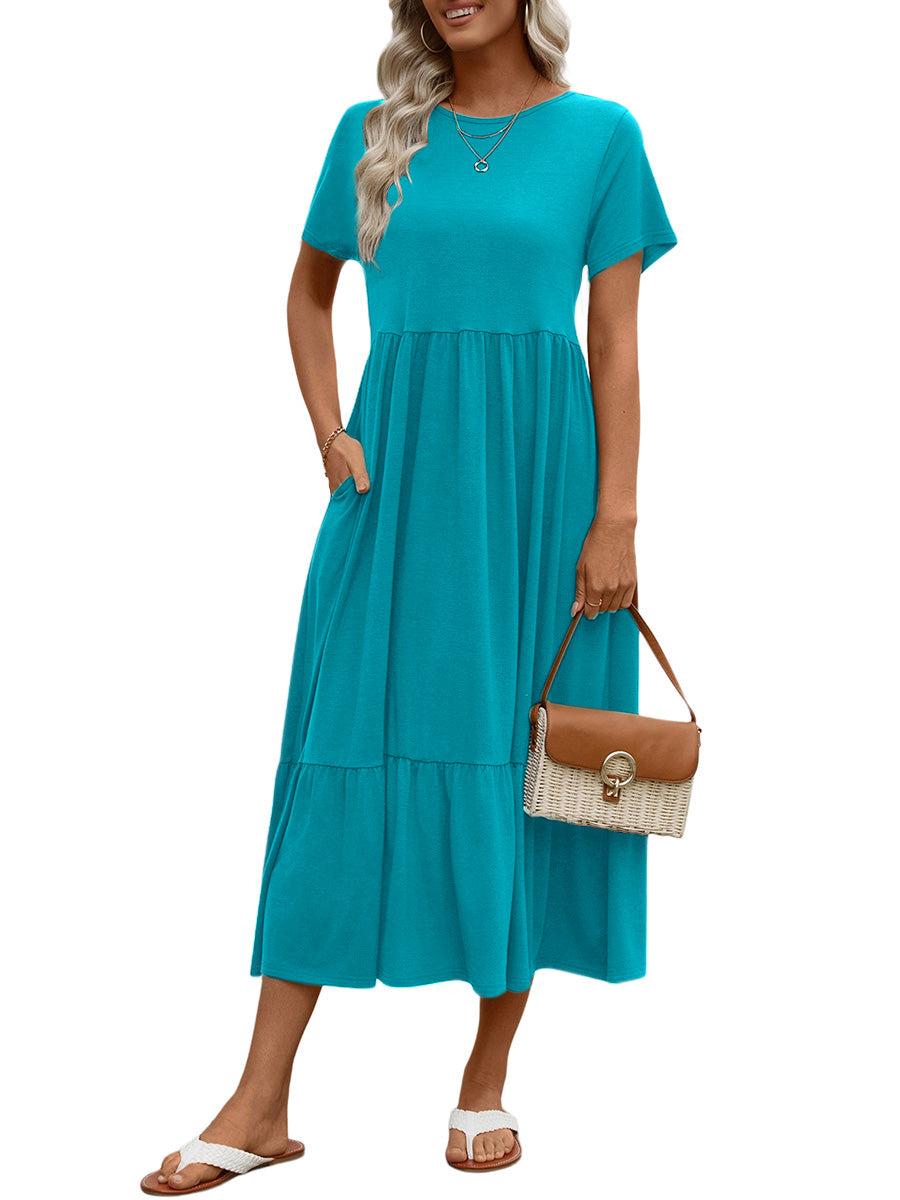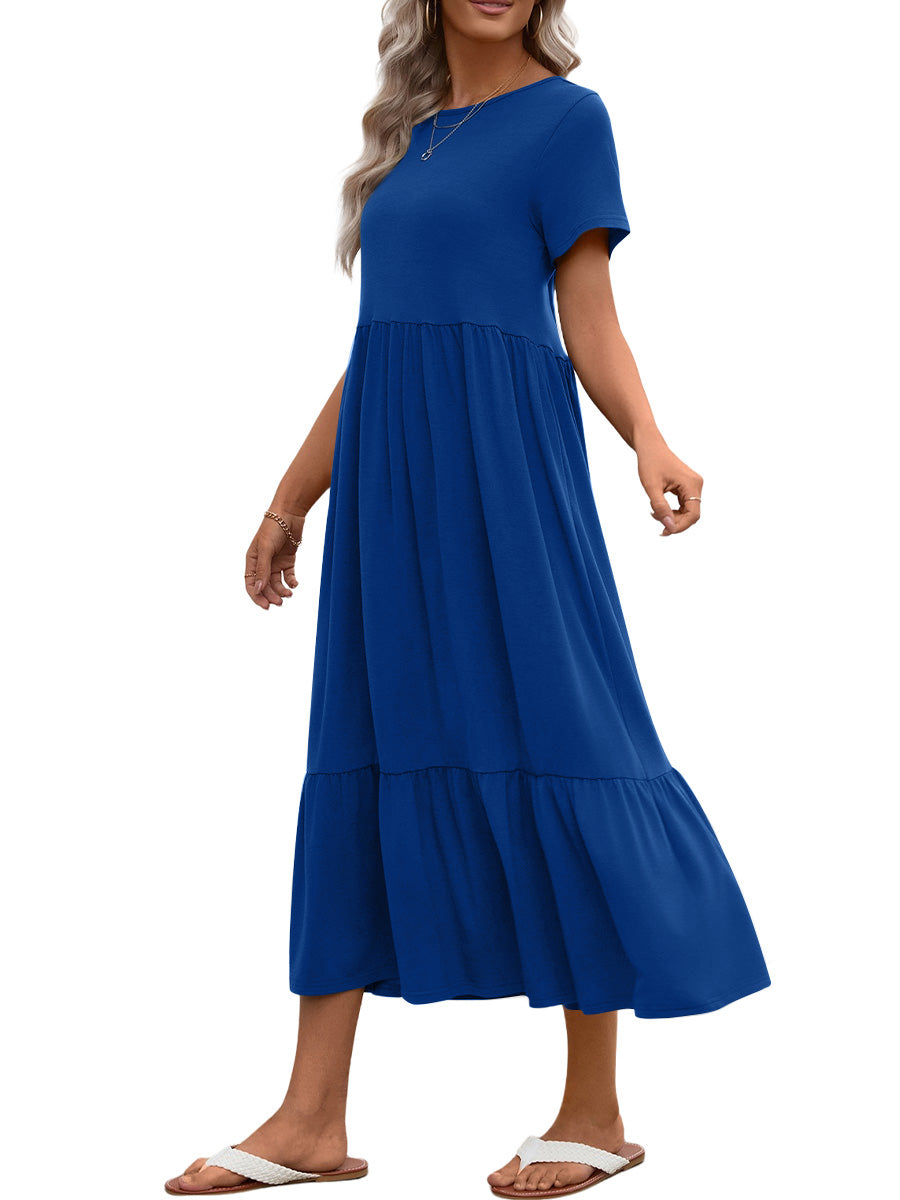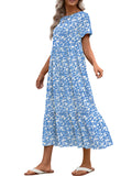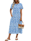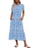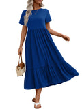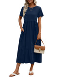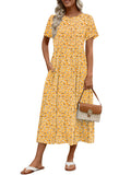 UVN Long Dresses for Women Summer Short Sleeve Casual Crewneck Maxi Dress with Pockets
