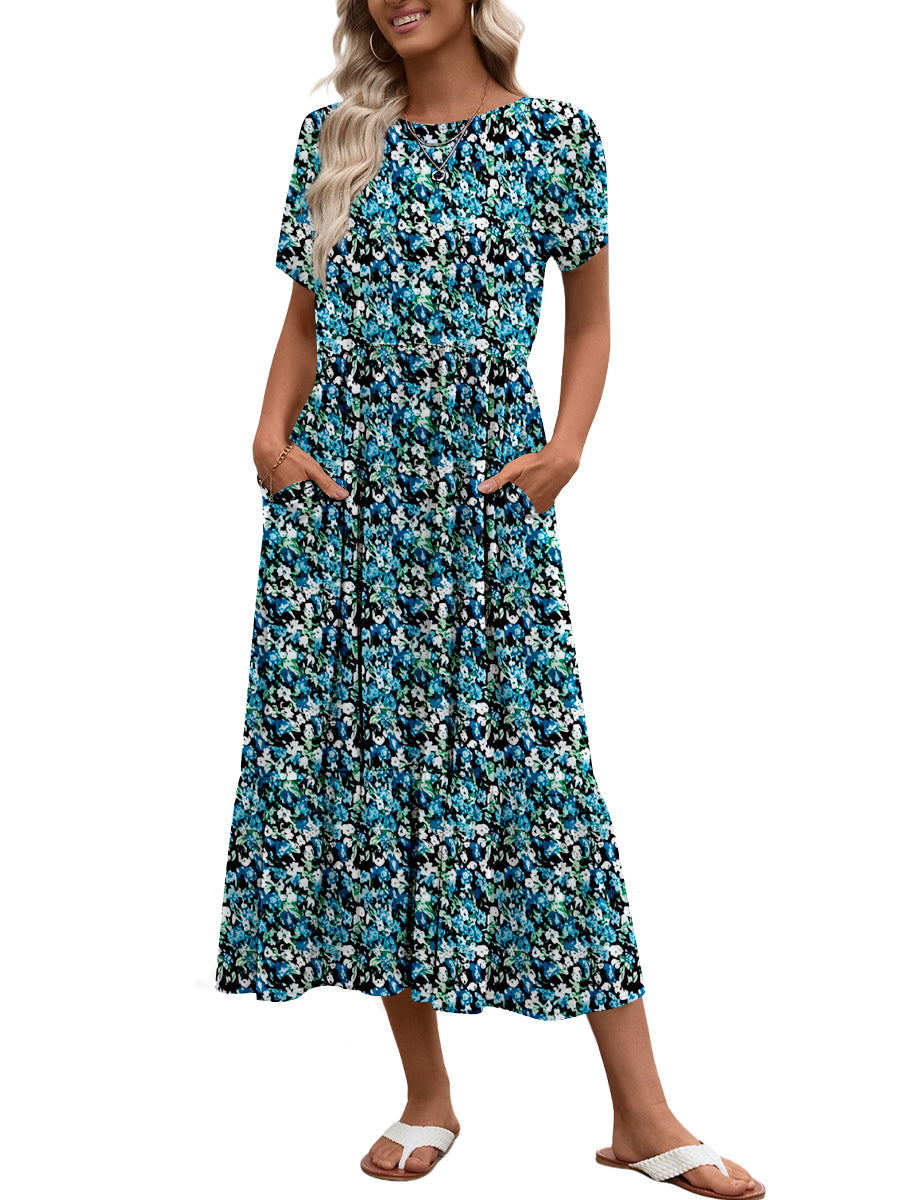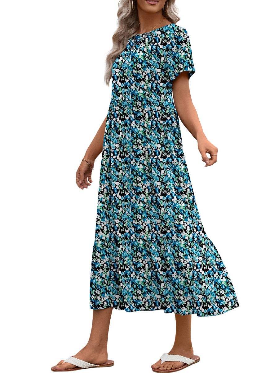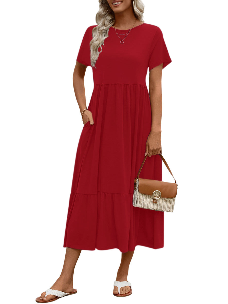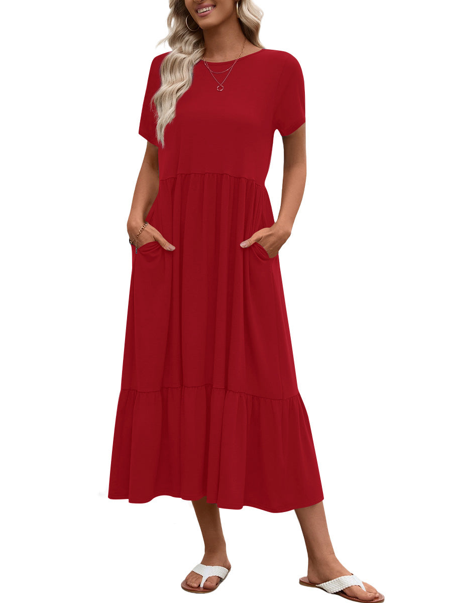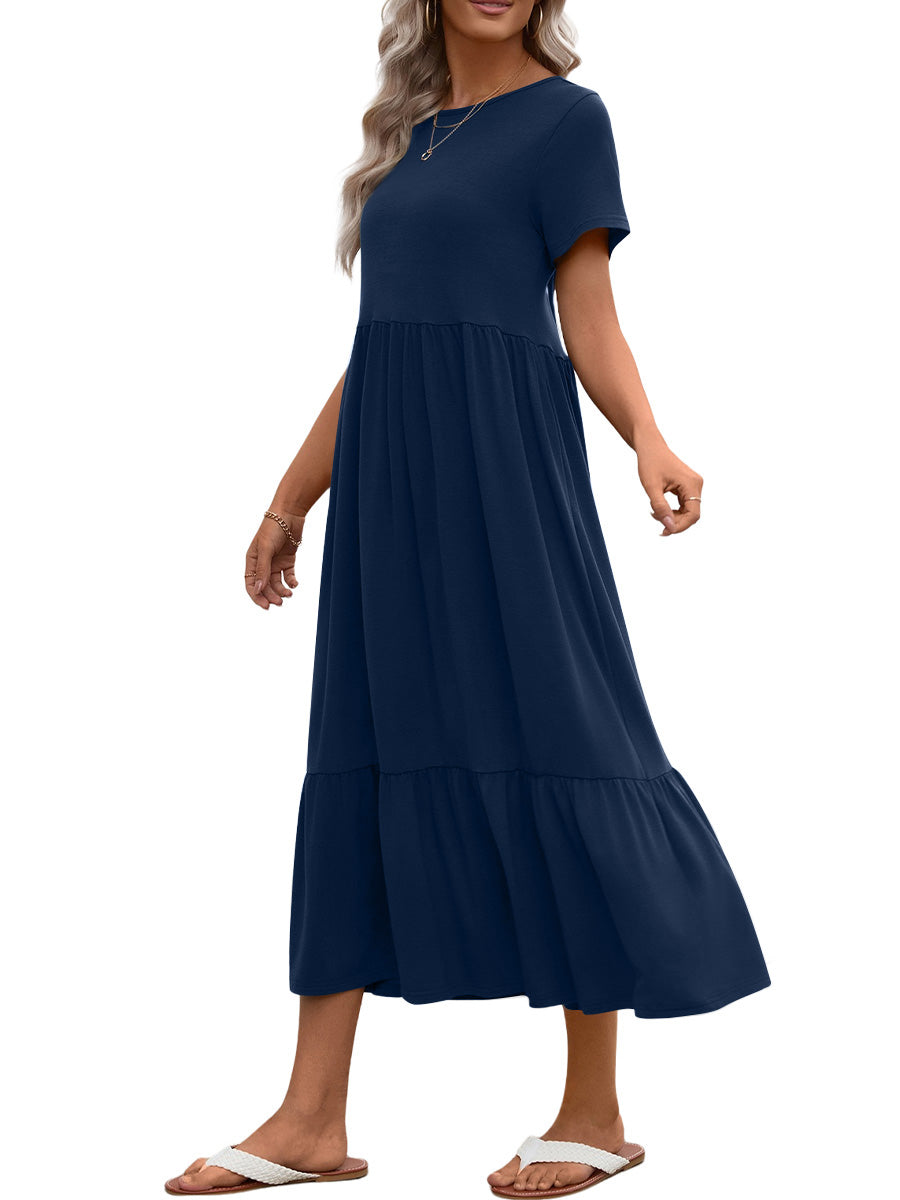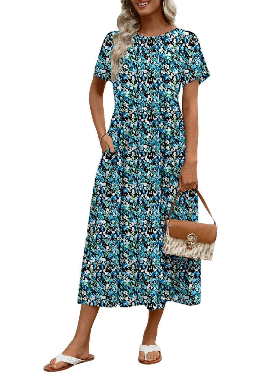 UVN Long Dresses for Women Summer Short Sleeve Casual Crewneck Maxi Dress with Pockets