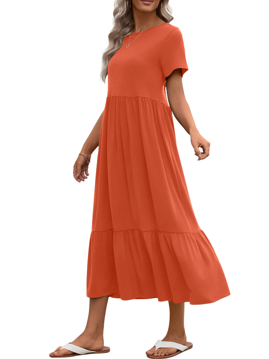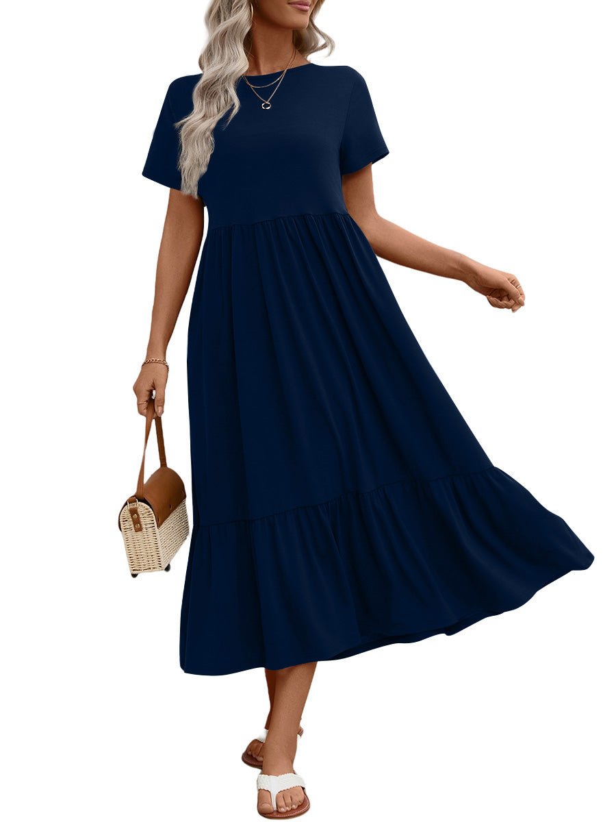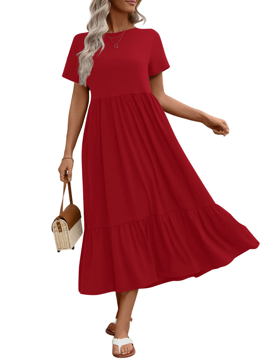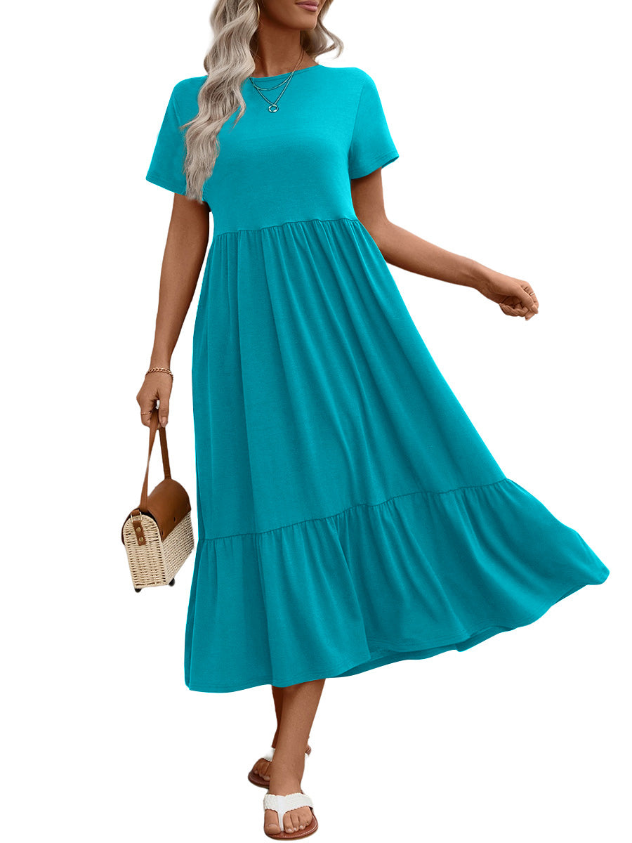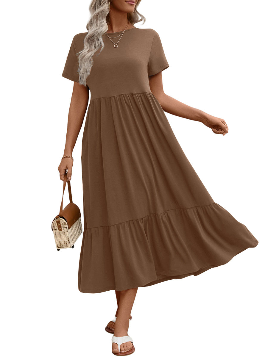 UVN Long Dresses for Women Summer Short Sleeve Casual Crewneck Maxi Dress with Pockets