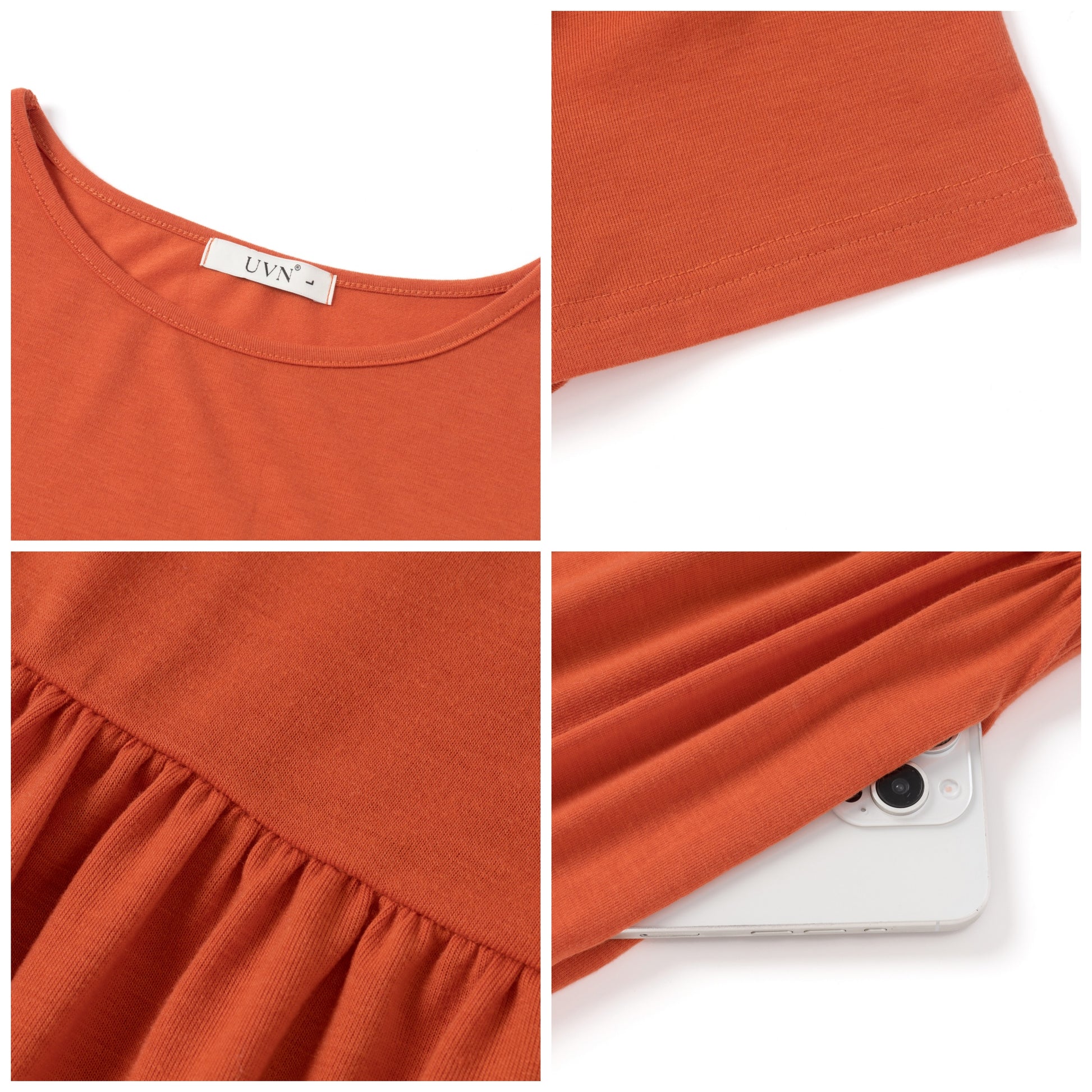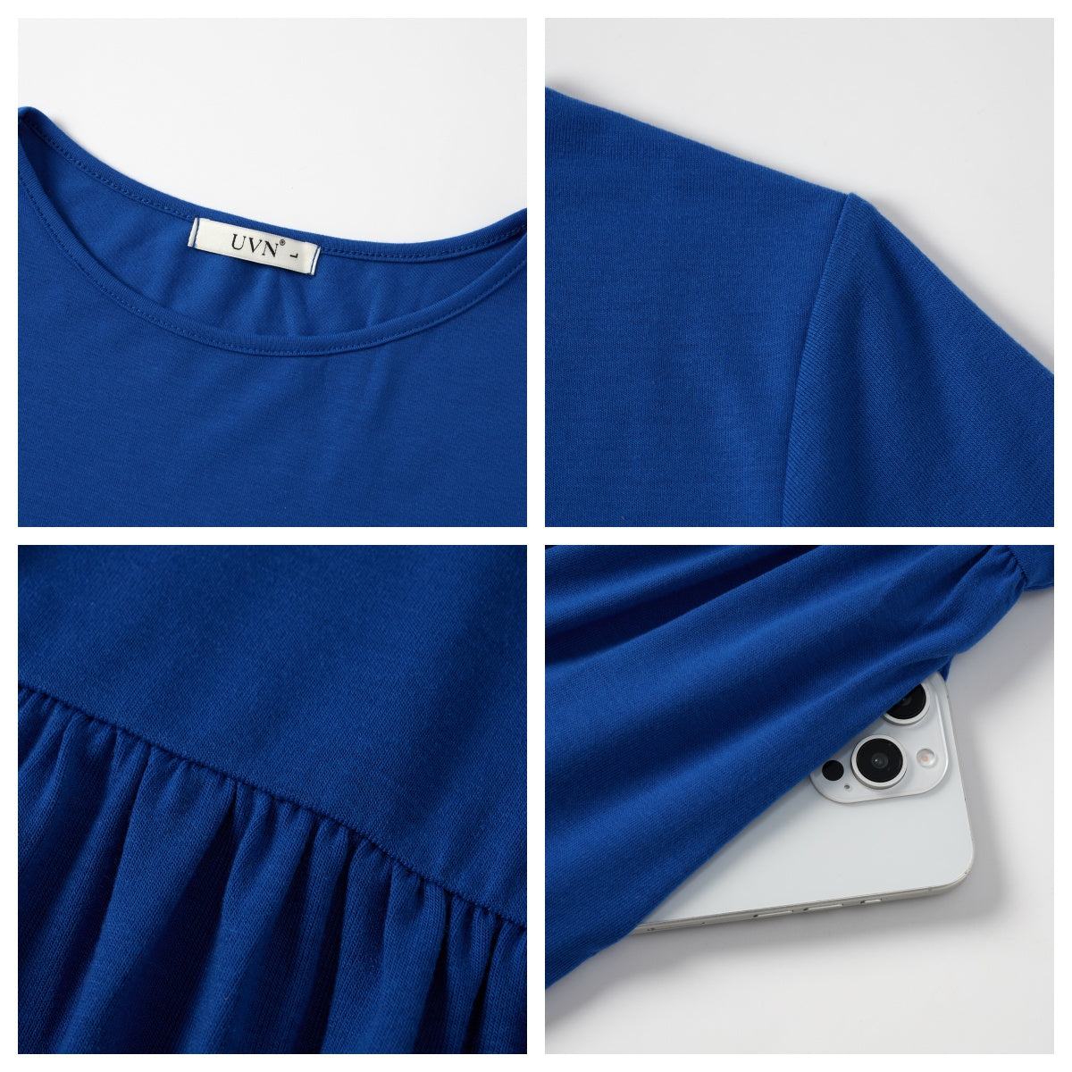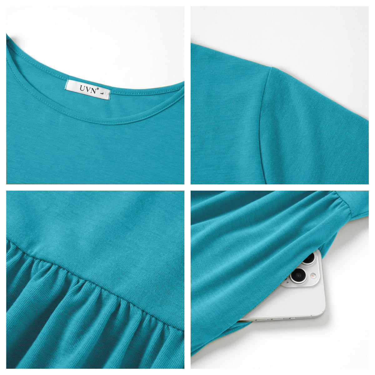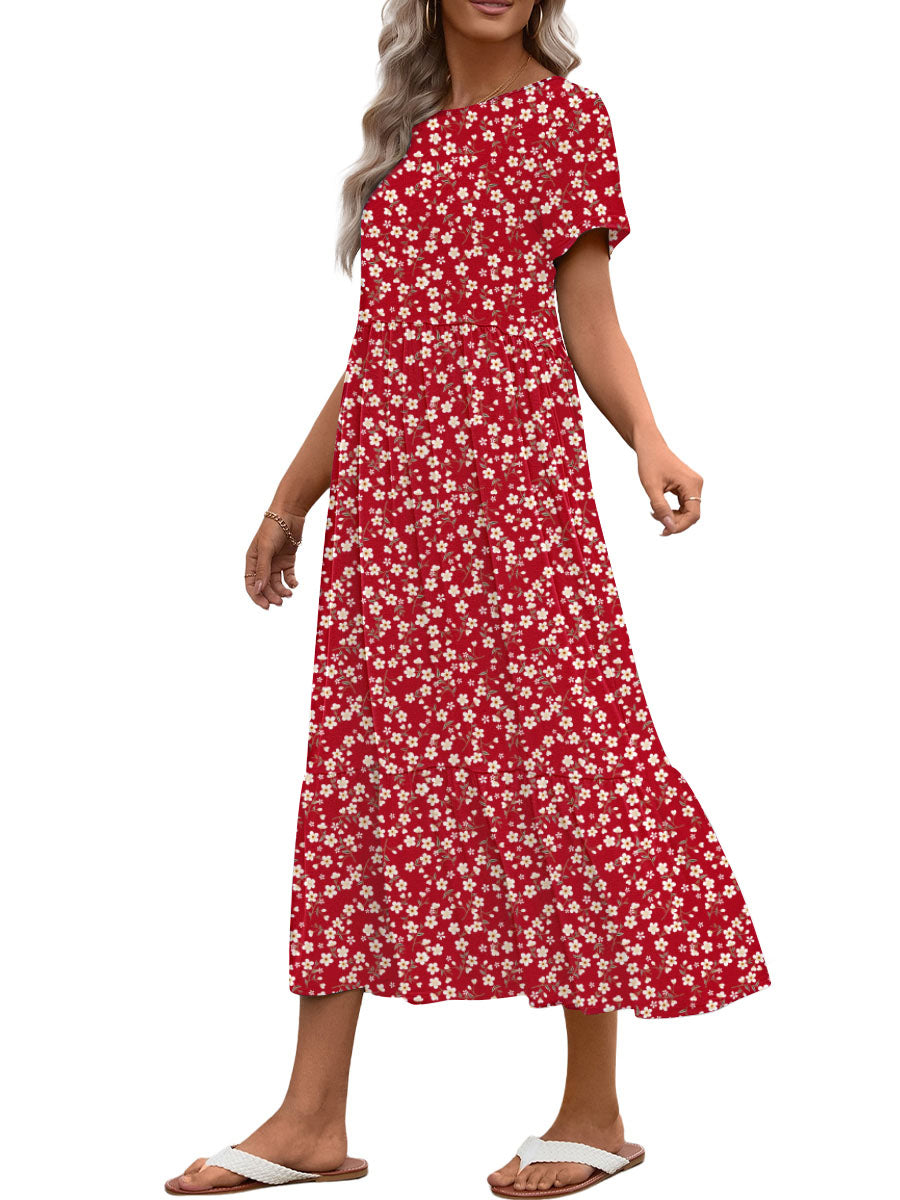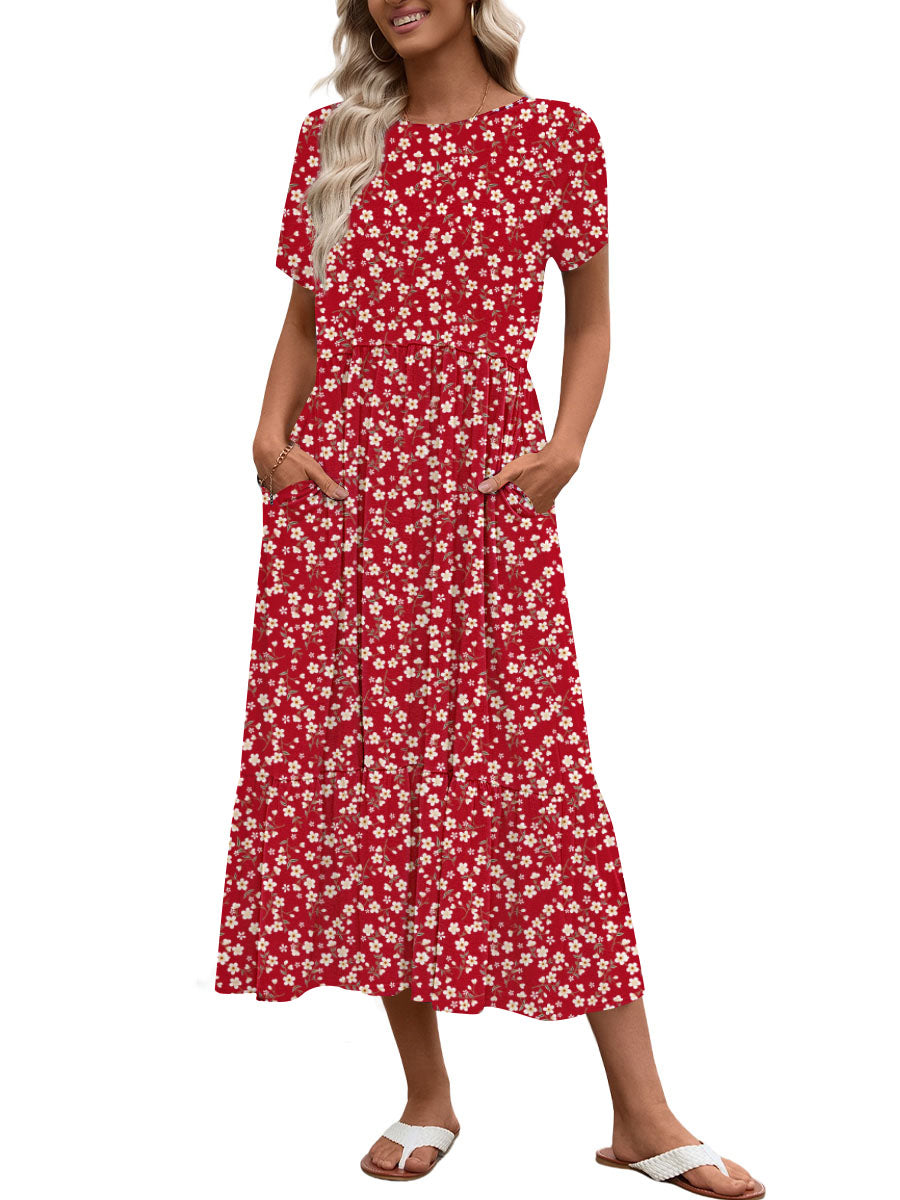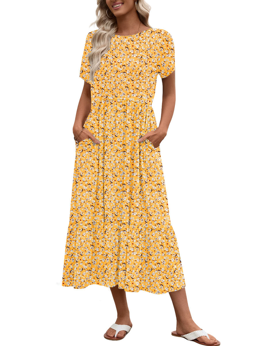 UVN Long Dresses for Women Summer Short Sleeve Casual Crewneck Maxi Dress with Pockets