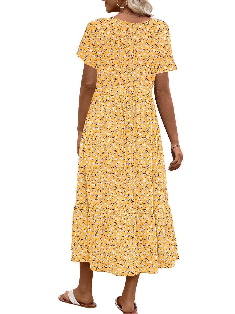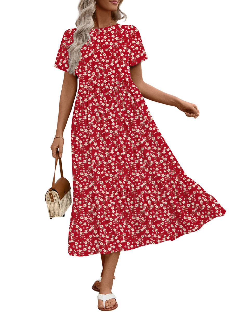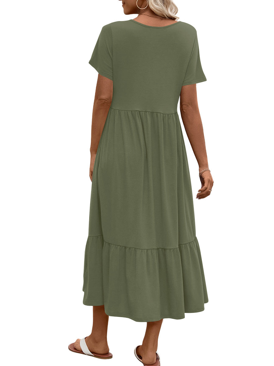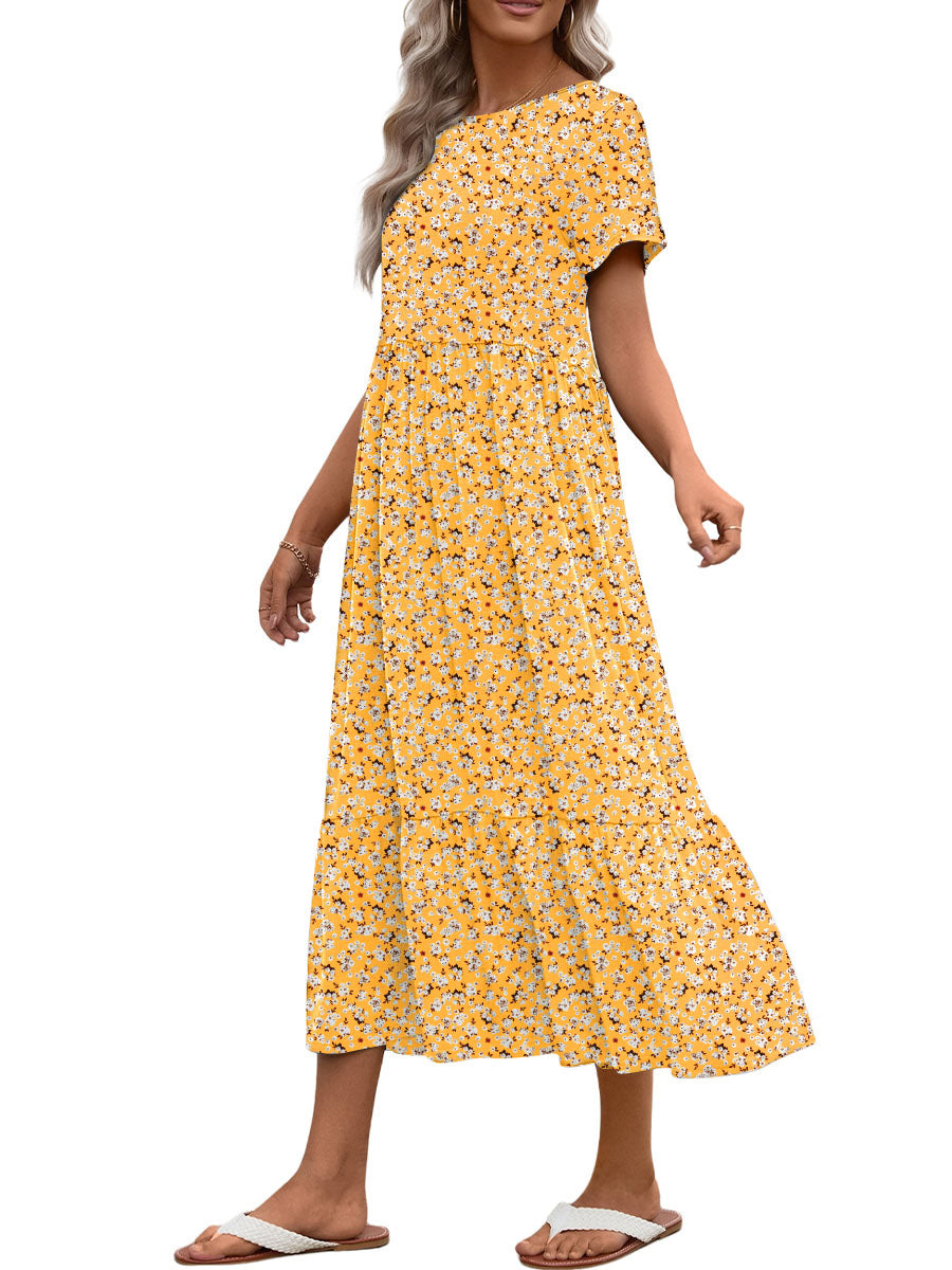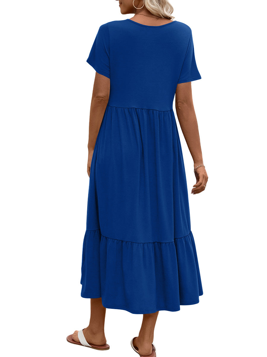 UVN Long Dresses for Women Summer Short Sleeve Casual Crewneck Maxi Dress with Pockets