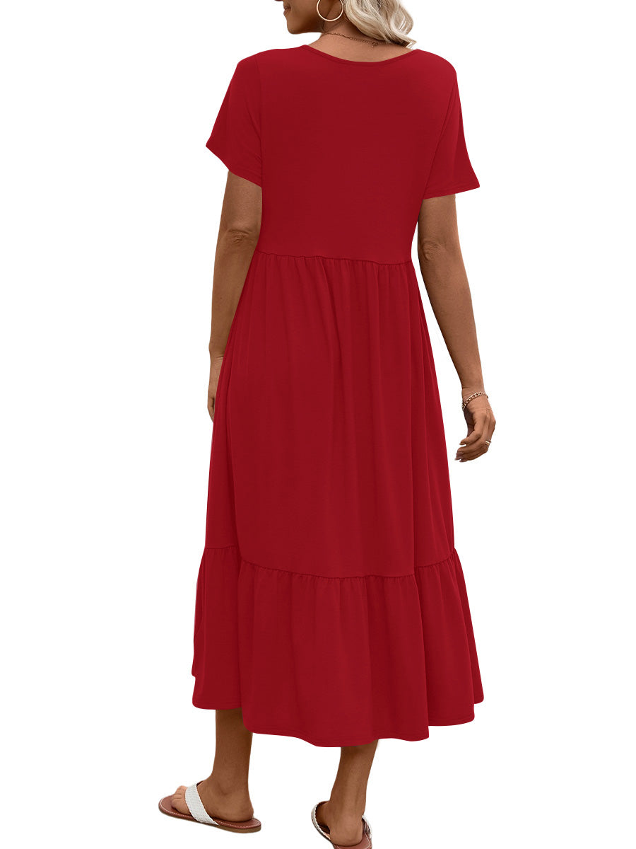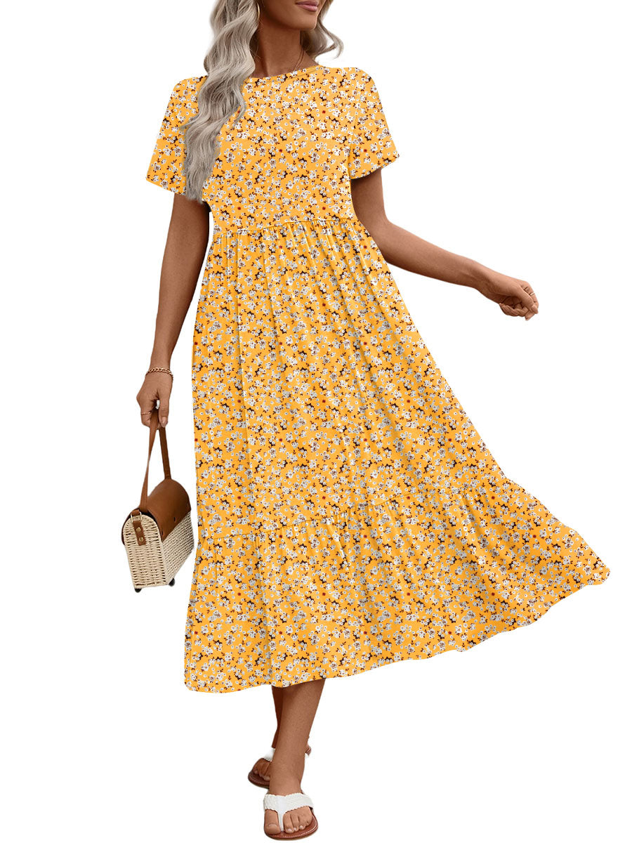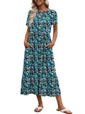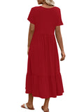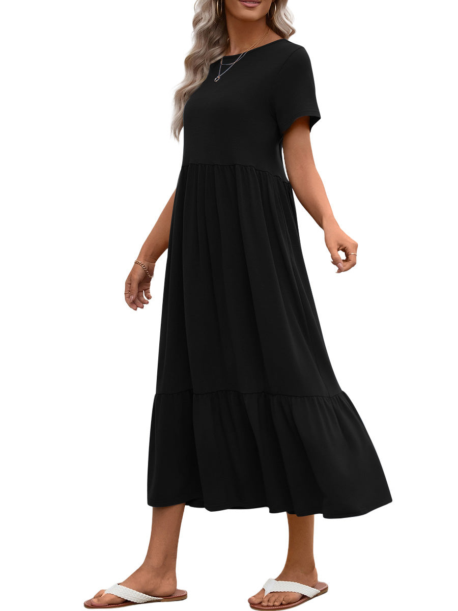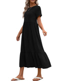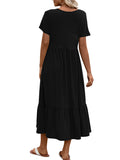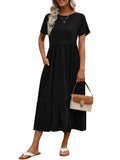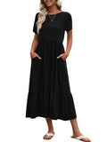 ✿【 Features 】: This long dresses for women has a elegant and functional design, the maix dress has a classic crewneck, short sleeves, and an A-line silhouette, this black dress exudes timeless charm. The tiered design adds volume and flair, creating a flowy, graceful movement. Side pockets add functionality to the style, allowing you to carry small essentials effortlessly. The midi length with tiered design makes the sundress less monotonous.