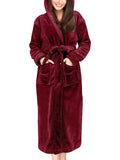 UVN Long Robes for Women Winter Plush Fleece Hooded Bathrobe Soft Cozy Fluffy Sleepwear Nightgown with Pockets