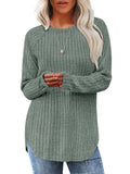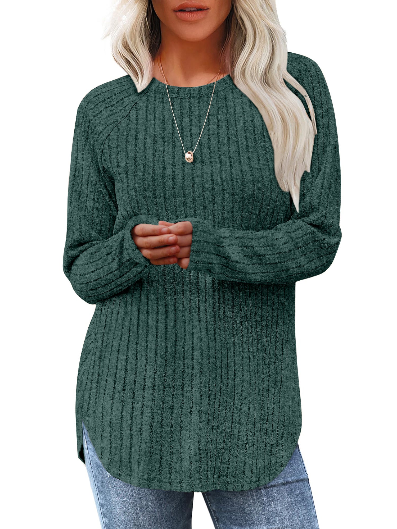 ✿【Features】: This womens blouses showcases a relaxed raglan sleeve design that enhances mobility and adds a sporty-chic touch. The classic round neckline of crew neck tops for women offers a clean, flattering frame for the face, while the subtly curved hemline of tunic shirts for women provides a modern silhouette with extra coverage at the back.