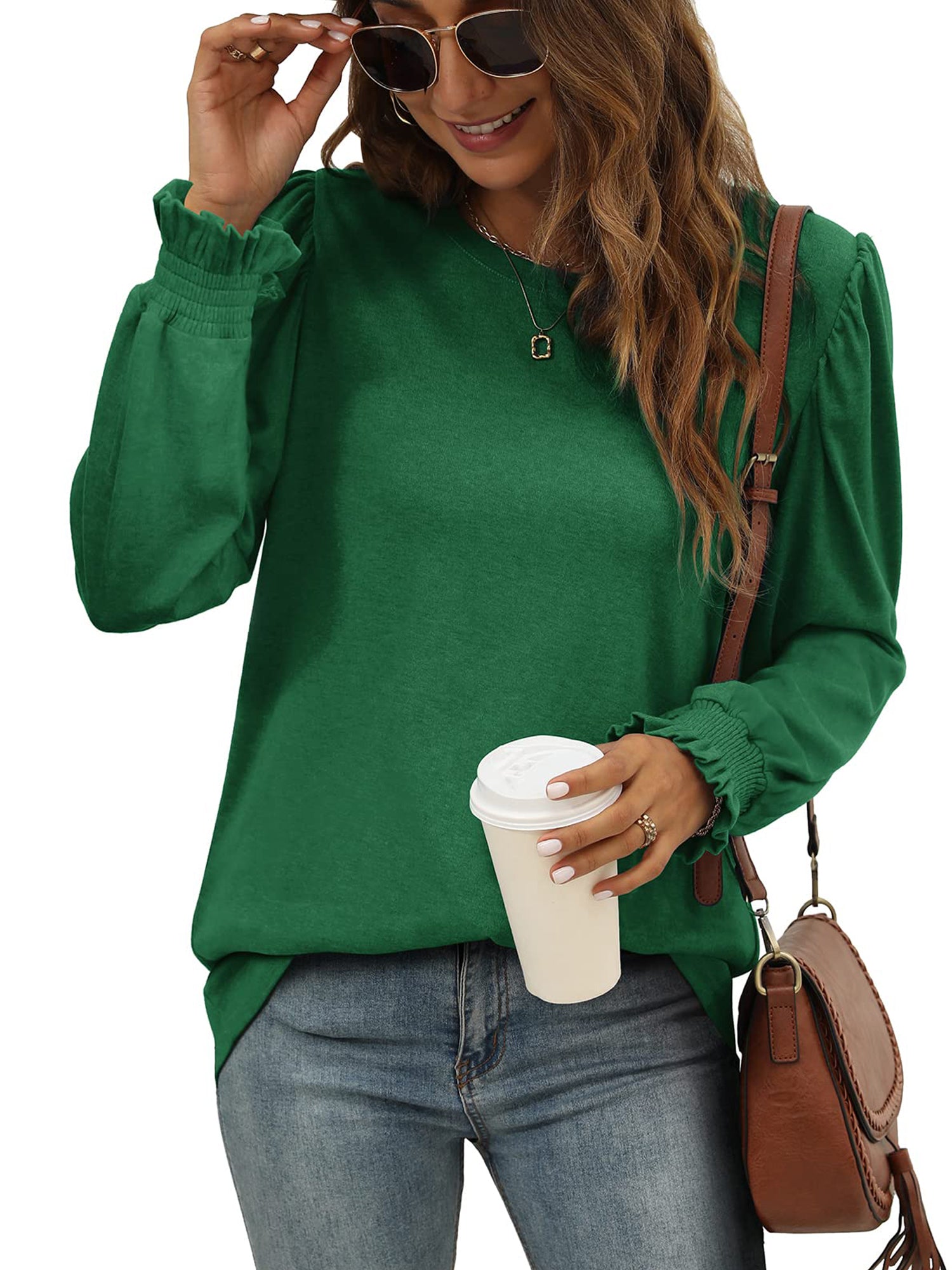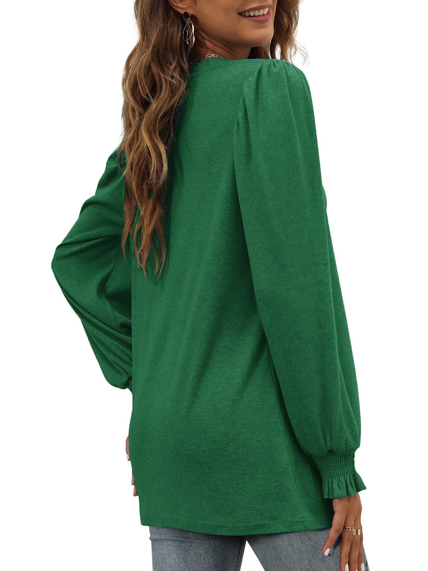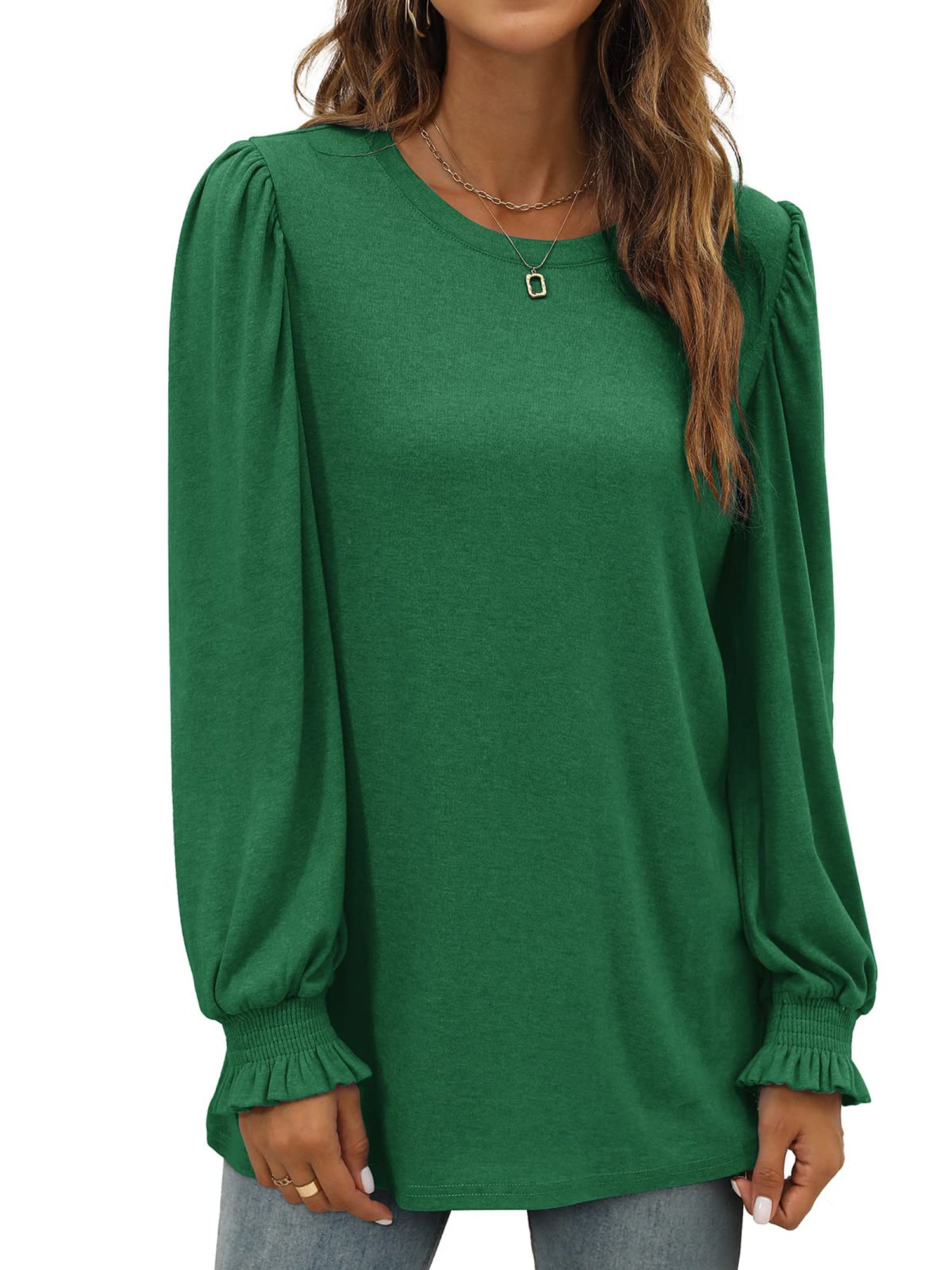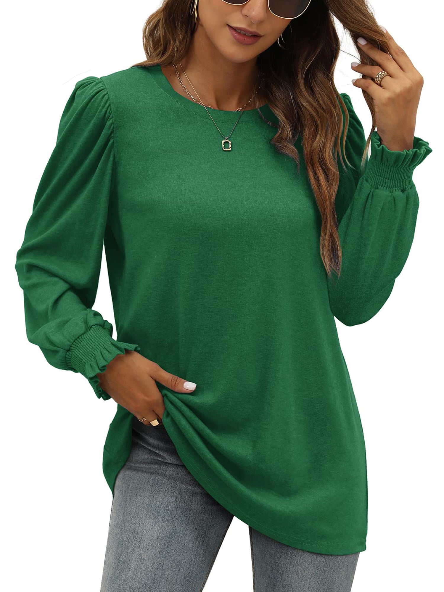 ❤【 Features】: This shirts for women features a crewneck, long sleeve, puff ruffle sleeve, pullover, tunic tops, casual loose fit style. The Puff Sleeve can hide your arm perfectly for an ideal