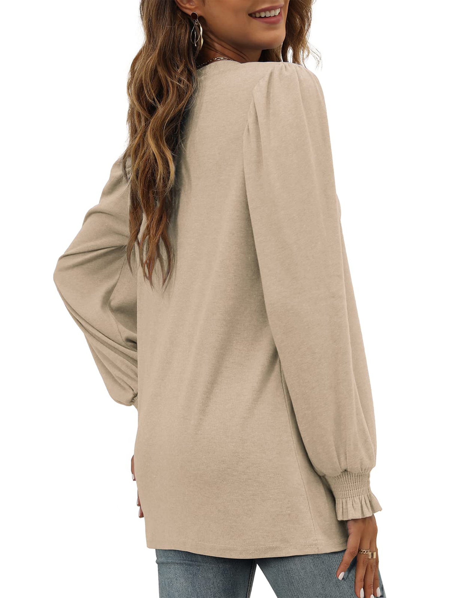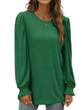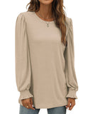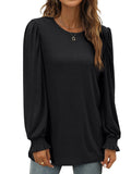 UVN Long Sleeve Shirts for Women Blouse Casual Puff Sleeve Crewneck Fall Shirt Tunic Tops