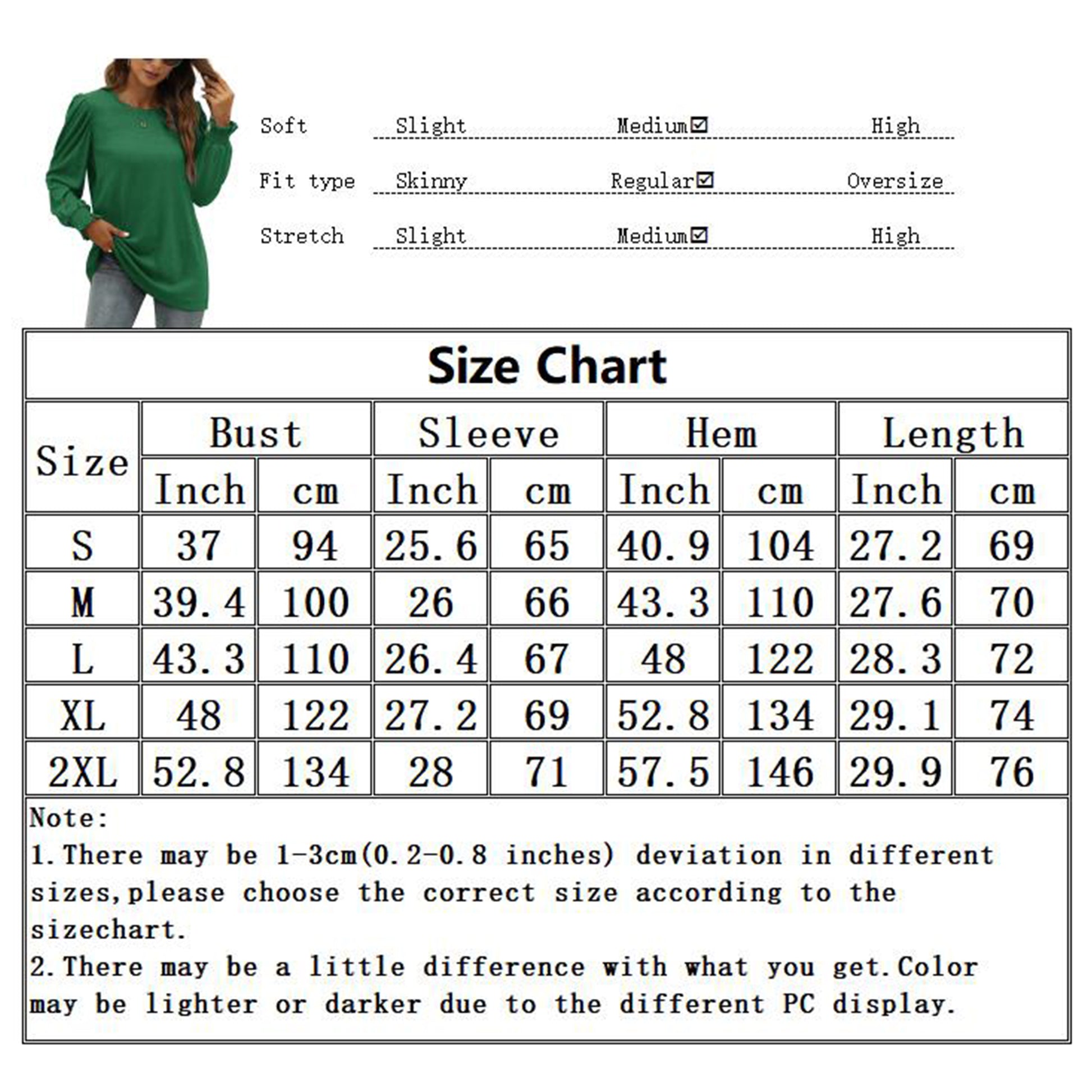 M ----Bust 100cm/39.37" ---Length 70cm/27.56"---Sleeve 66cm/25.98"---Hem 110cm/43.31"