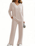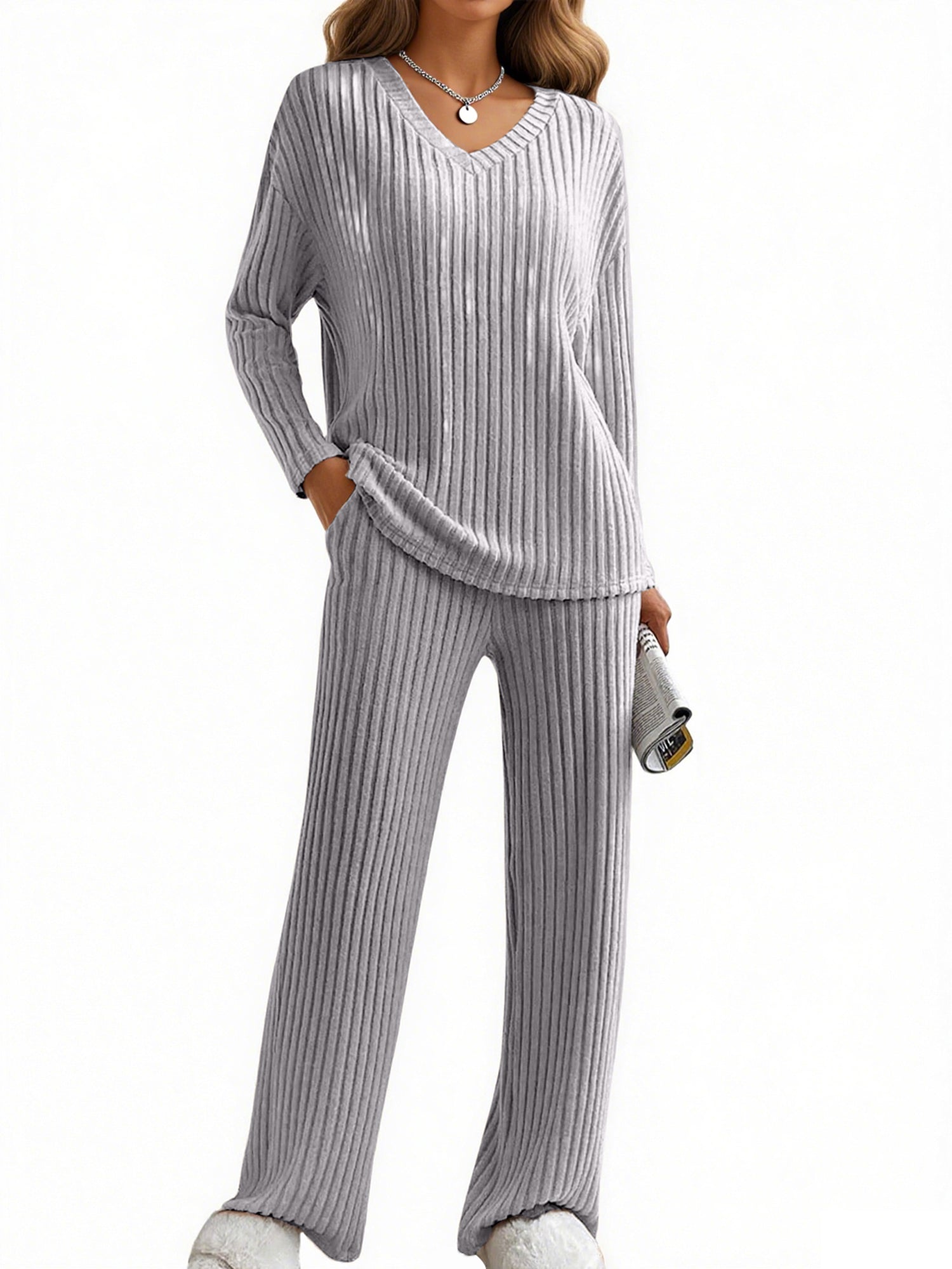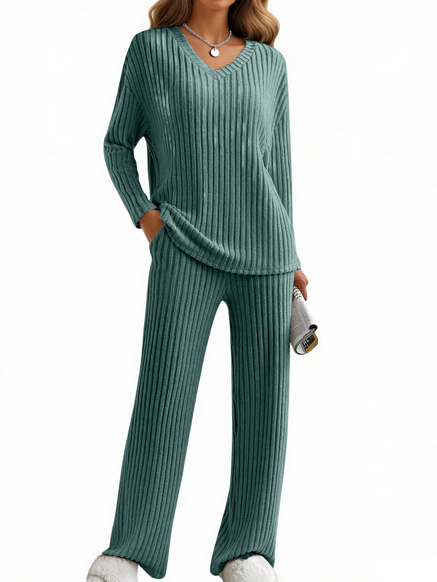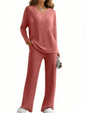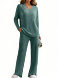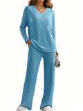 UVN Outfit Sets for Women Two Piece Sets Winter Casual Long Sleeve Tops and Long Pants Lounge Sets Ribbed Knit Pajama Sets with Pockets